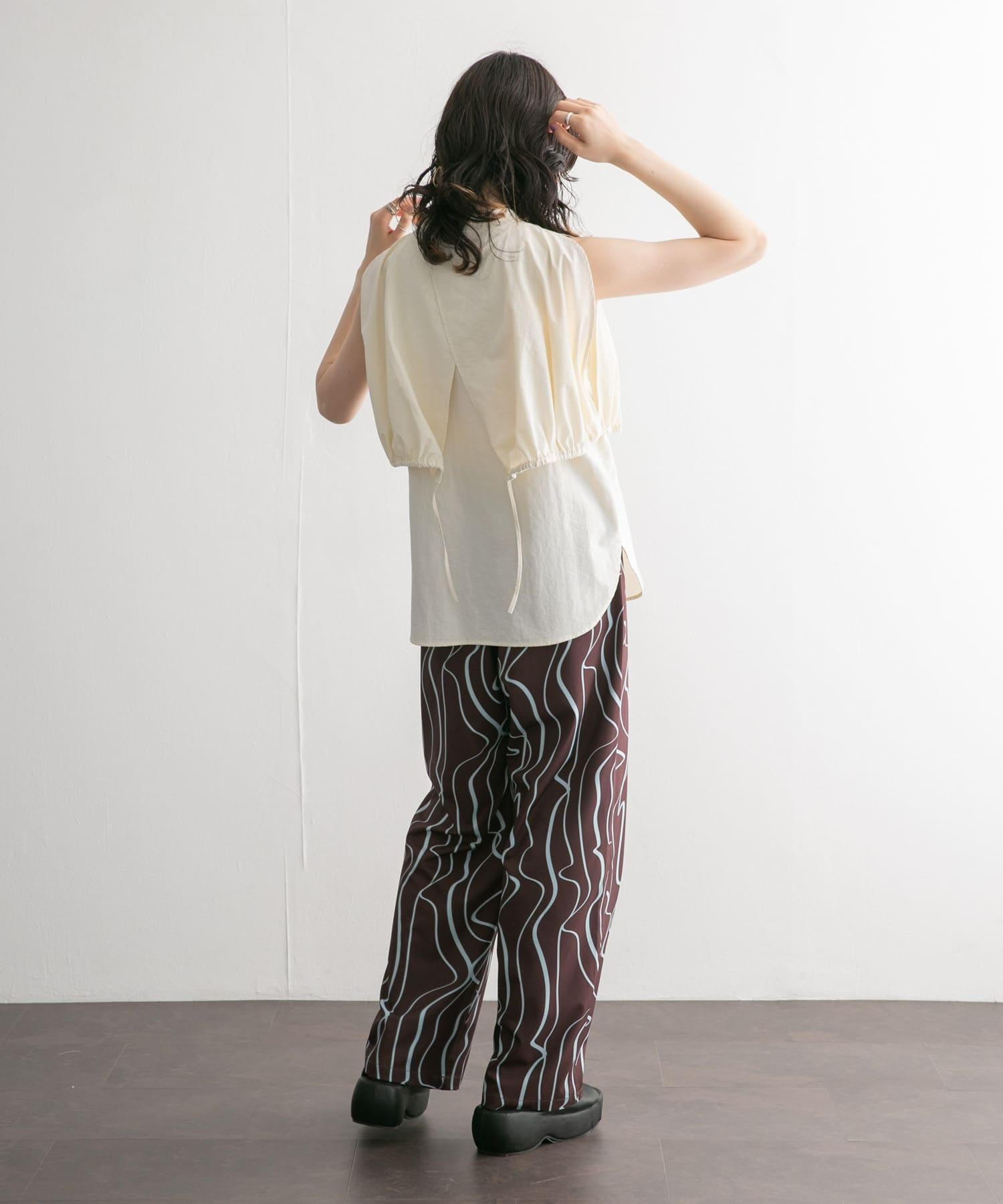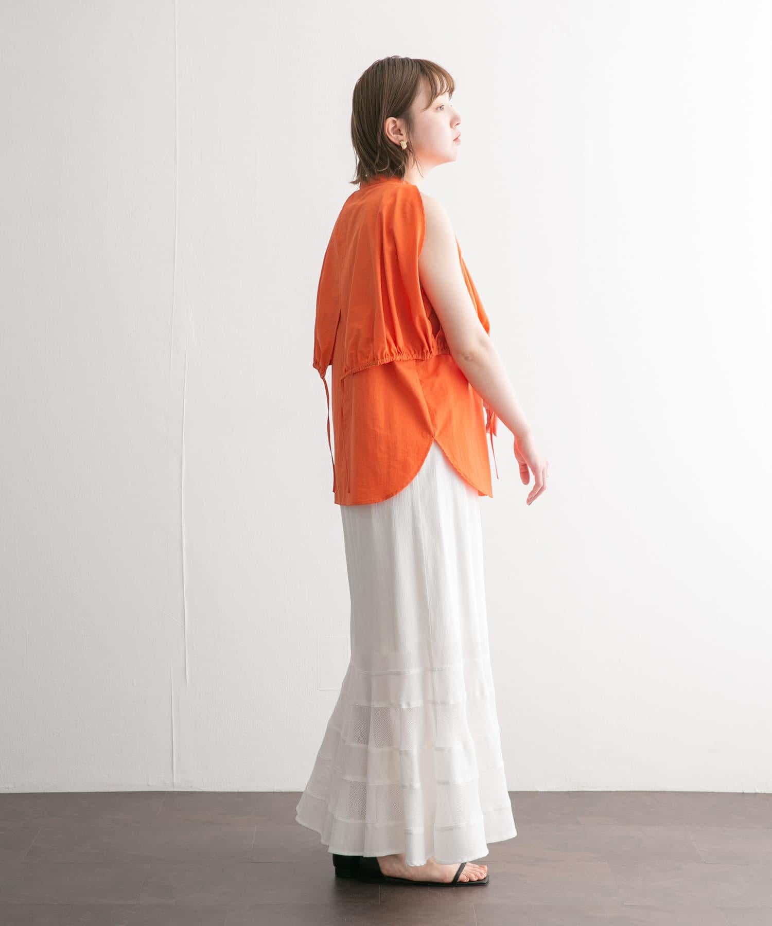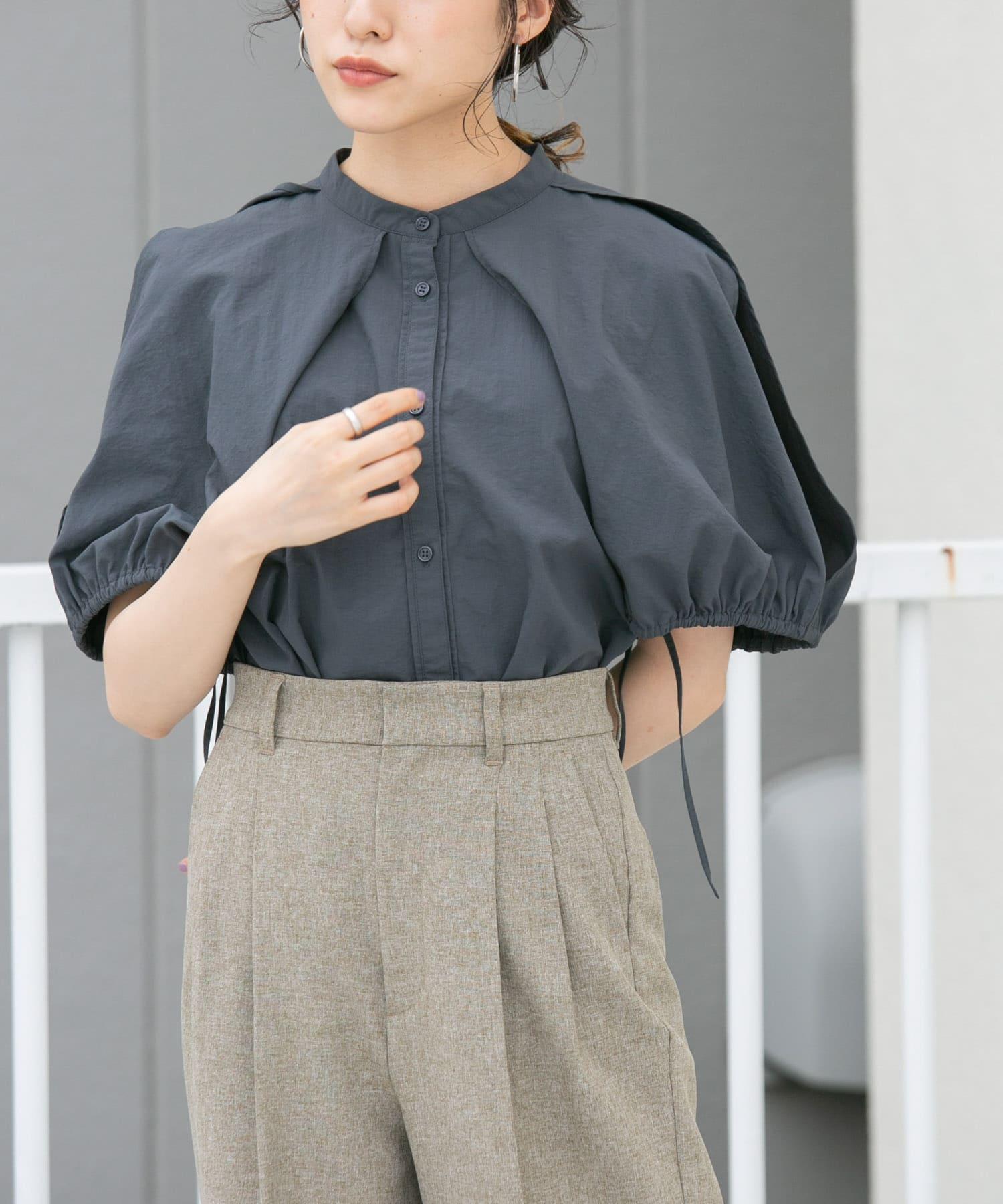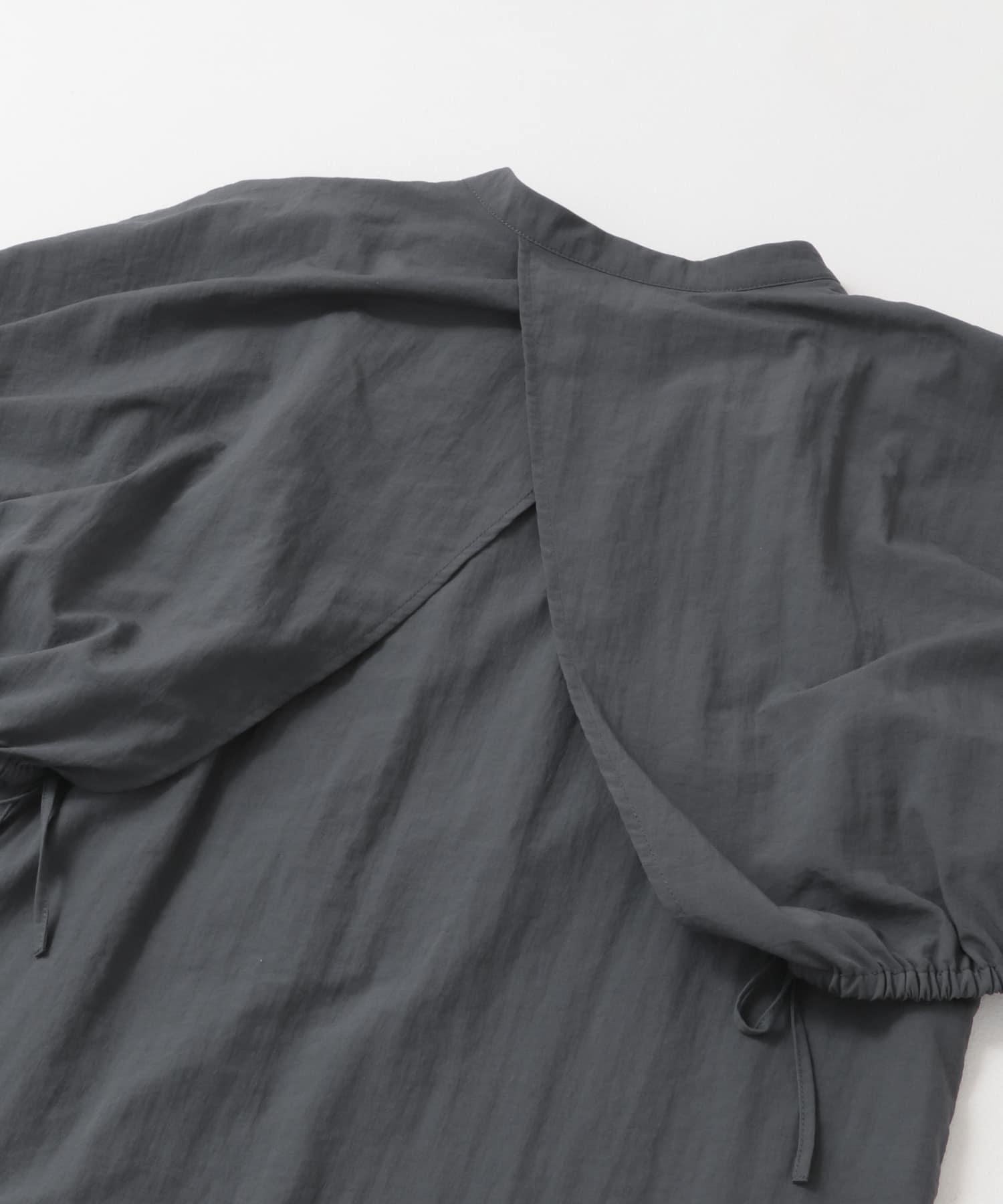 這款設計上衣由尼龍材料製成,輕便舒適。您可以將斗篷前後的繩子系成氣球袖,也可以將袖子穿過斗篷的開衩部分做成無袖的輪廓,盡情變換輪廓。這是一款完美的夏季連衣裙,因為它還能恰到好處地展示肌膚。