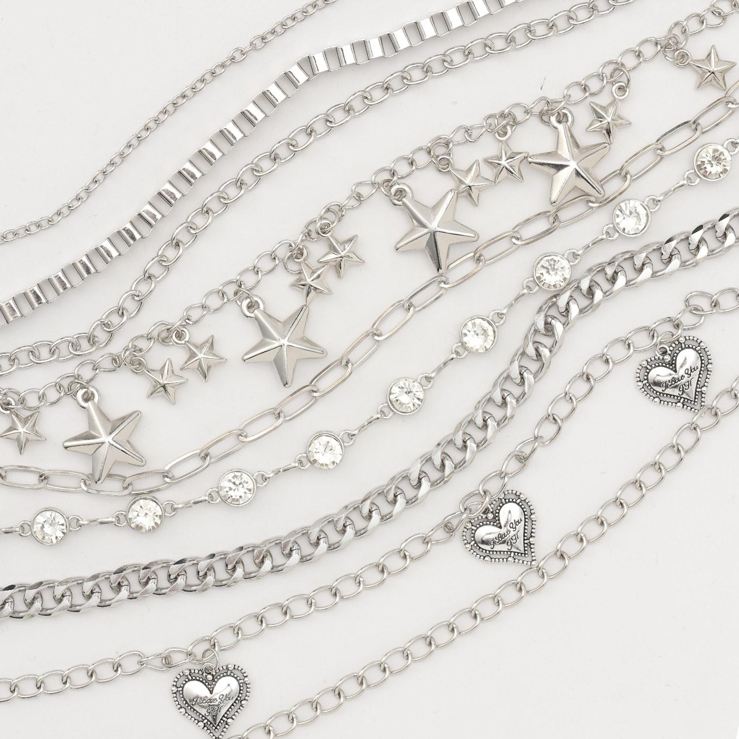 每條鏈子上都裝飾有不同的星星或心形圖案。