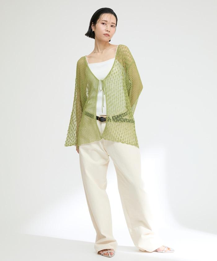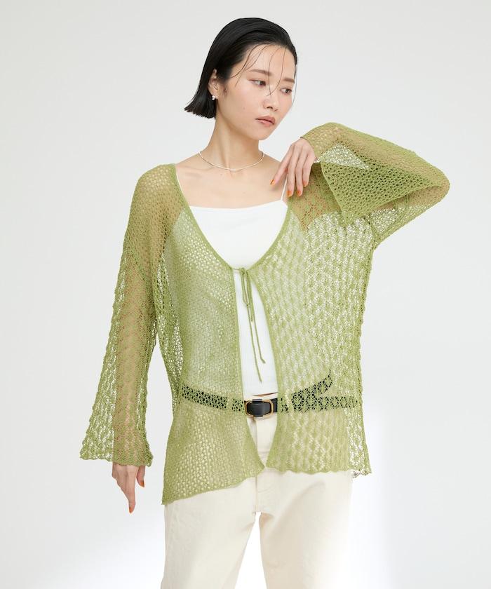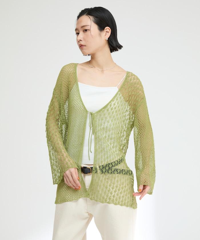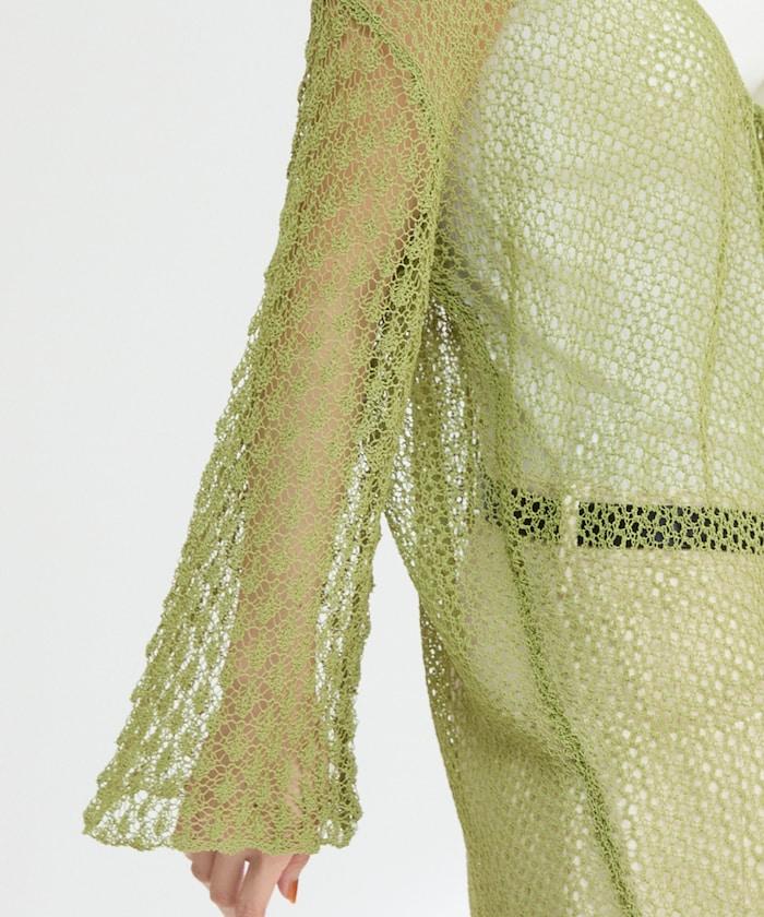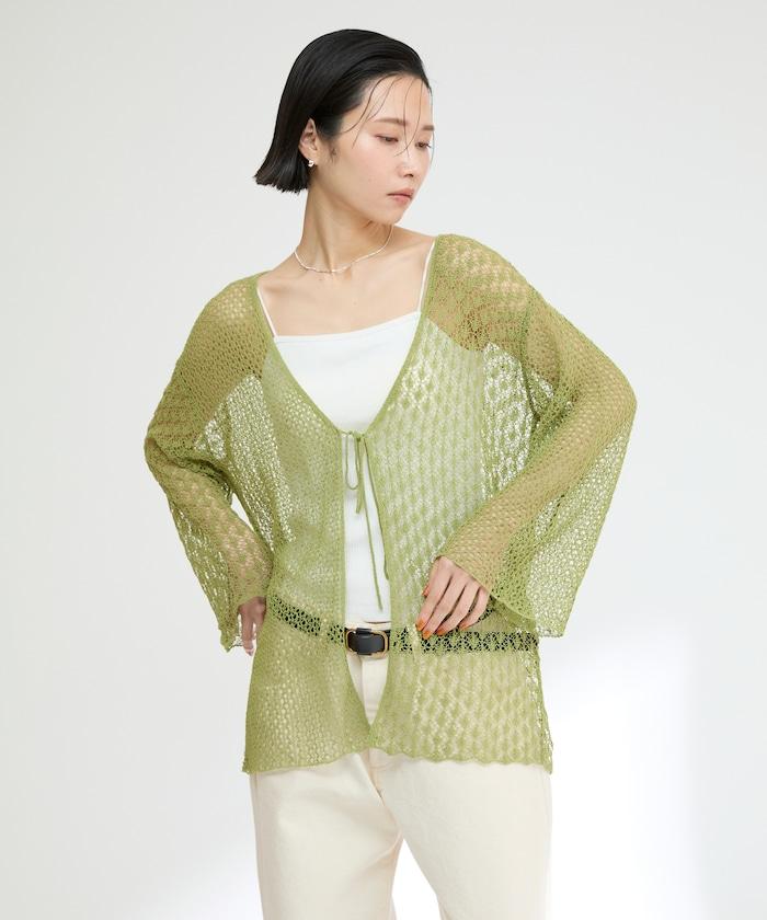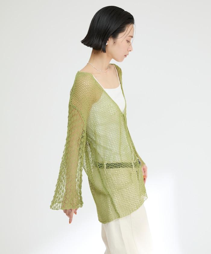 鏤空開衫,採用腈綸尼龍紗線,手感清爽涼快。