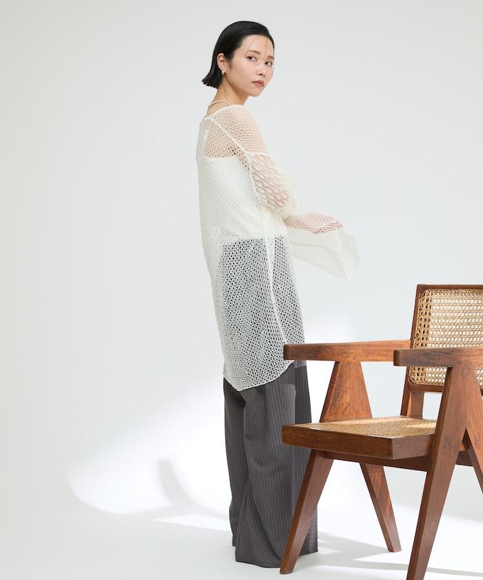 獨特的鏤空針織衫,左右兩側對接的兩種不同針織面料帶來不同的外觀和觸感。