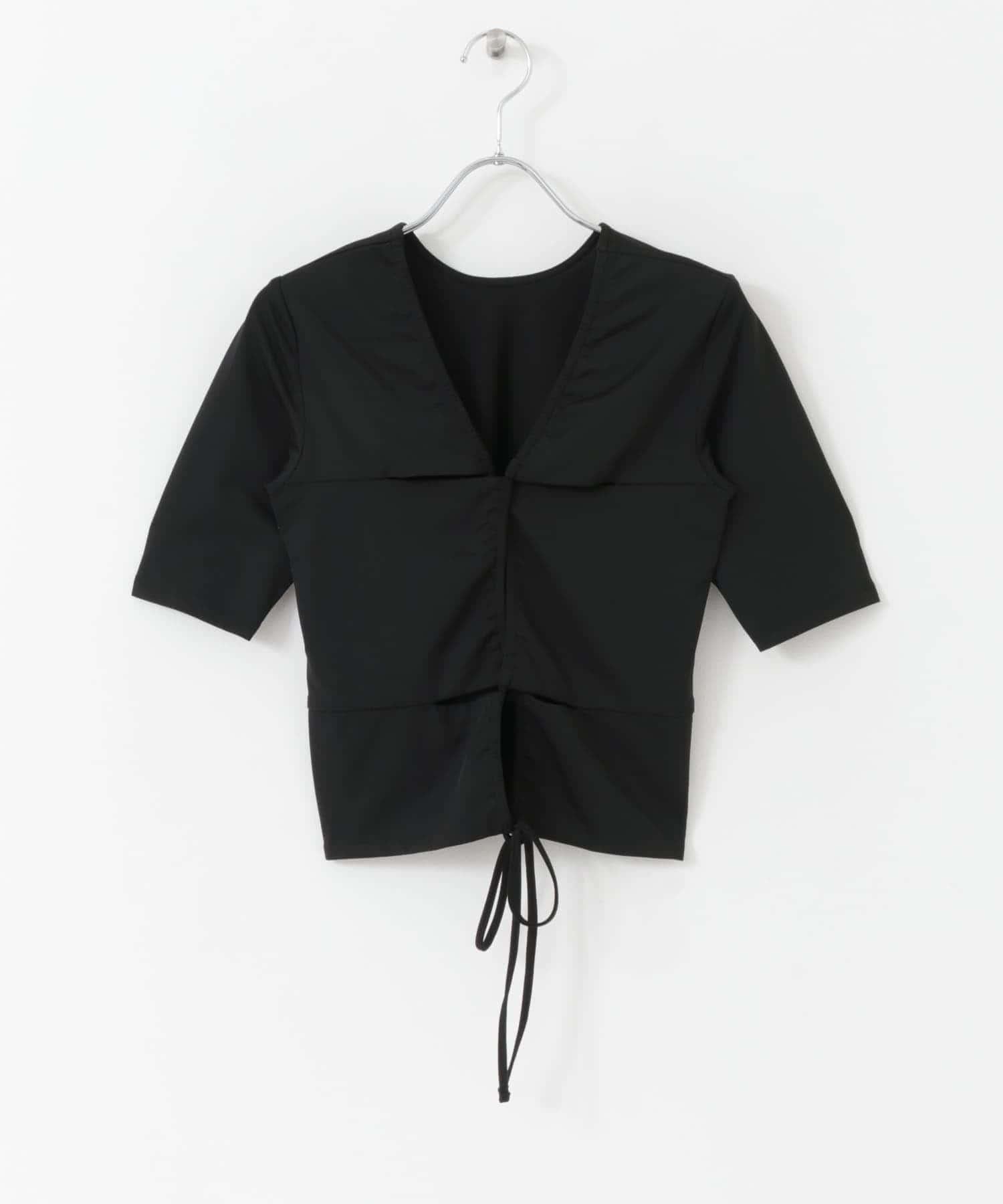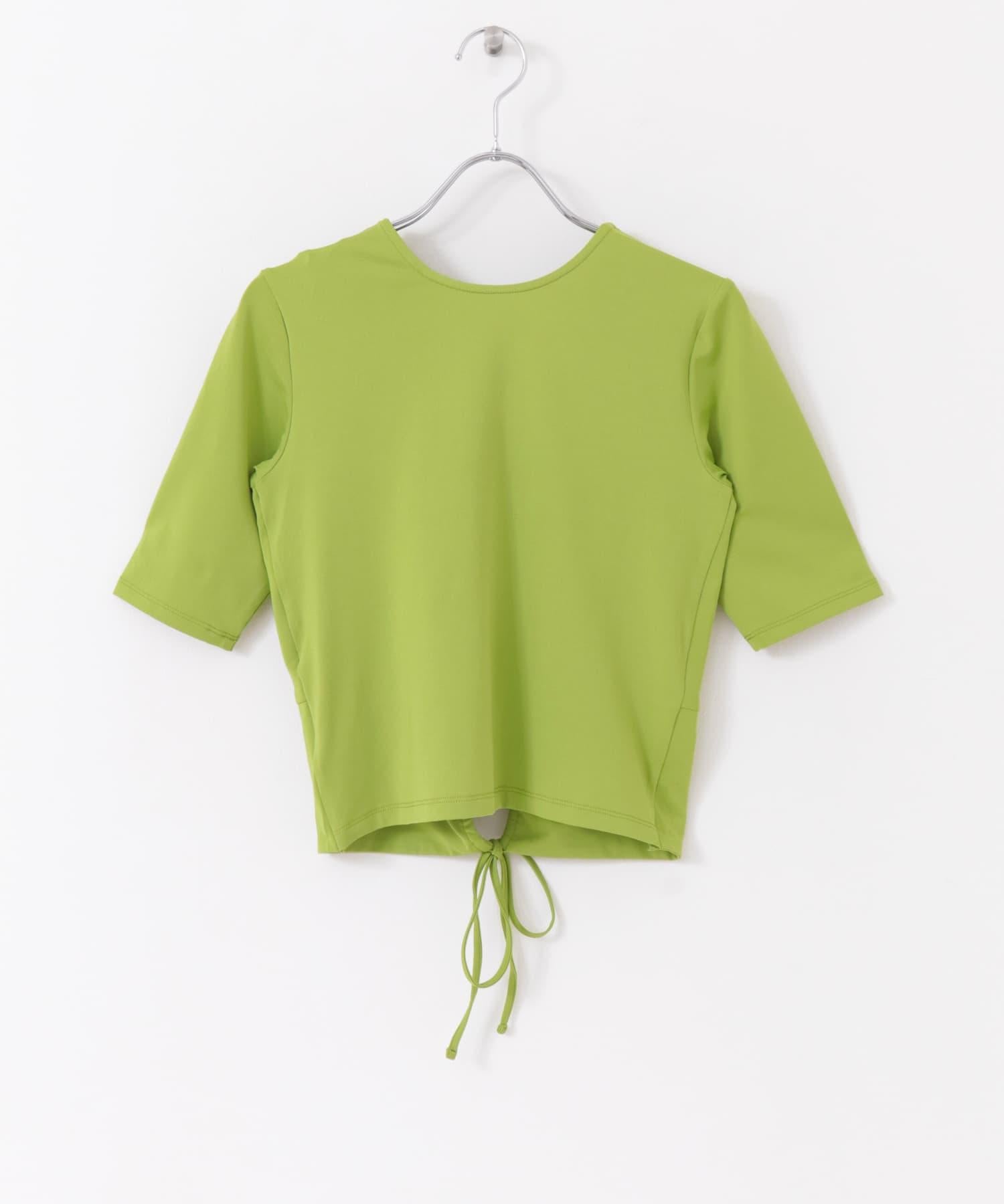 抽繩設計可以向後翻轉,因此也可以作為一件簡單的上衣,搭配背山設計。