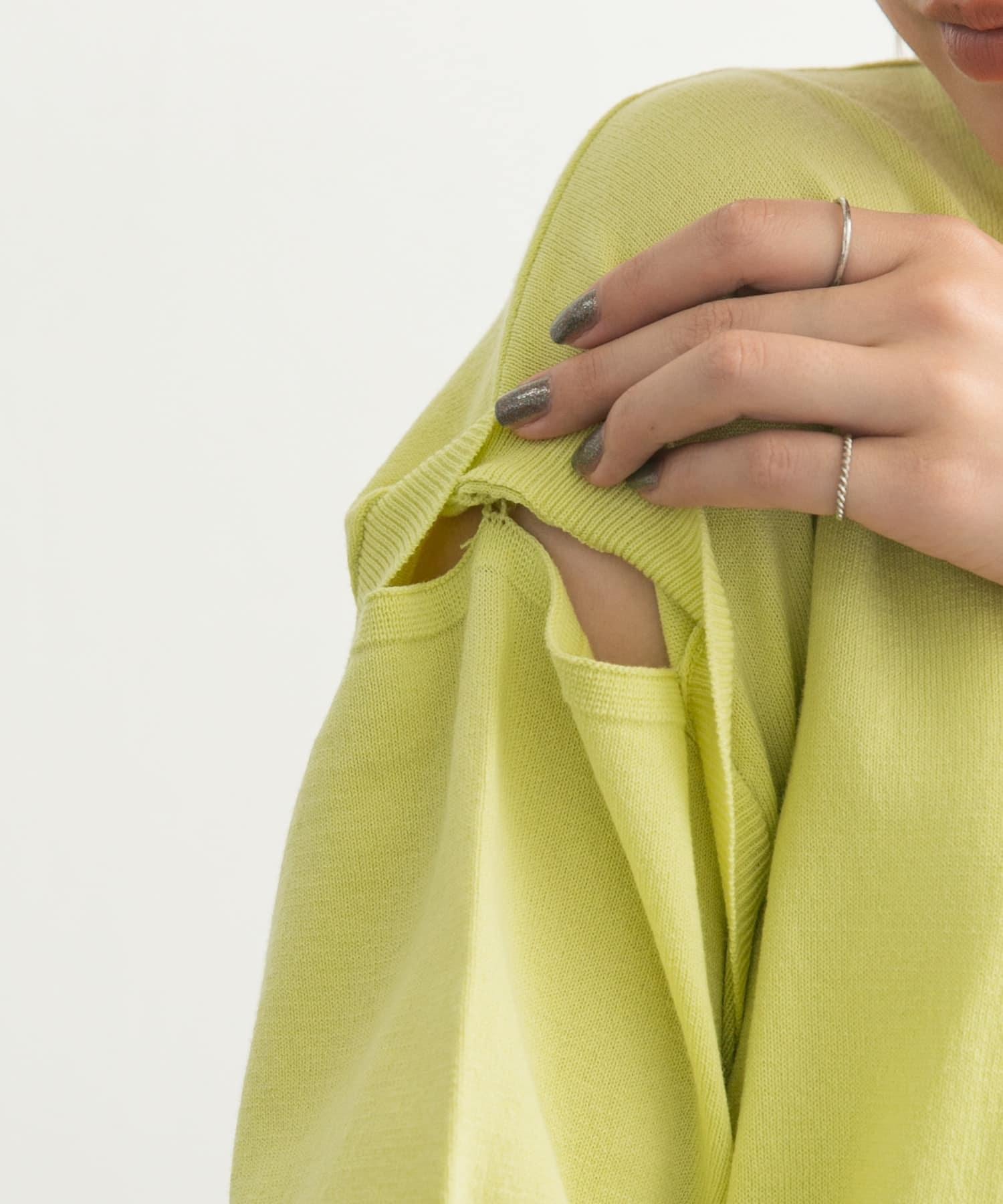 後頸和肩部採用鏤空設計的針織衫,看起來非常舒適。肩部的內扣可根據心情取下。可在家手洗和不透明材質也是一大亮點。有標準的 OFF、MELON 和 ORANGE 三種顏色可供選擇,讓你感受夏日的氣息。