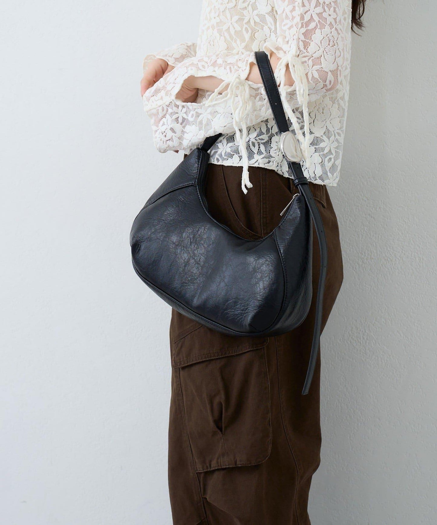 【2WAY/可收納500ml塑料瓶】半月造型單肩包