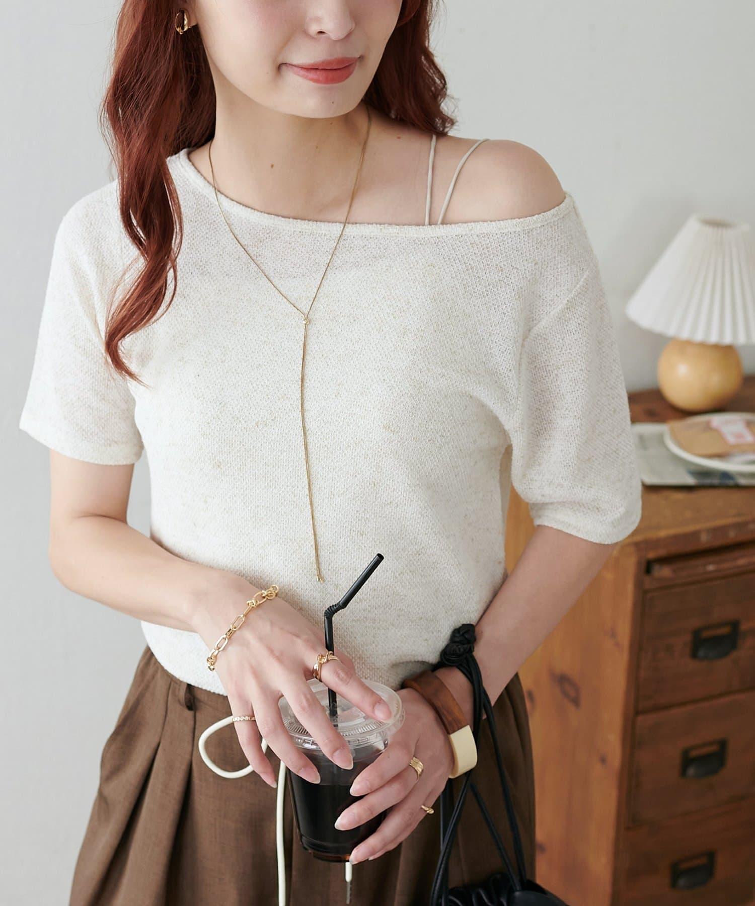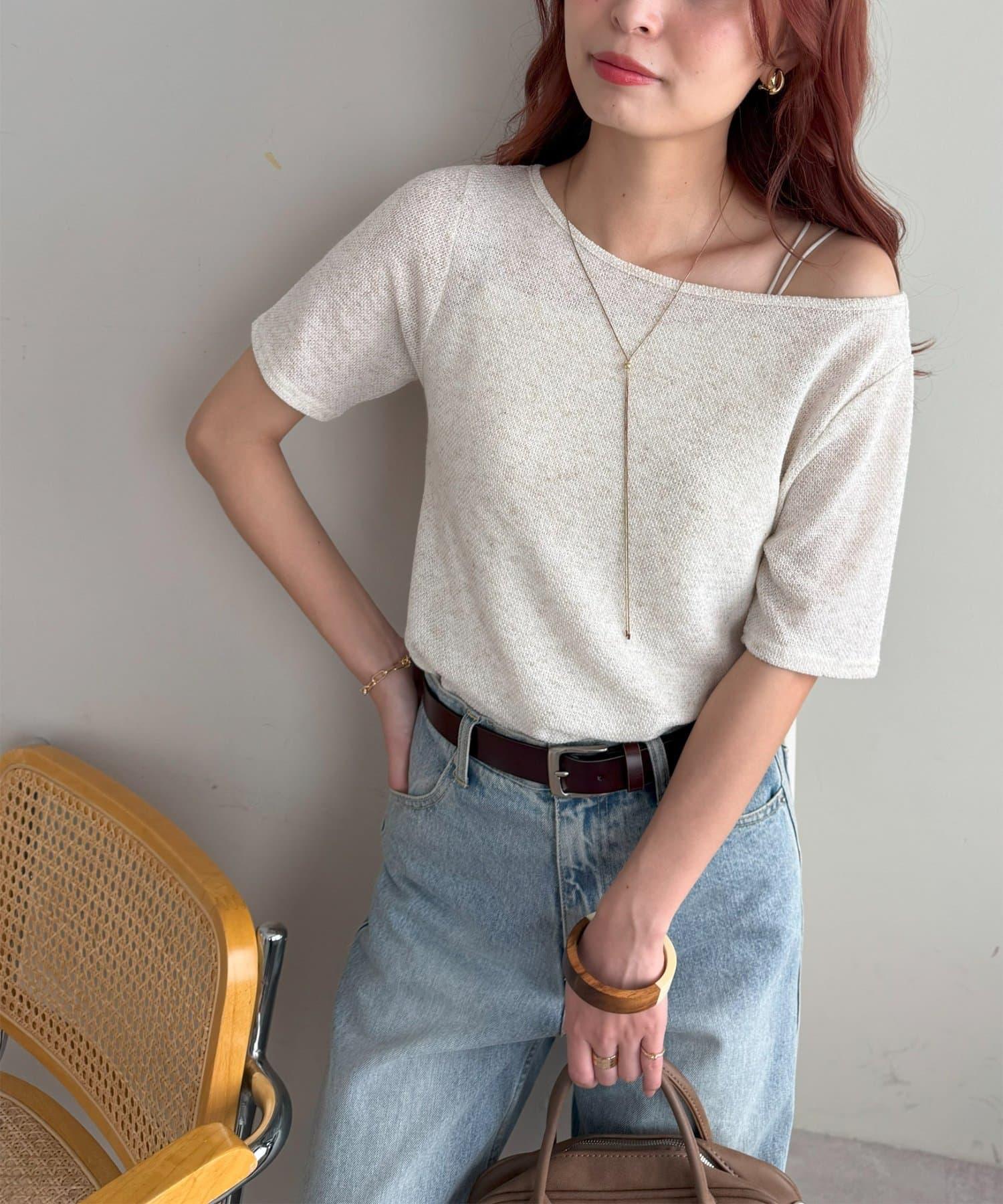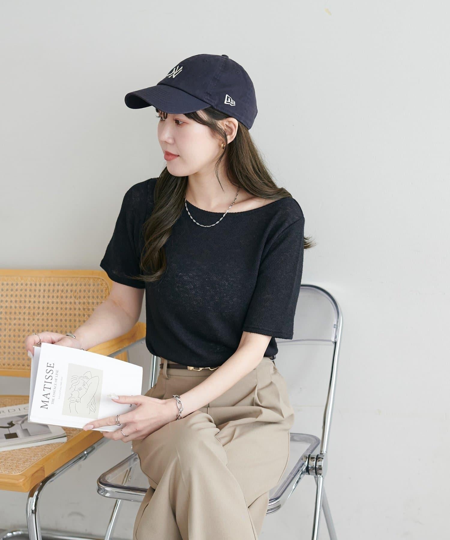 身高 158 厘米的工作人員:一字肩的款式看起來更時尚、更寬鬆。質地輕薄,即使在炎熱的天氣裡也很舒適!