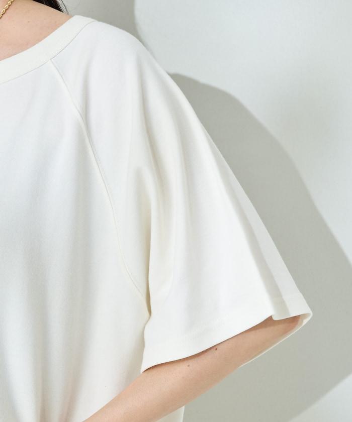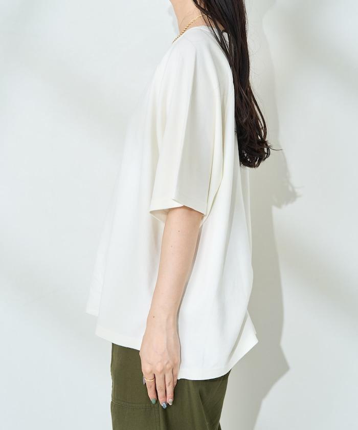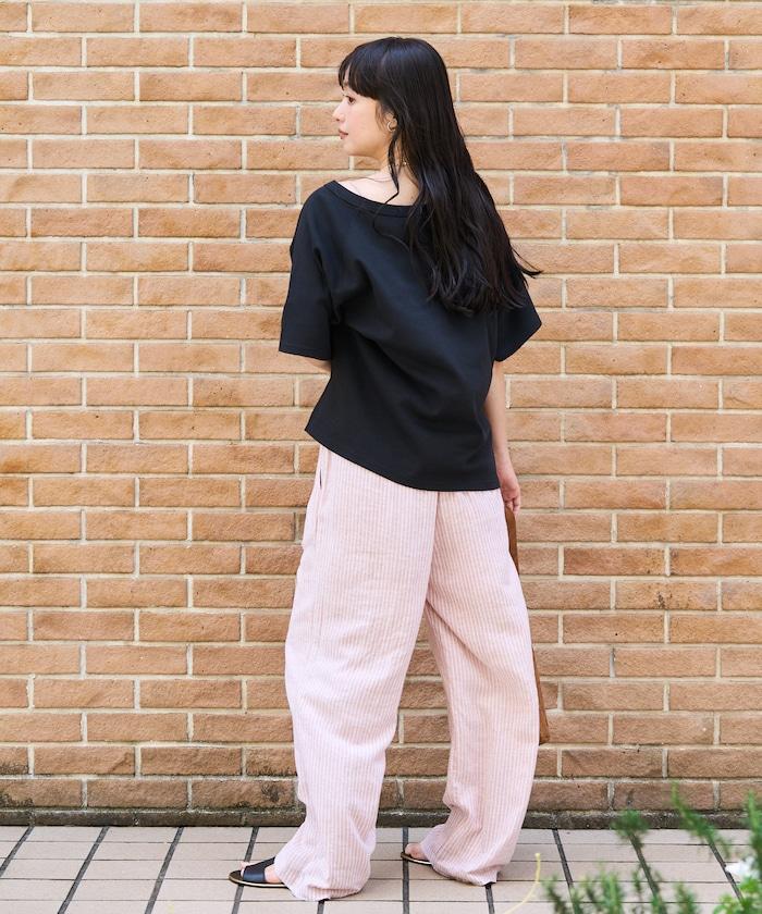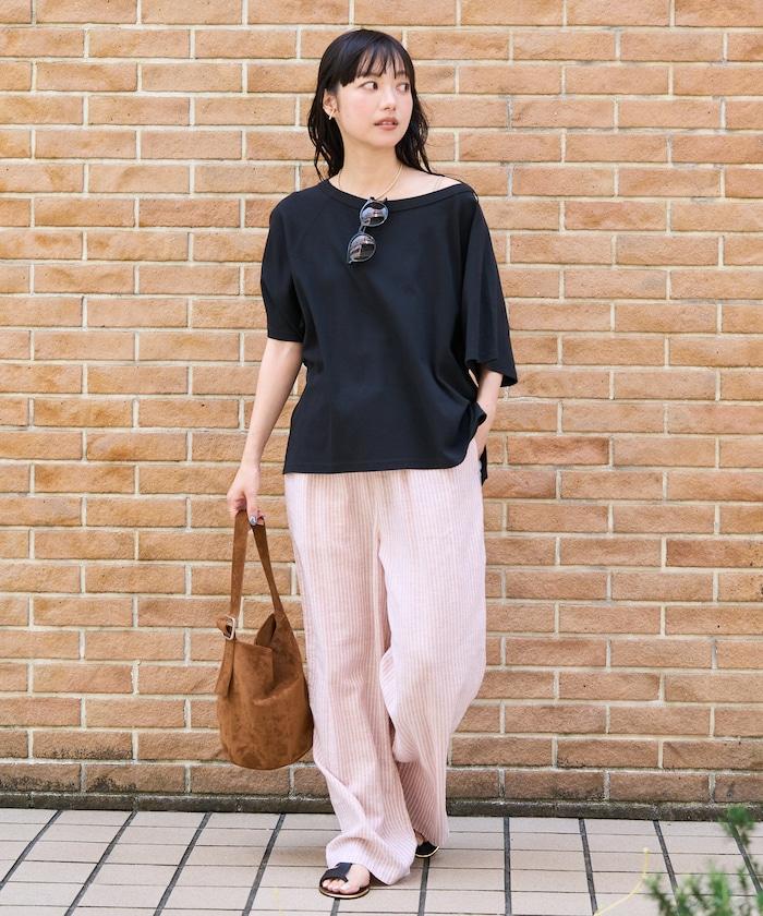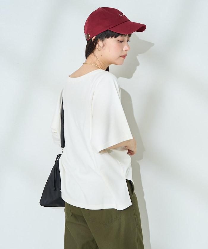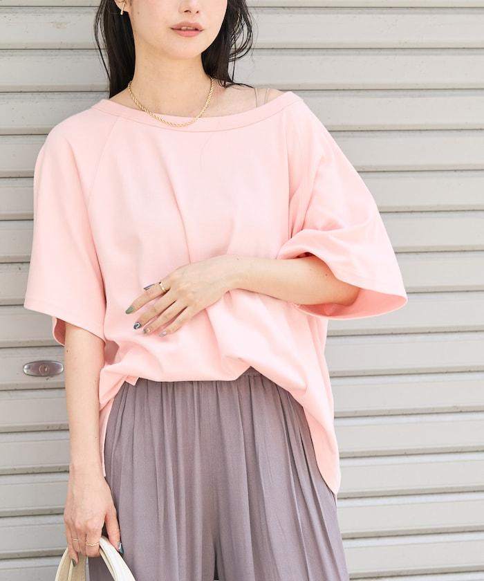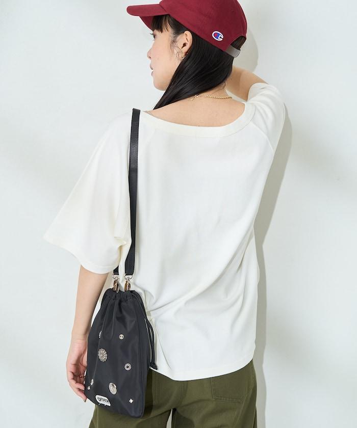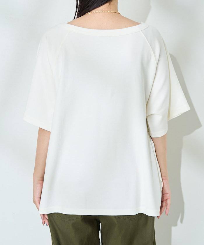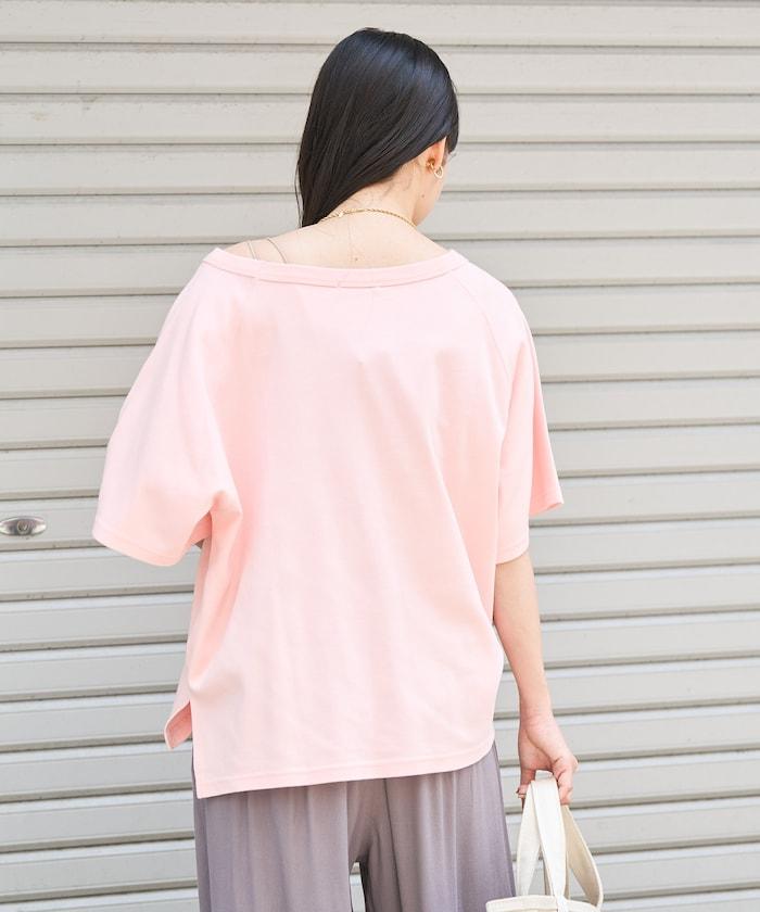 寬而女性化的領口設計讓這款 T 恤也可以露肩穿著。