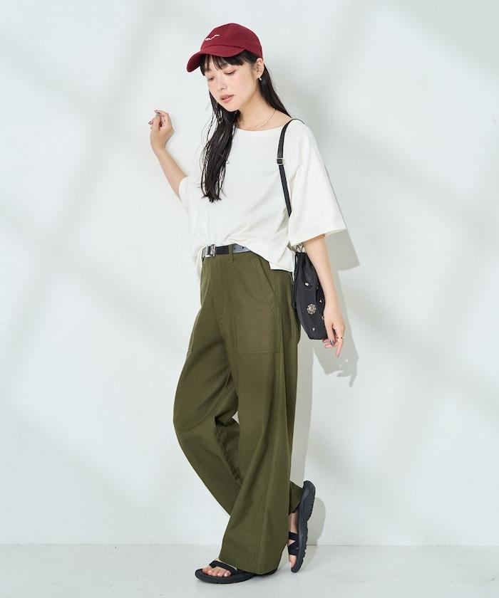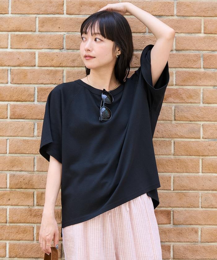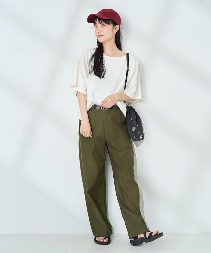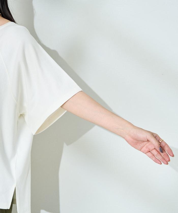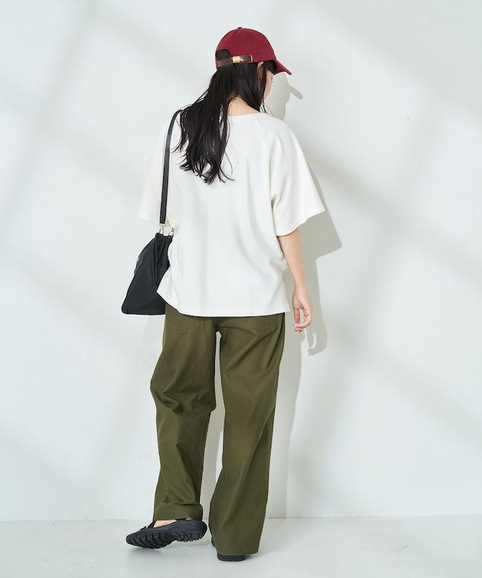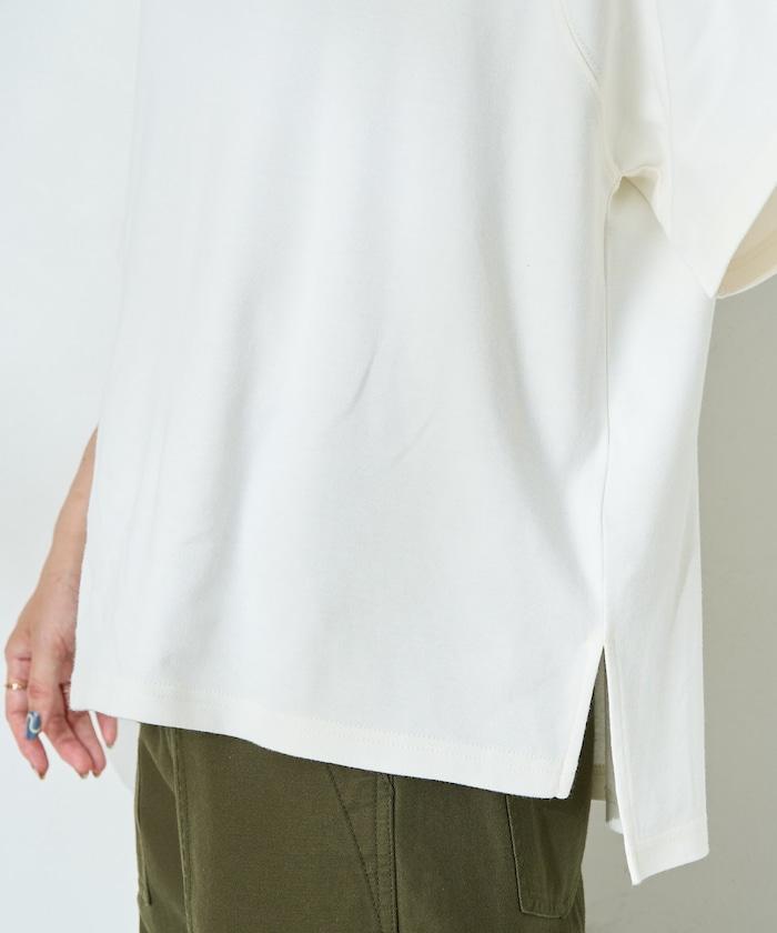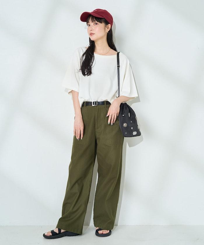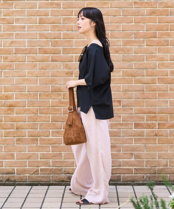 寬而女性化的領口設計讓這款 T 恤也可以露肩穿著。