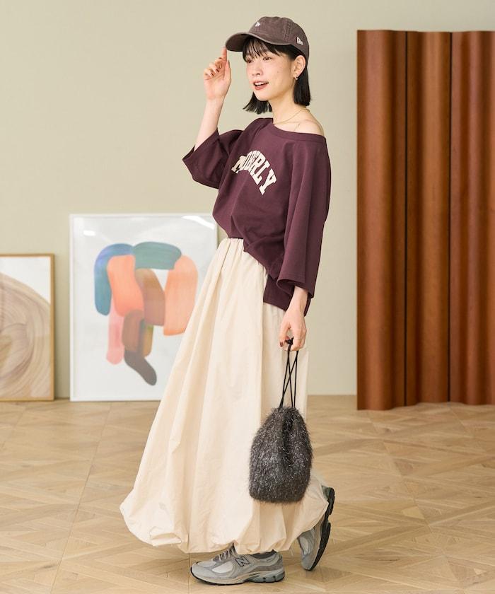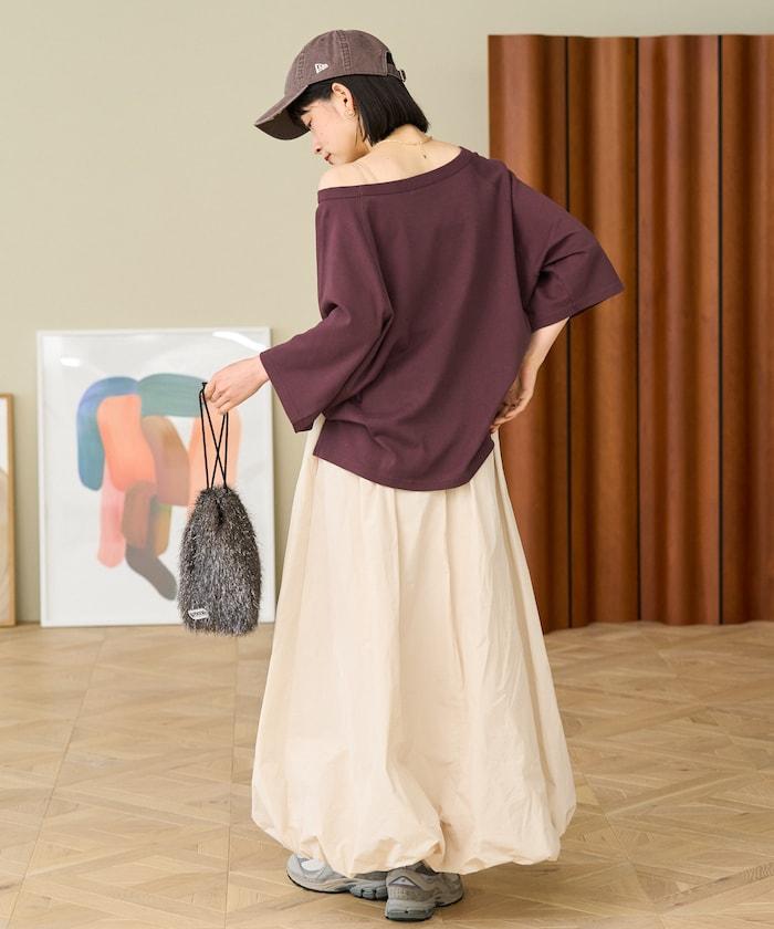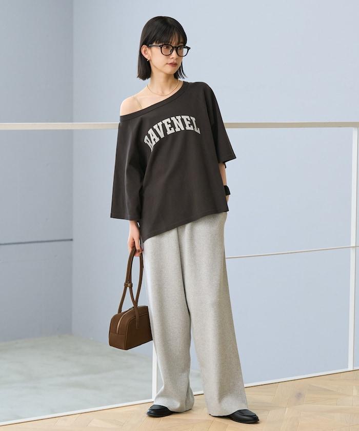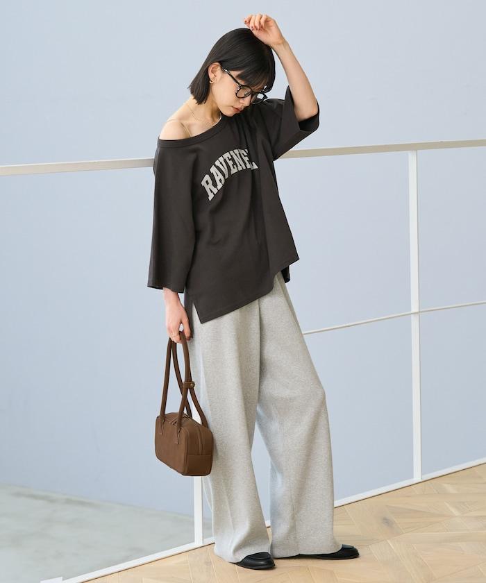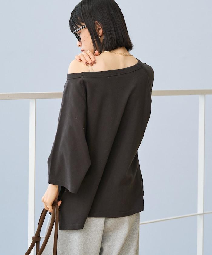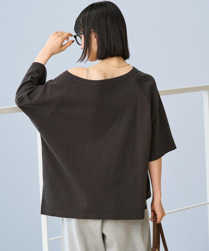 2WAY 平滑logo七分袖T恤/露肩T恤