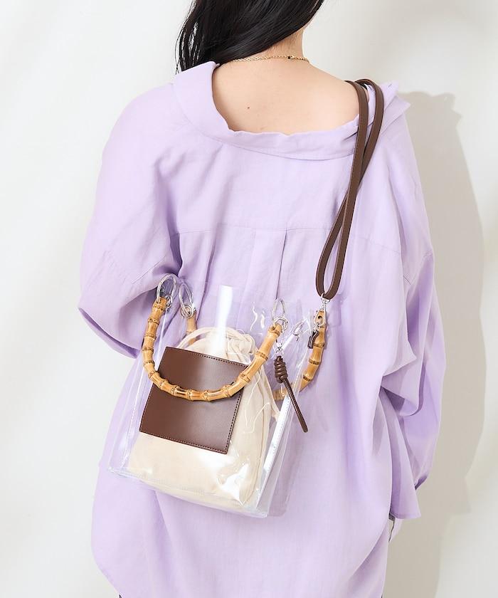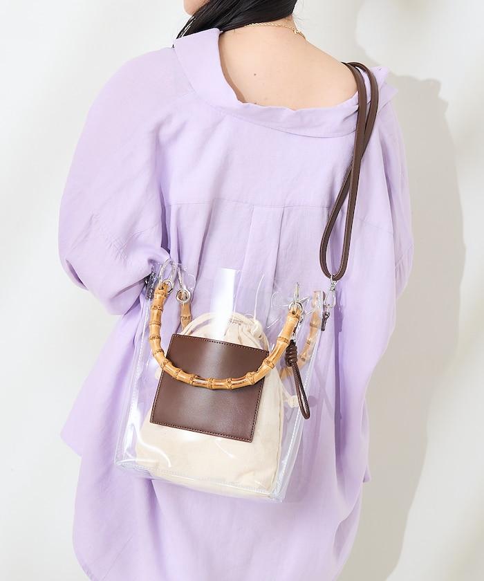 2way 竹柄PVC手提包