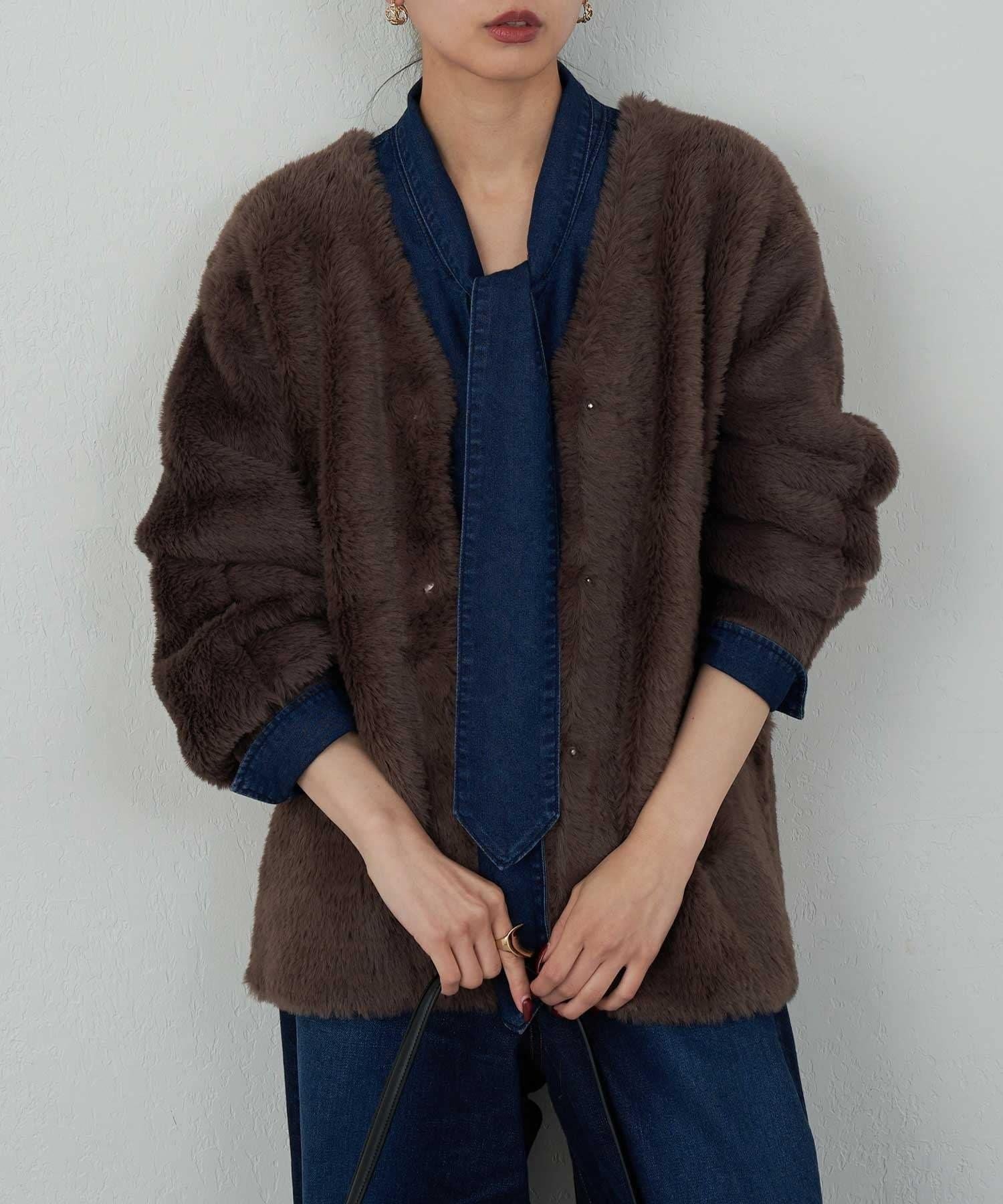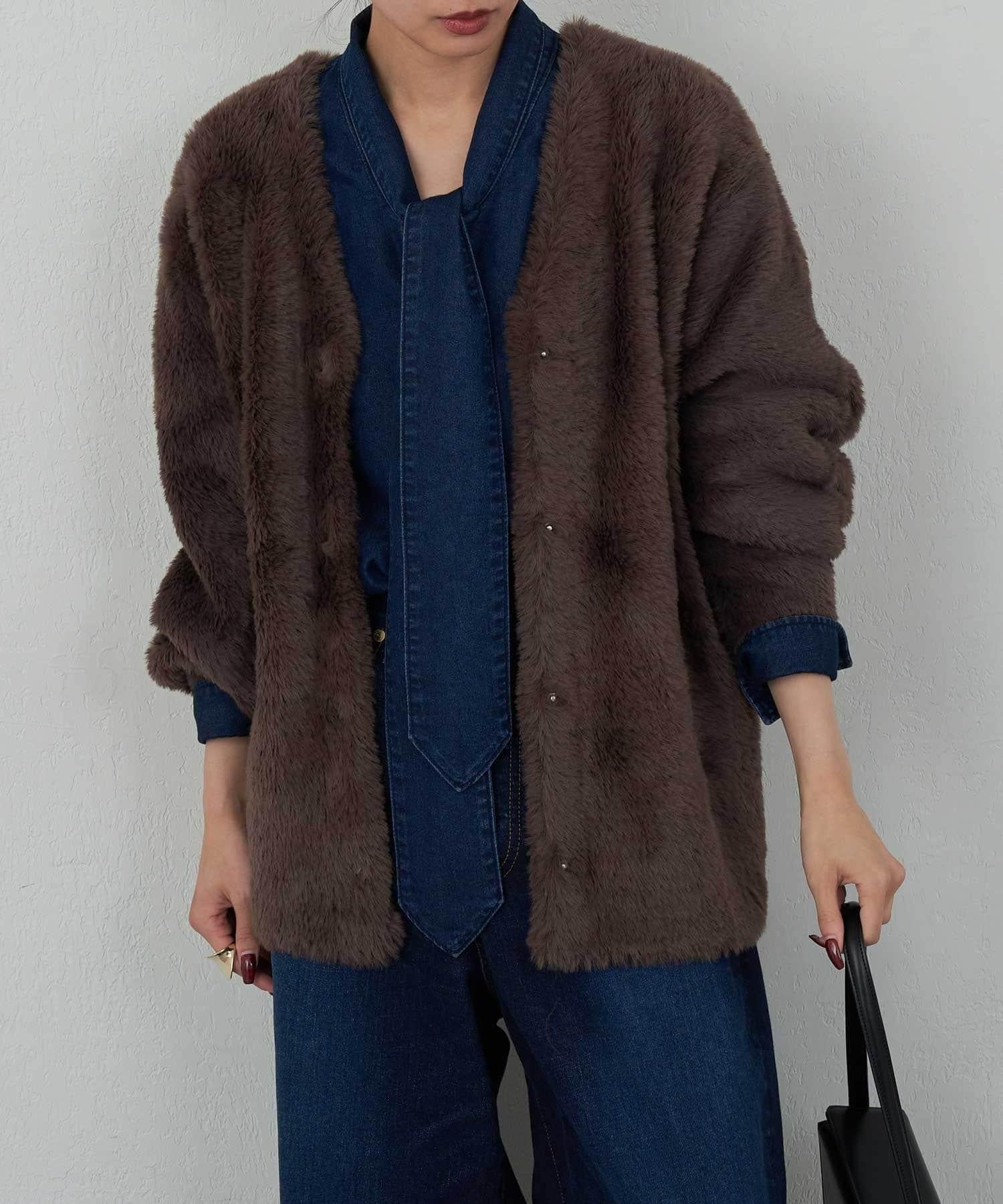 具有豐富材質感的雙面開衫,可以像外衣一樣穿著。