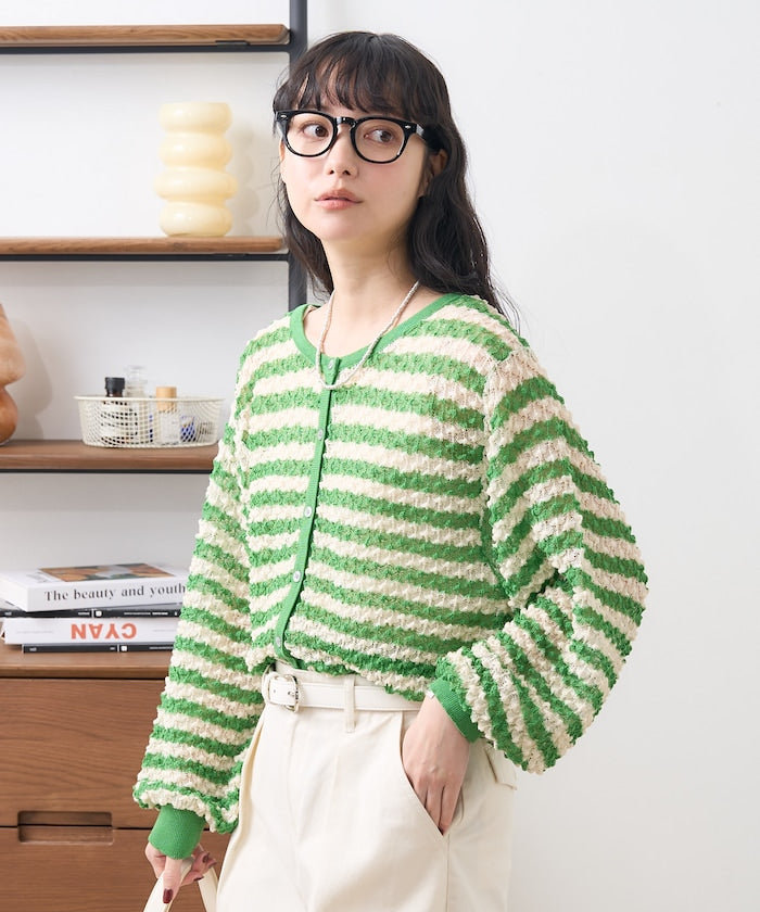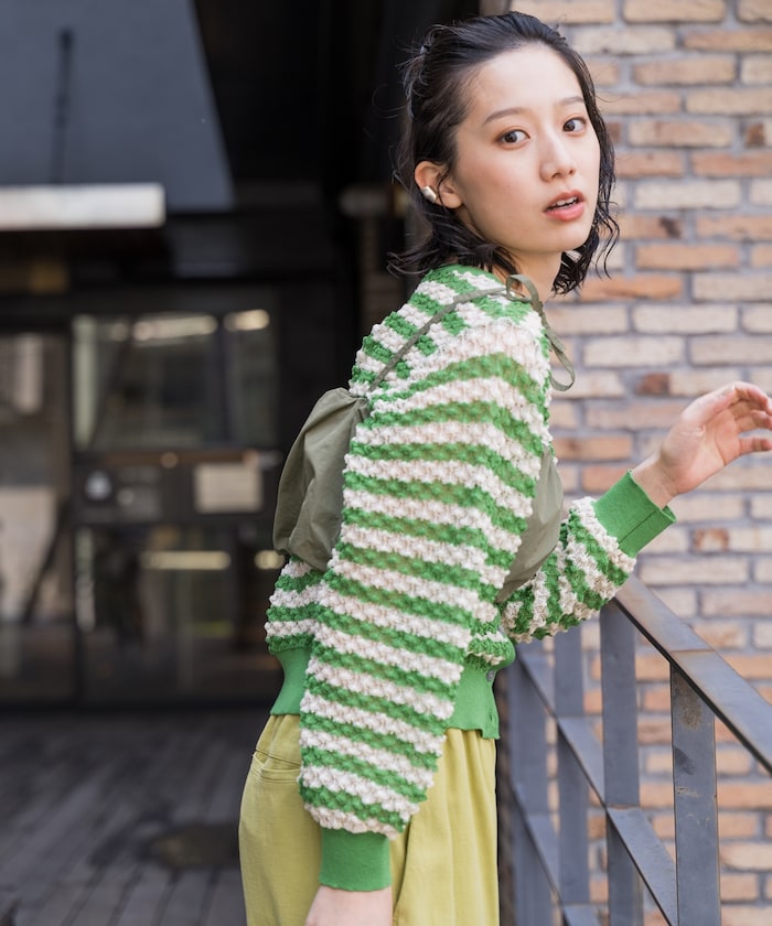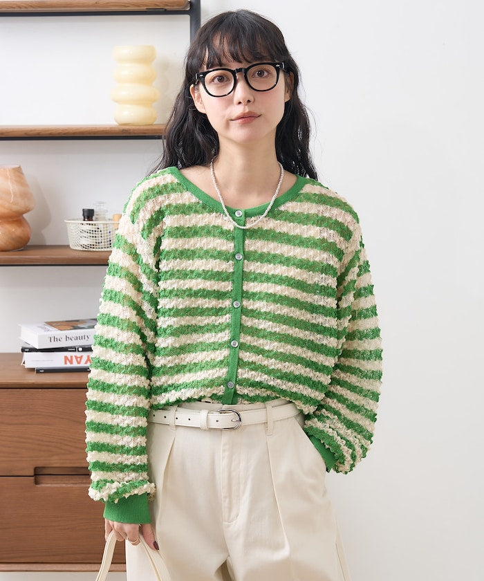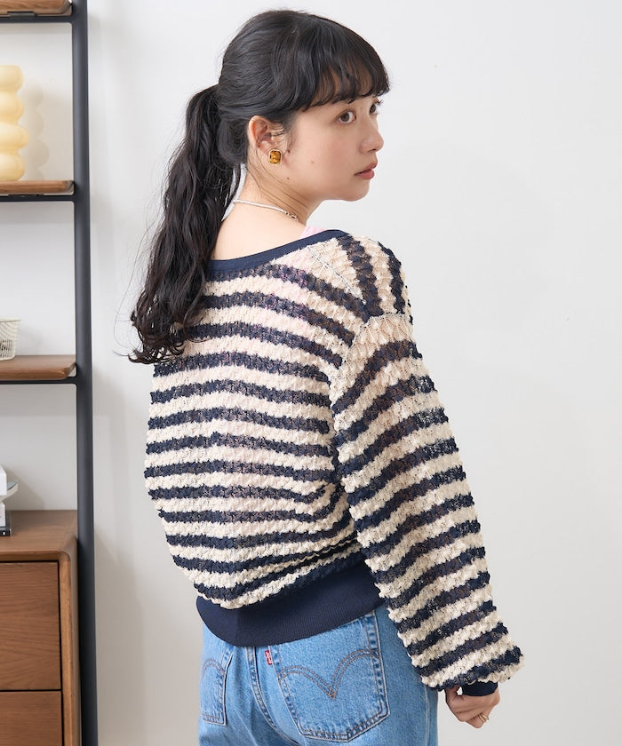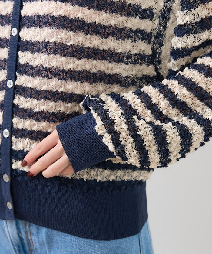 透視針織開衫,帶有獨特的 pokopoko 針織圖案。