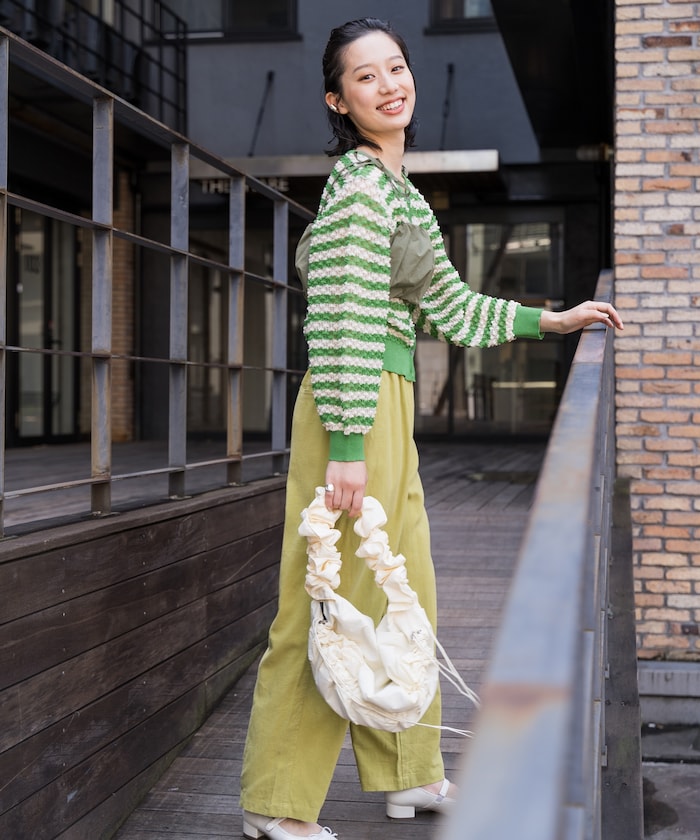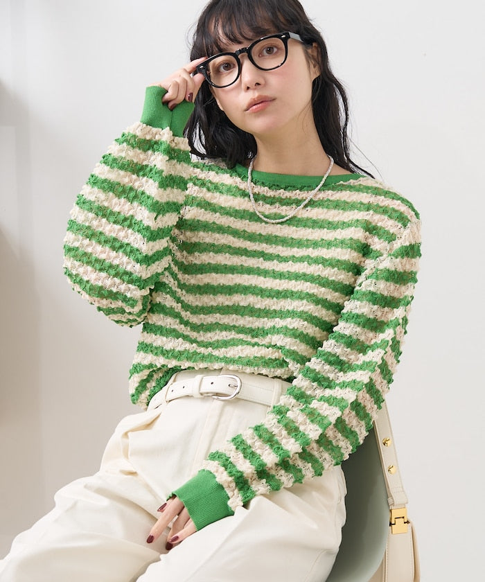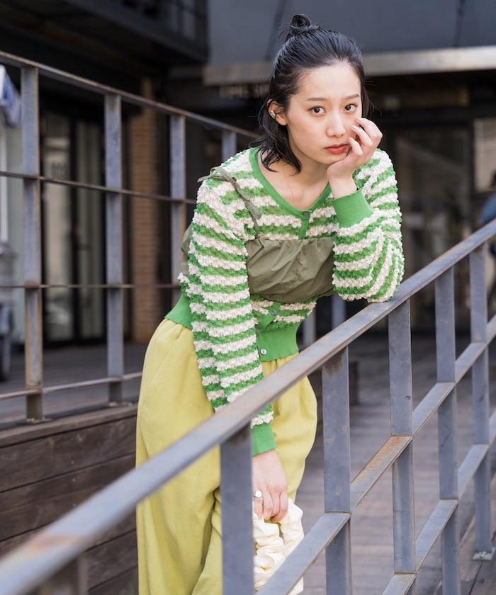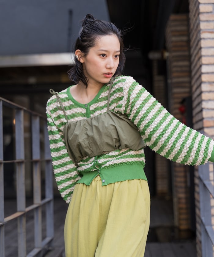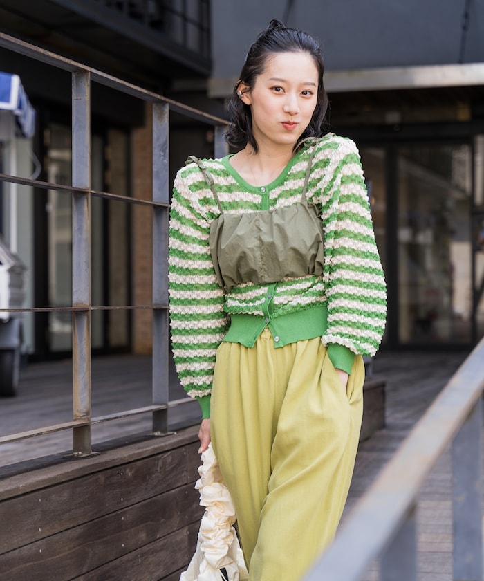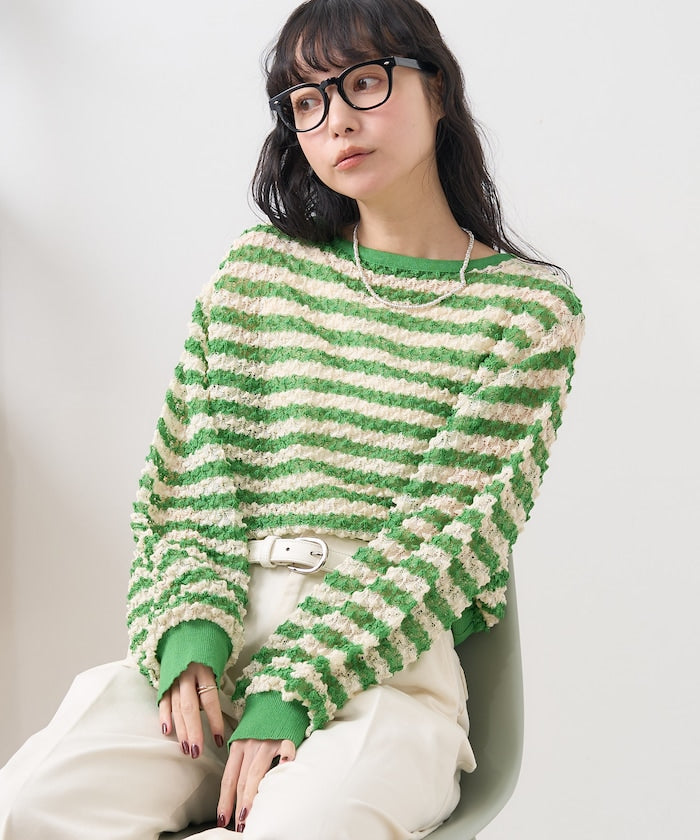 透視針織開衫,帶有獨特的 pokopoko 針織圖案。