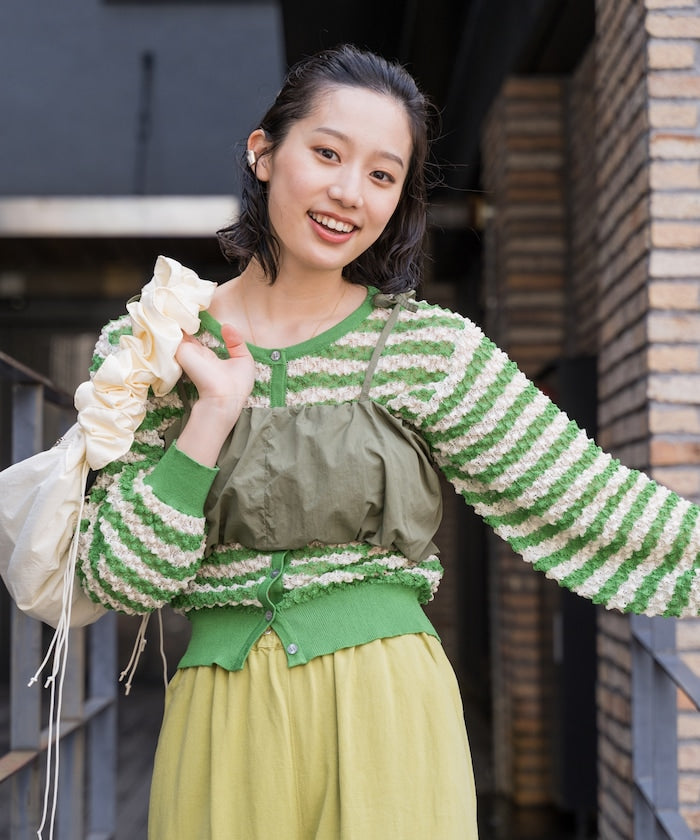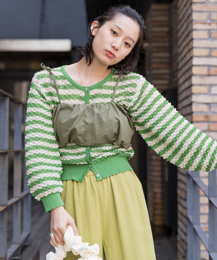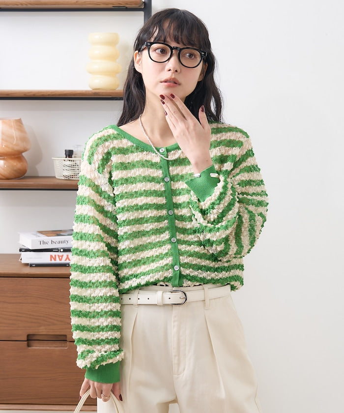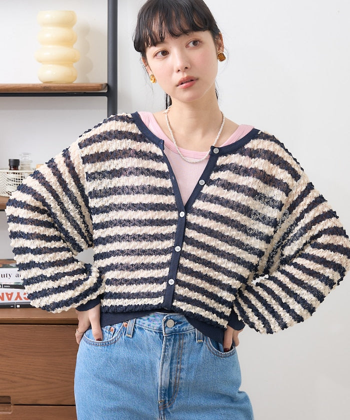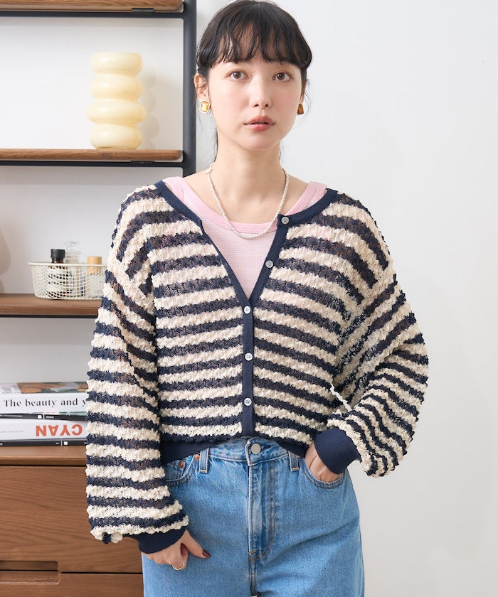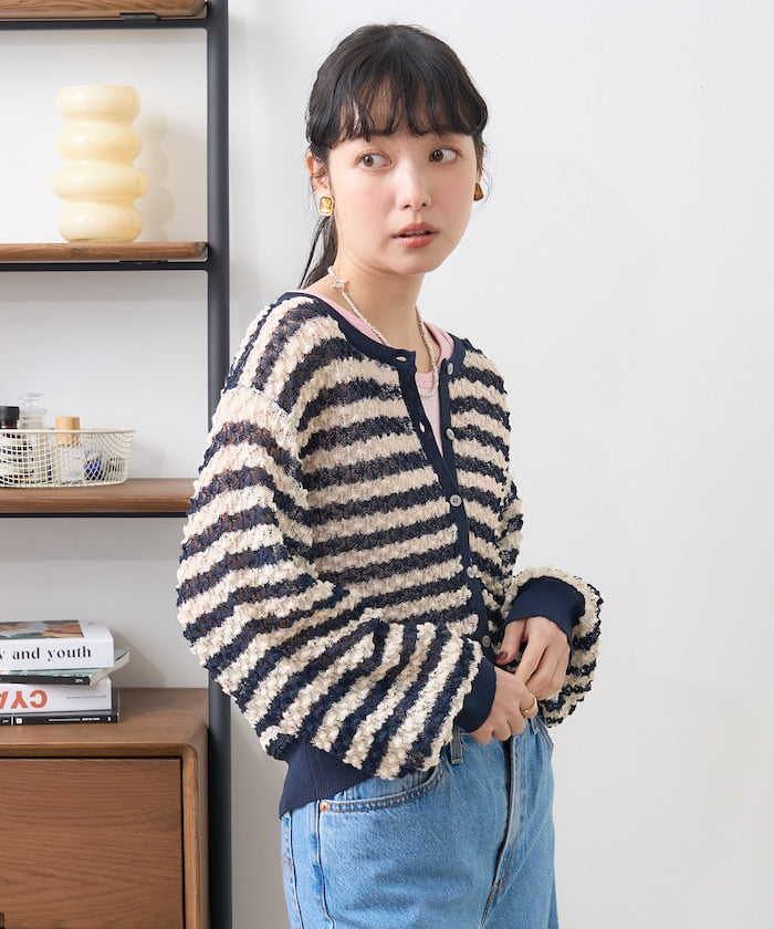 一件薄紗條紋開衫,設計醒目抓人,夏季也可穿著。