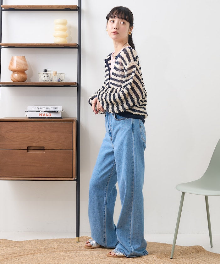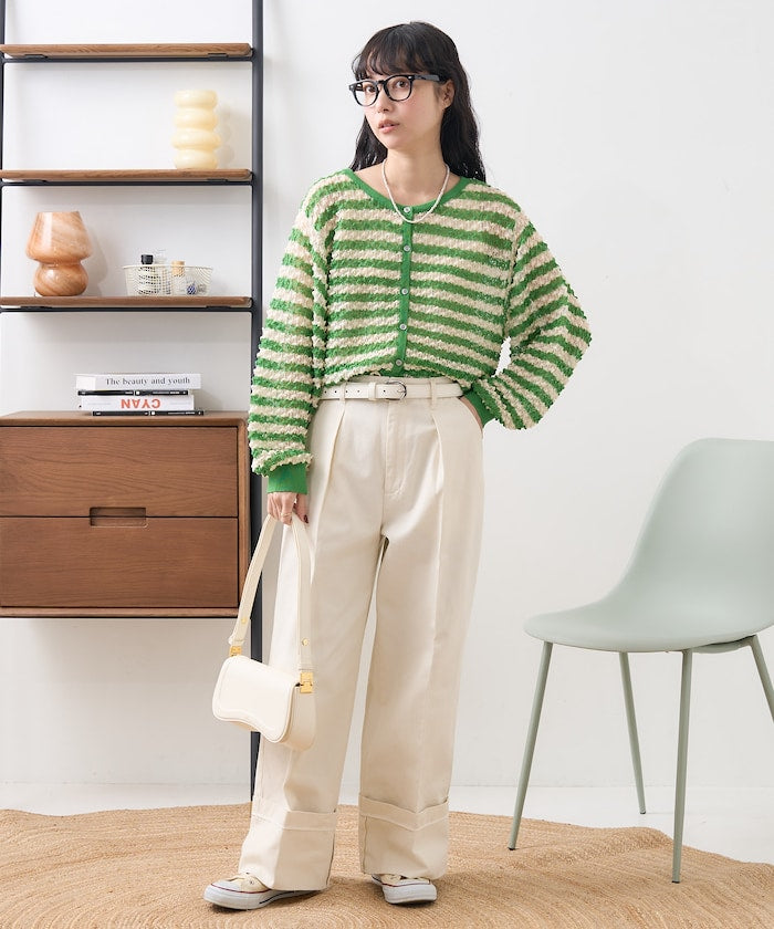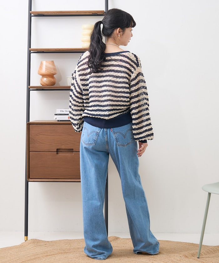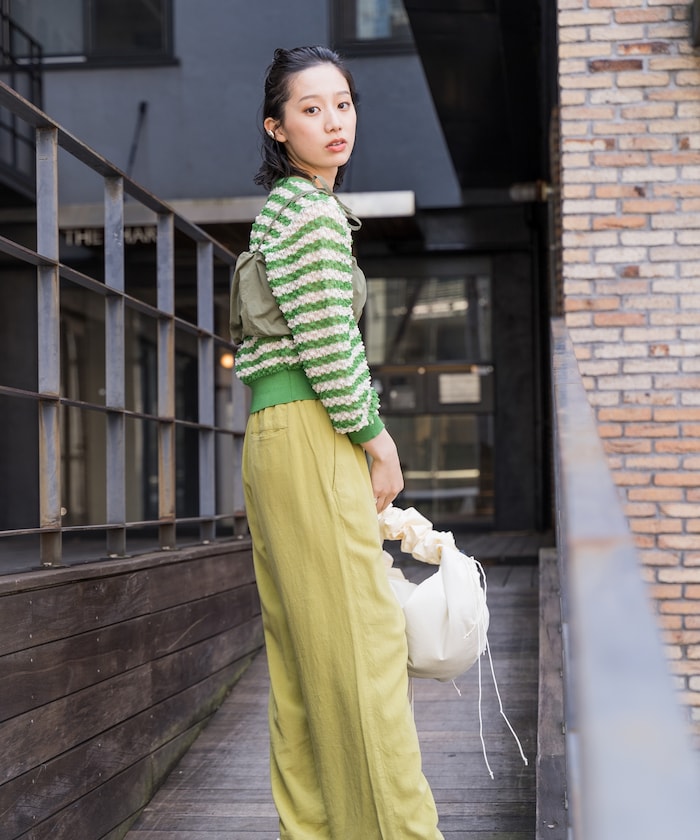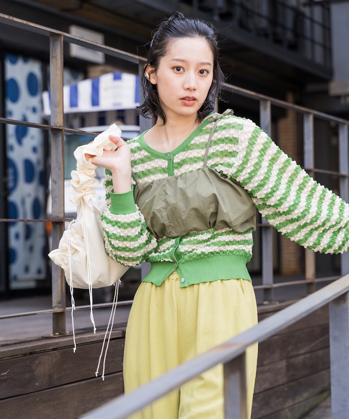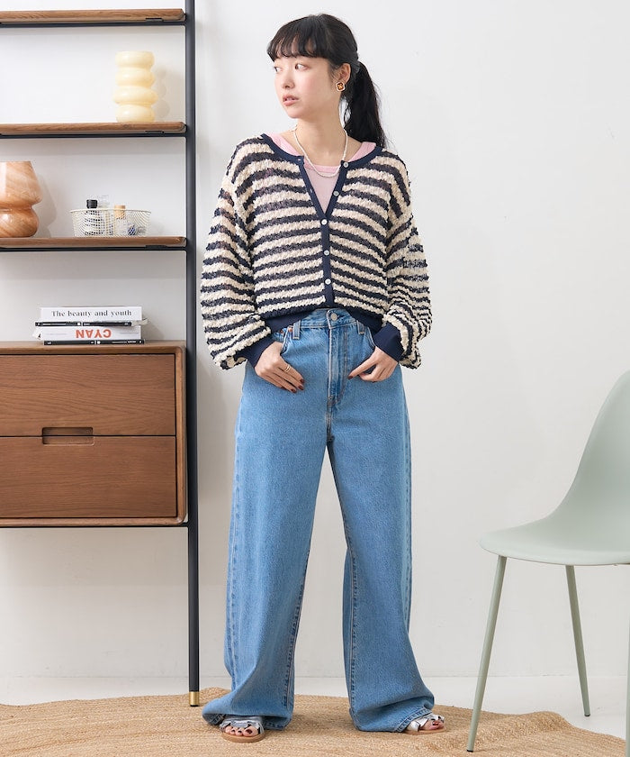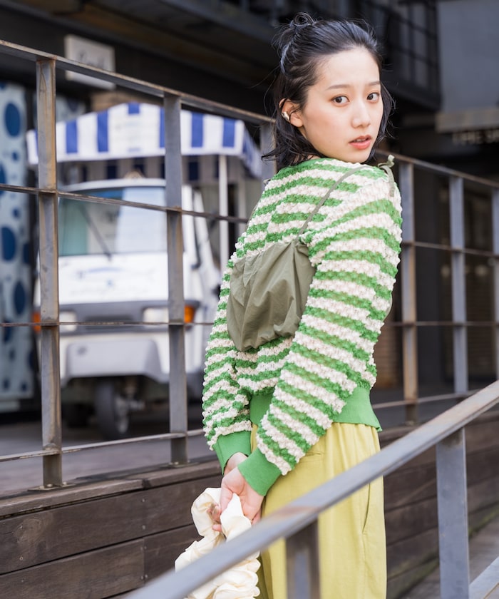 一件薄紗條紋開衫,設計醒目抓人,夏季也可穿著。