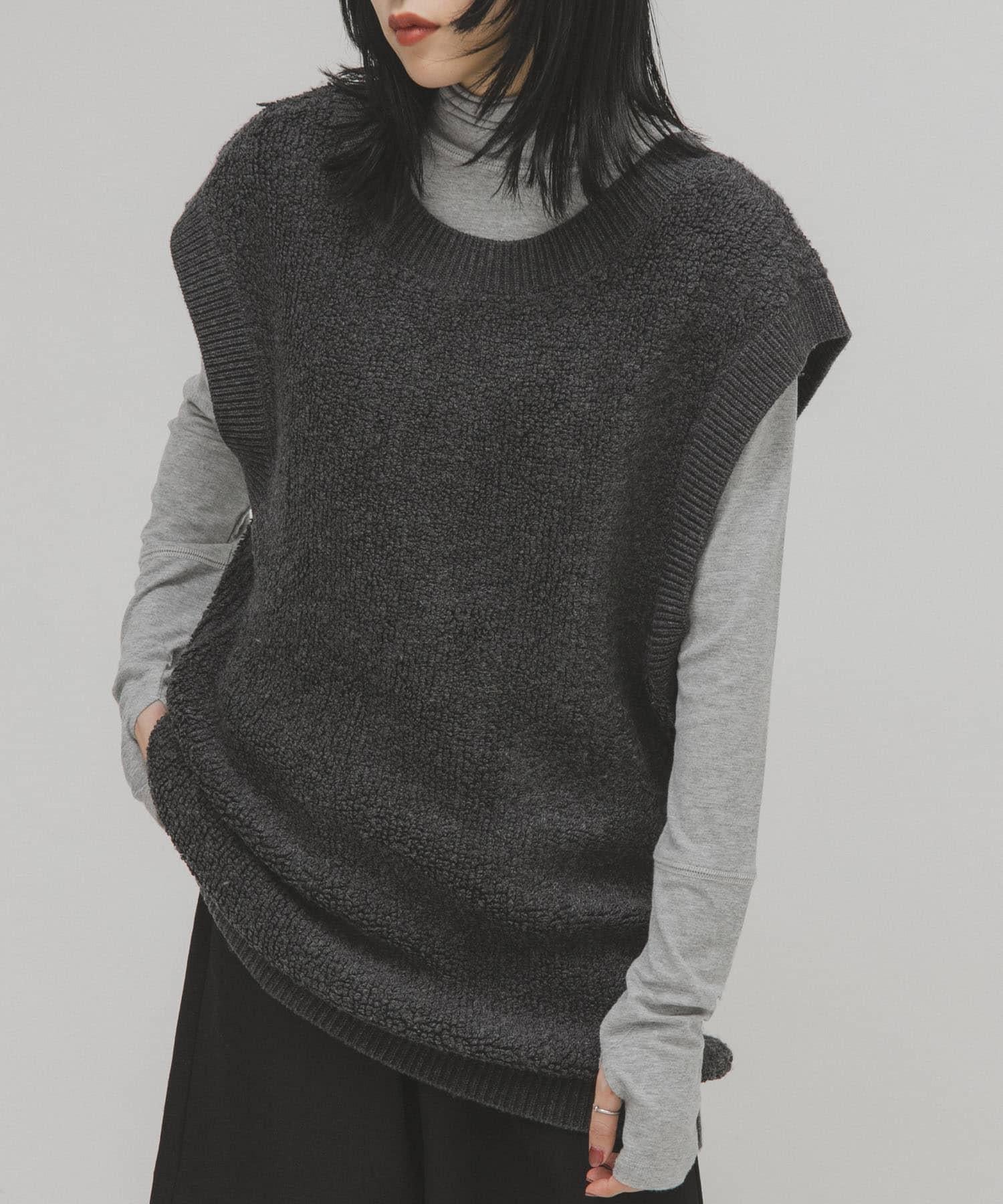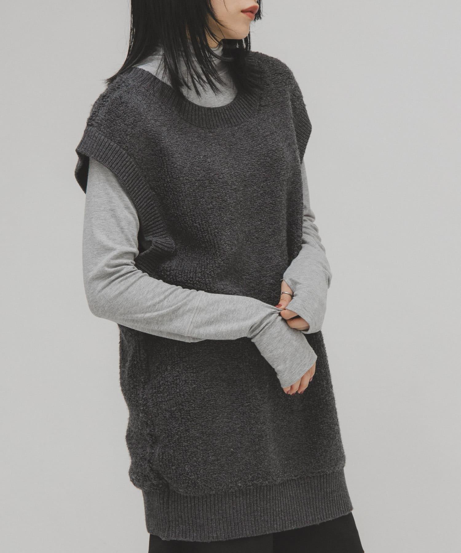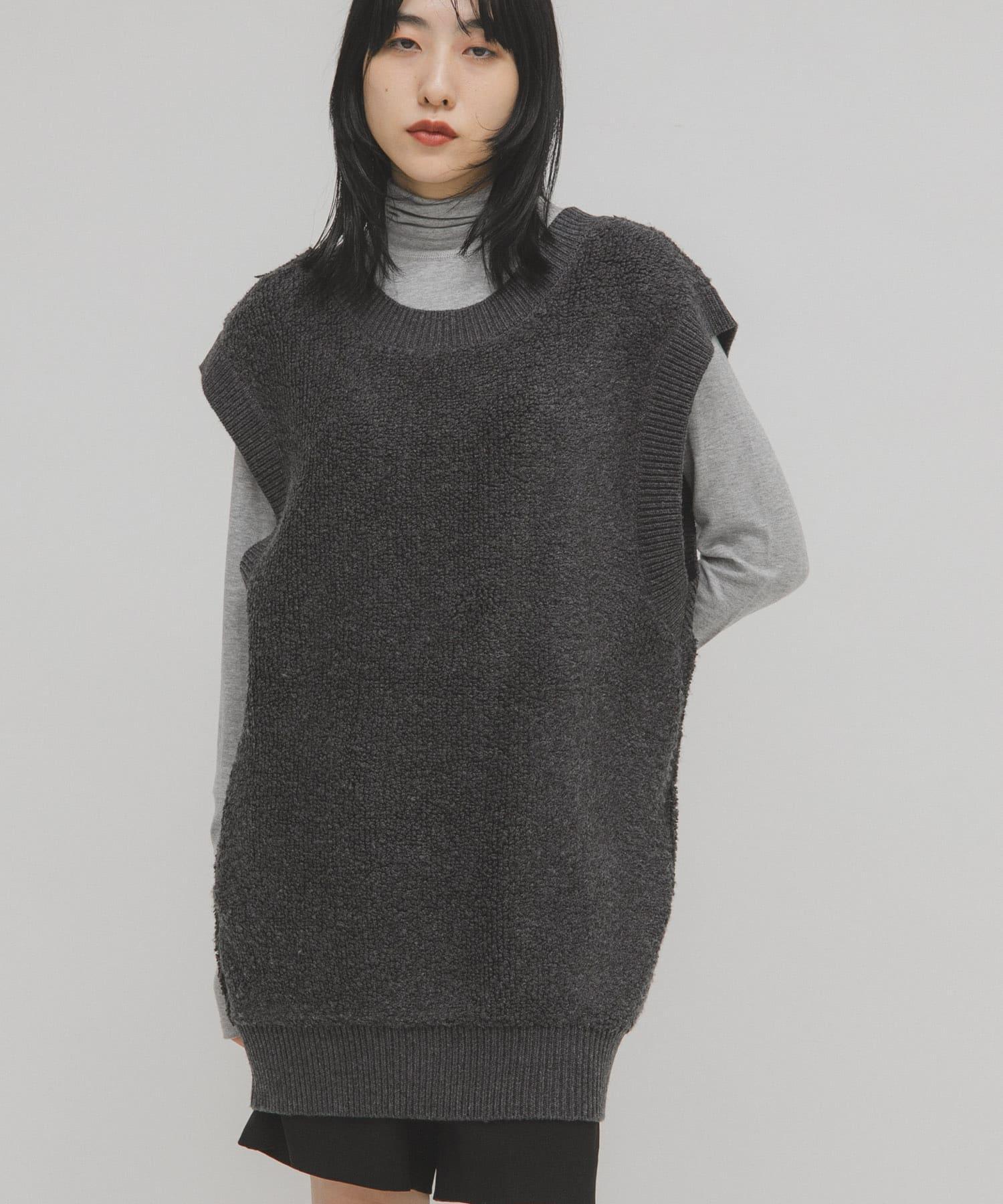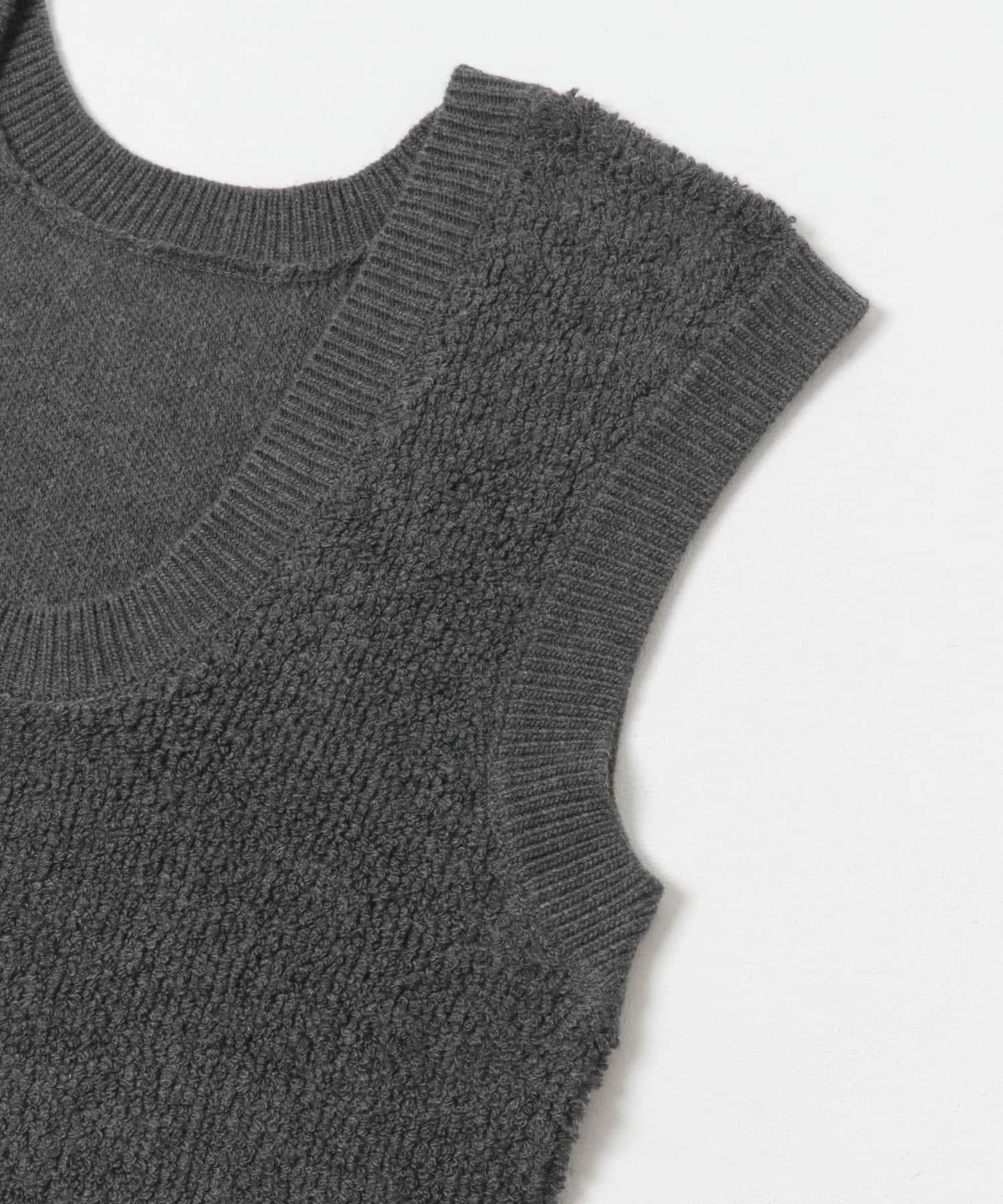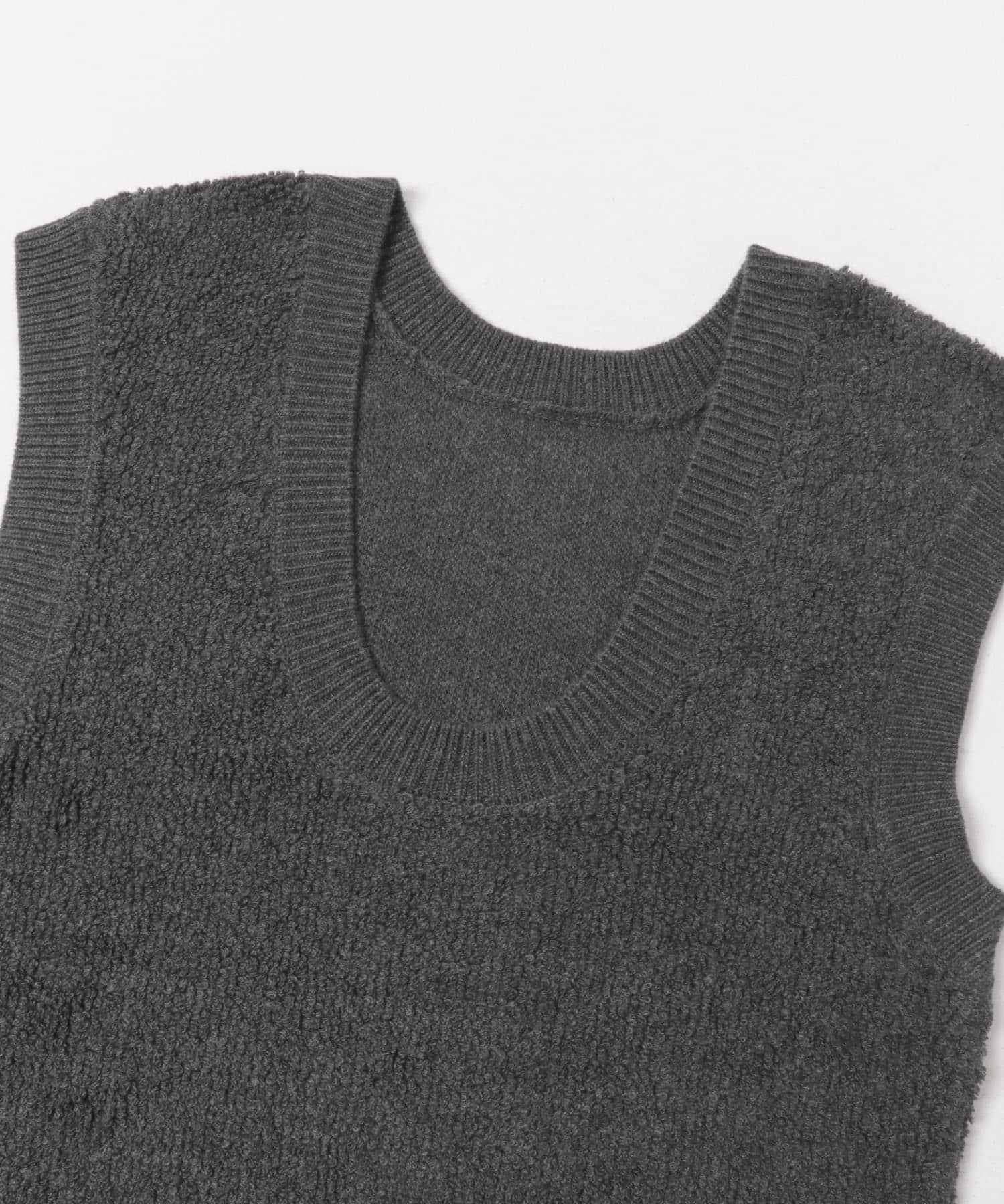 針織馬甲連衣裙採用獨特的地毯式針織面料。可與馬甲等多種單品疊穿。它的前後規格為雙向,深 U 領設計給人一種輕鬆的感覺。它可以像連衣裙一樣搭配短褲和緊身褲,也可以搭配襯衫和寬下裝,形成別緻的搭配。