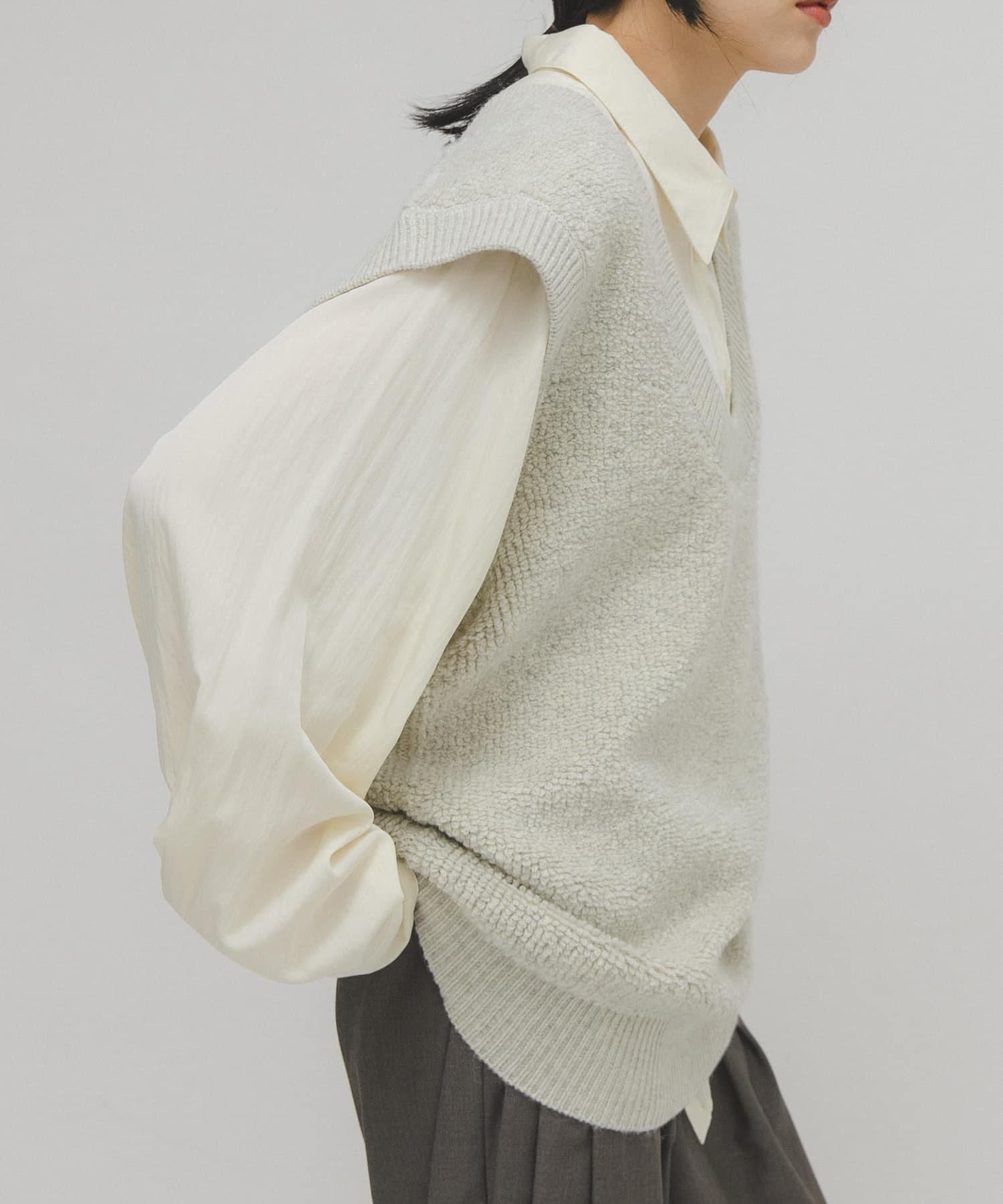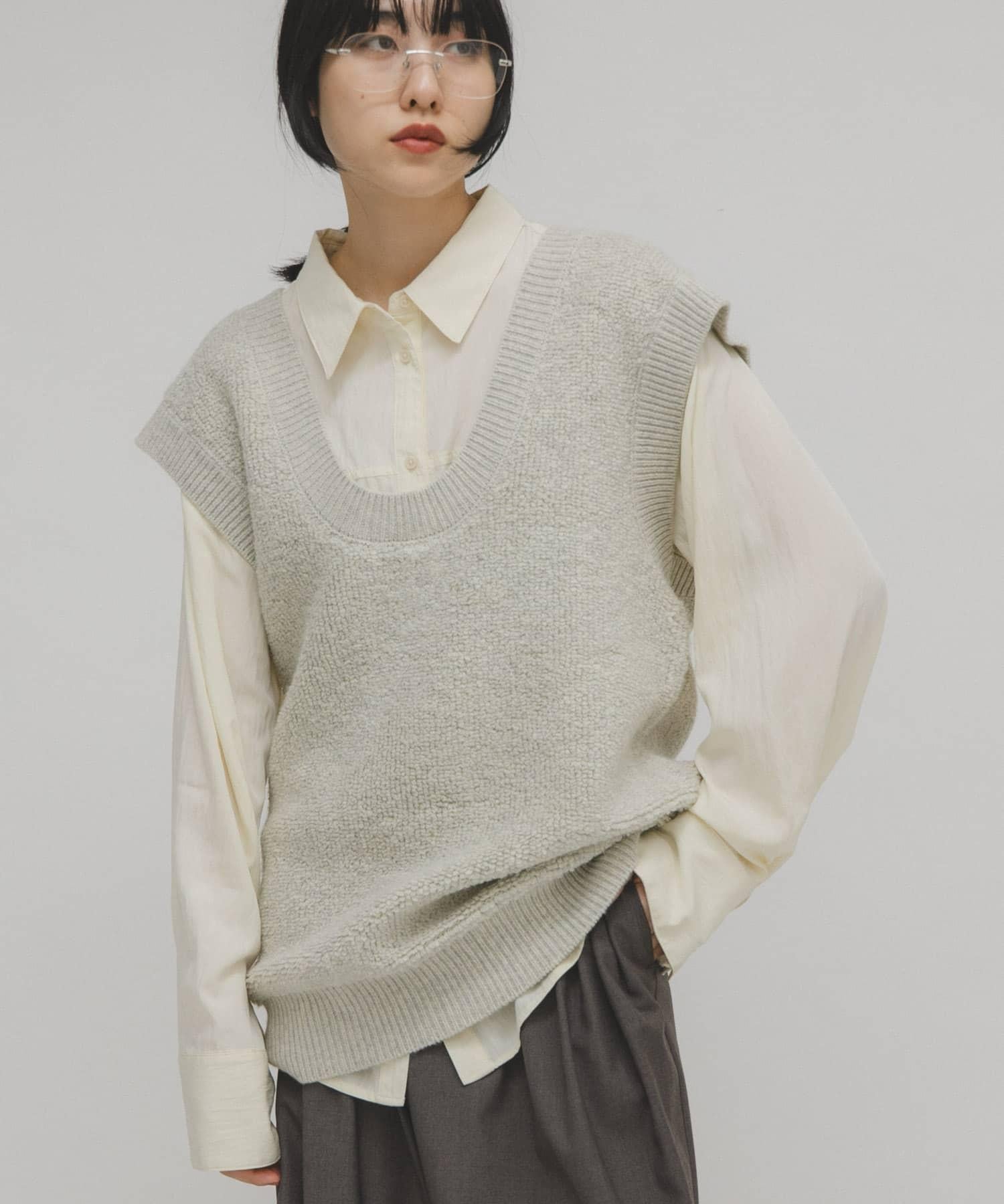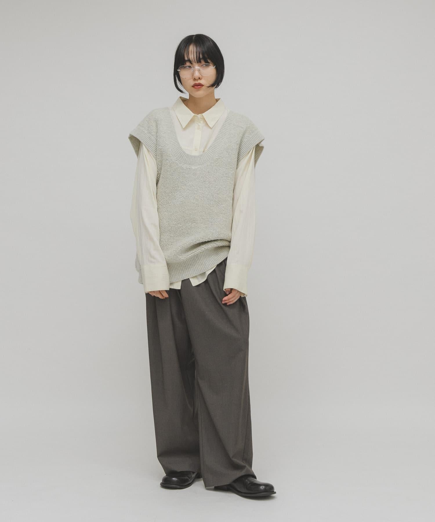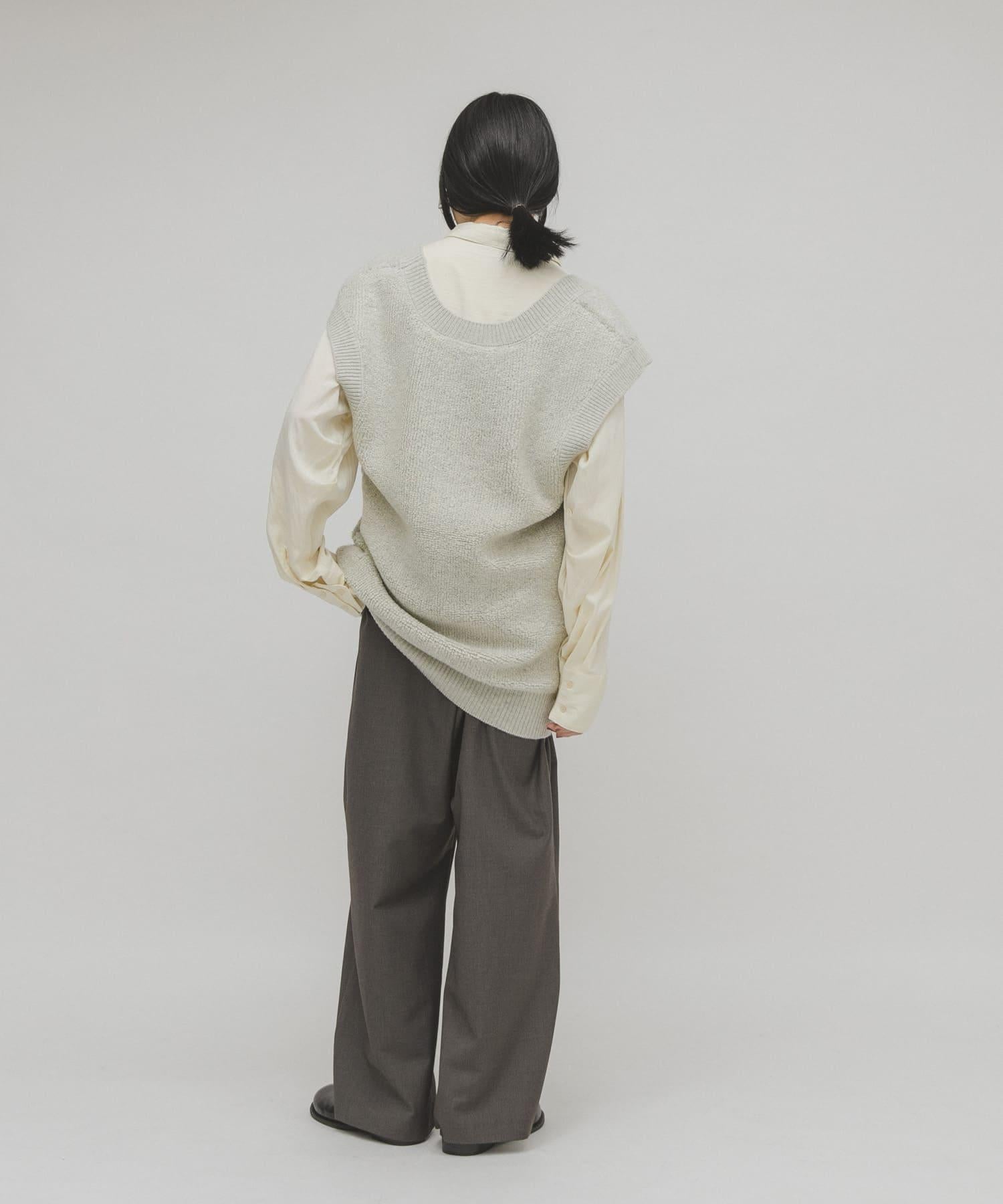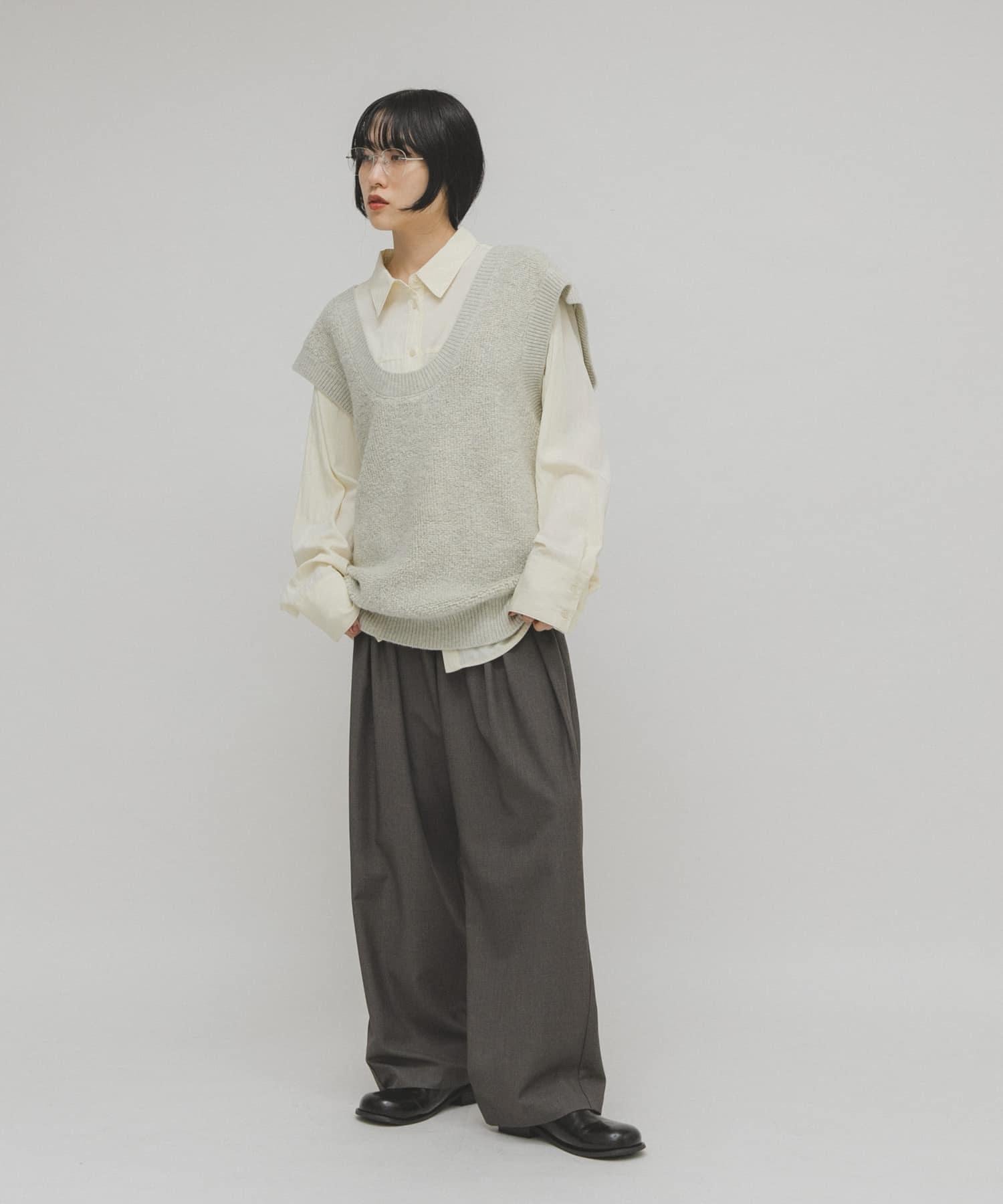 針織馬甲連衣裙採用獨特的地毯式針織面料。可與馬甲等多種單品疊穿。它的前後規格為雙向,深 U 領設計給人一種輕鬆的感覺。它可以像連衣裙一樣搭配短褲和緊身褲,也可以搭配襯衫和寬下裝,形成別緻的搭配。