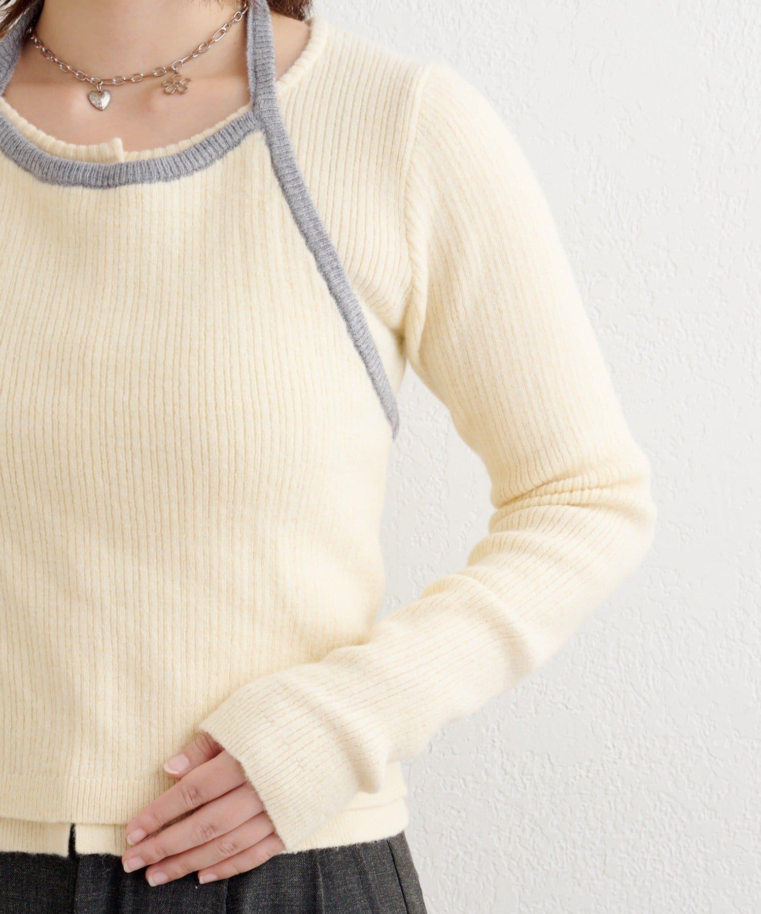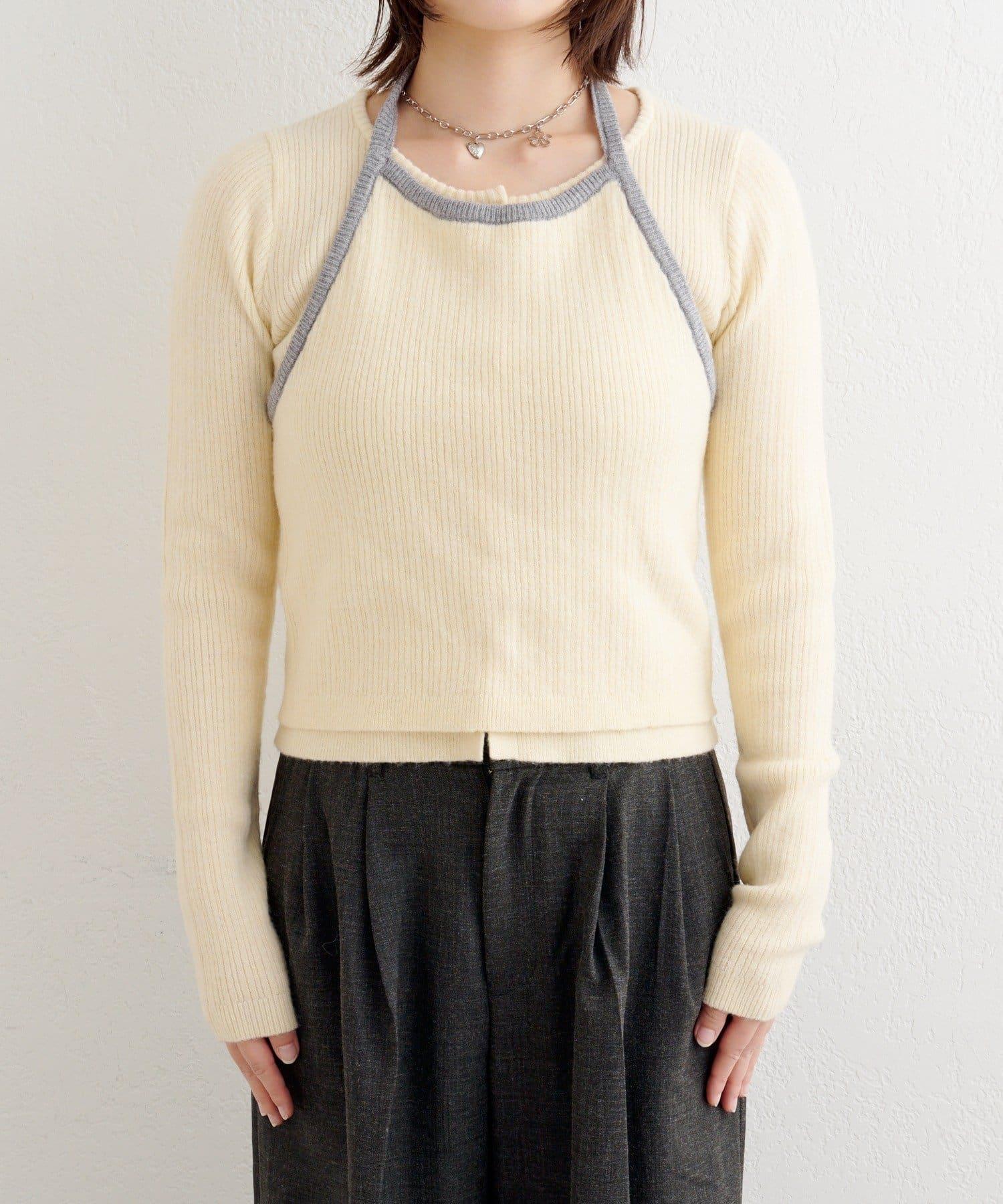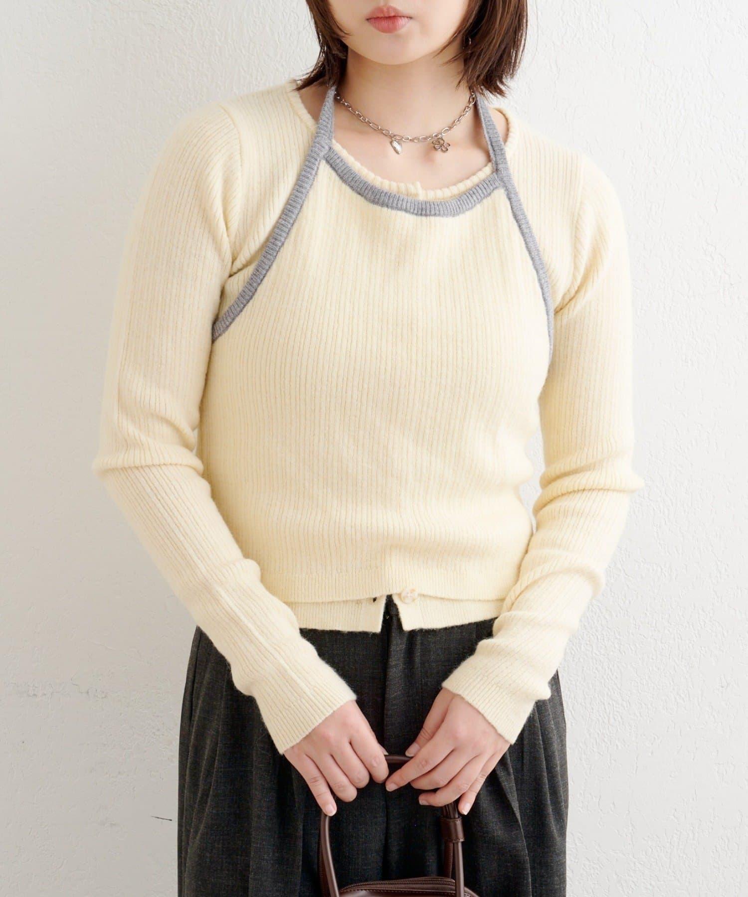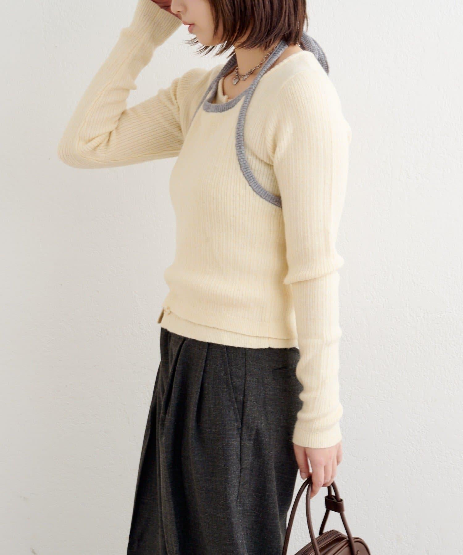 由細密羅紋面料的小巧針織衫和露肩吊帶衫組成的兩件套,只需穿上它就能讓層次感更強。