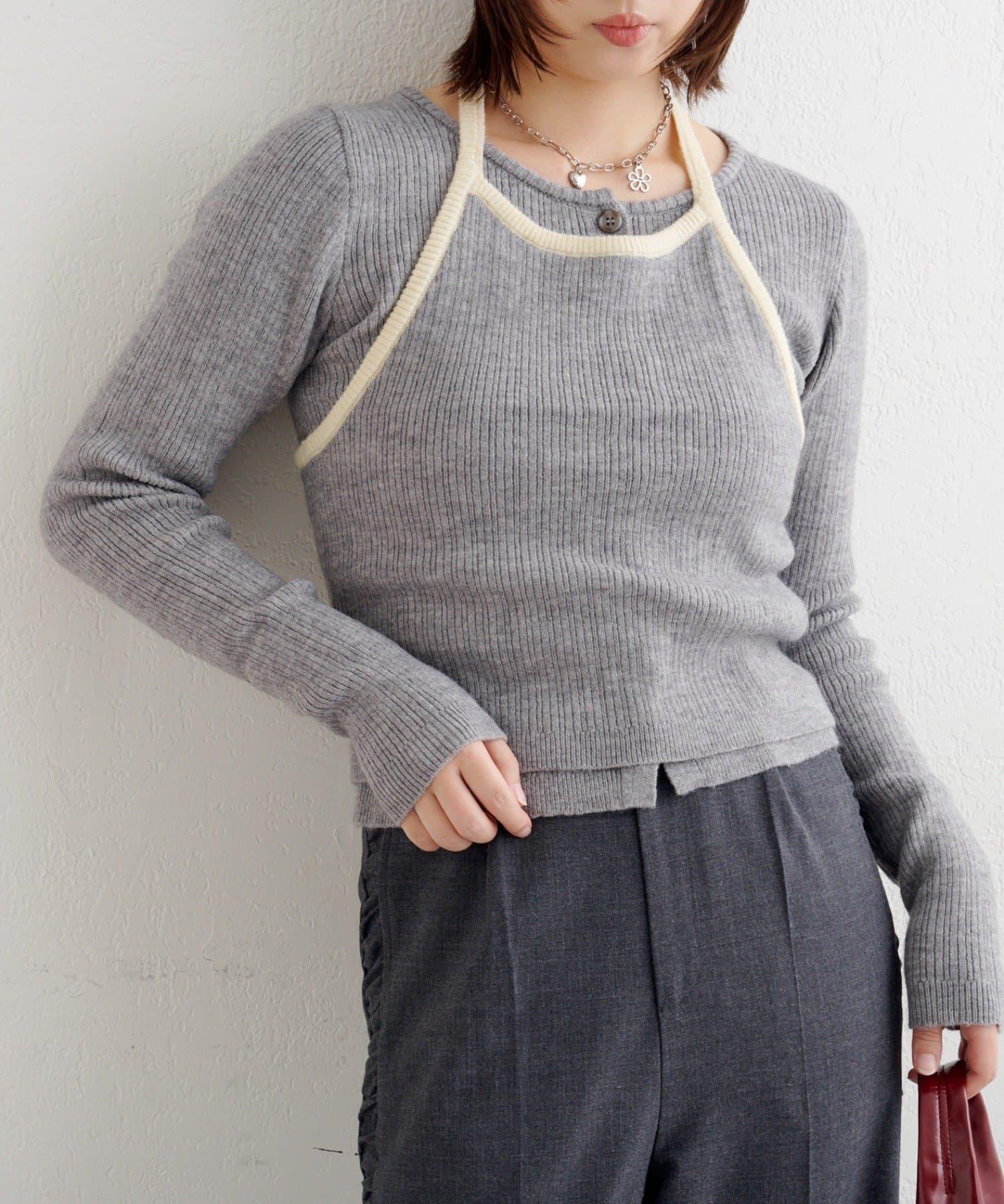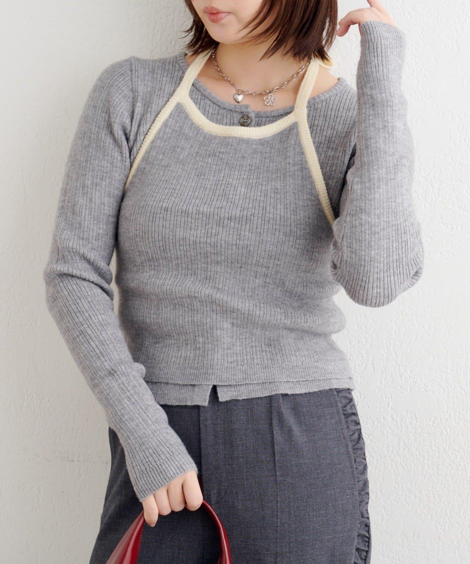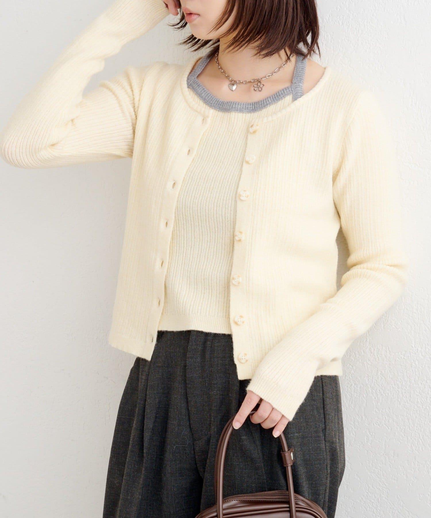 由細密羅紋面料的小巧針織衫和露肩吊帶衫組成的兩件套,只需穿上它就能讓層次感更強。