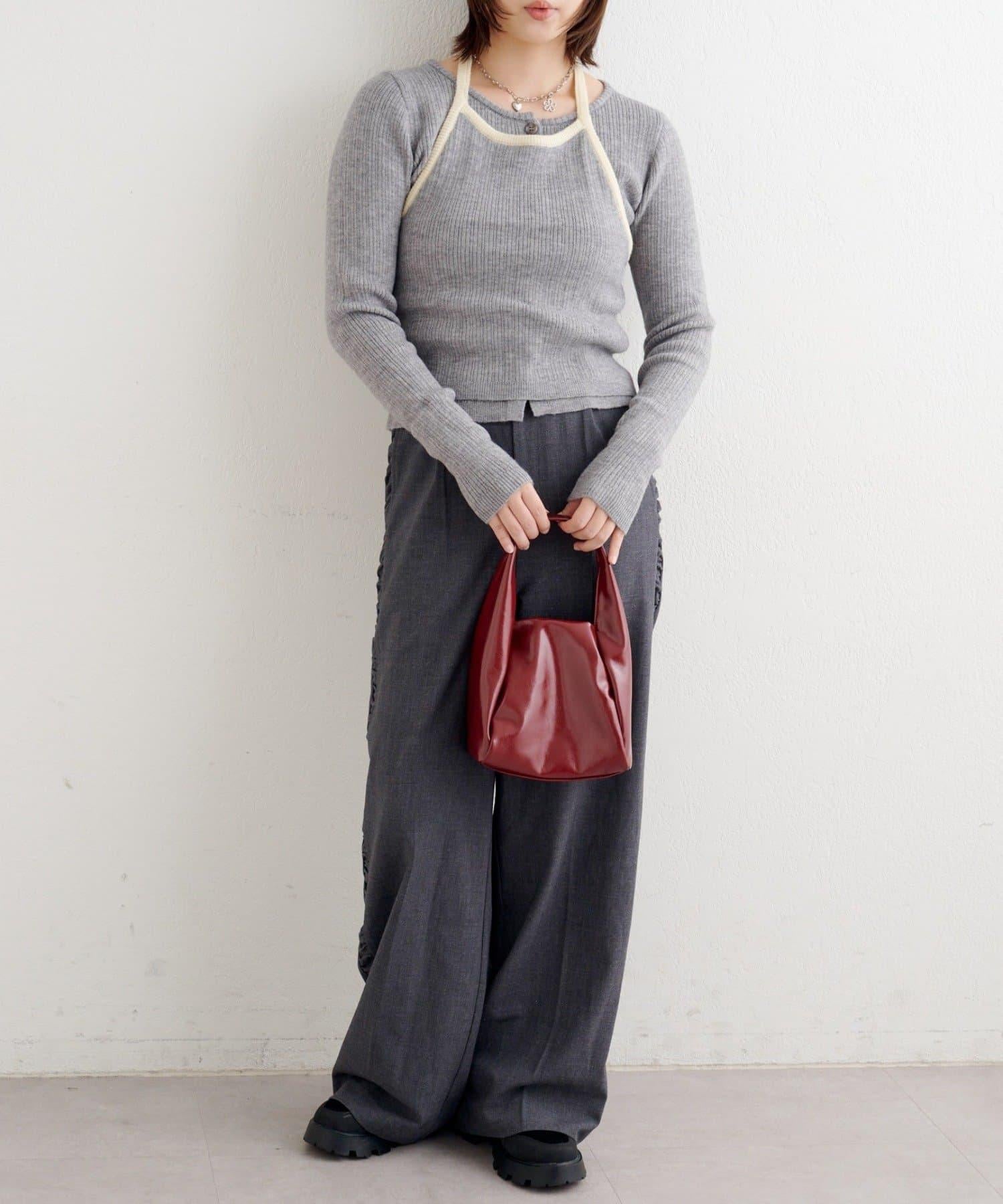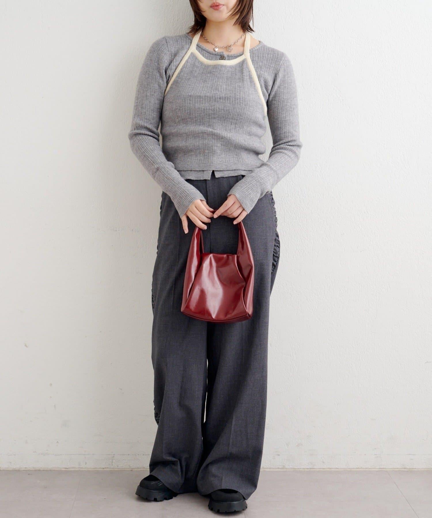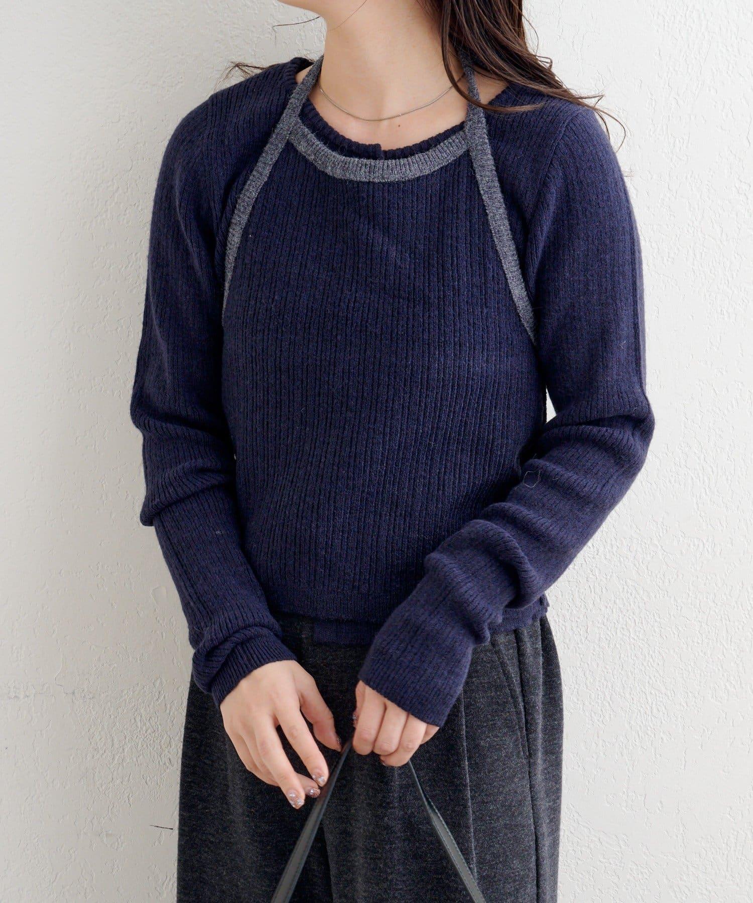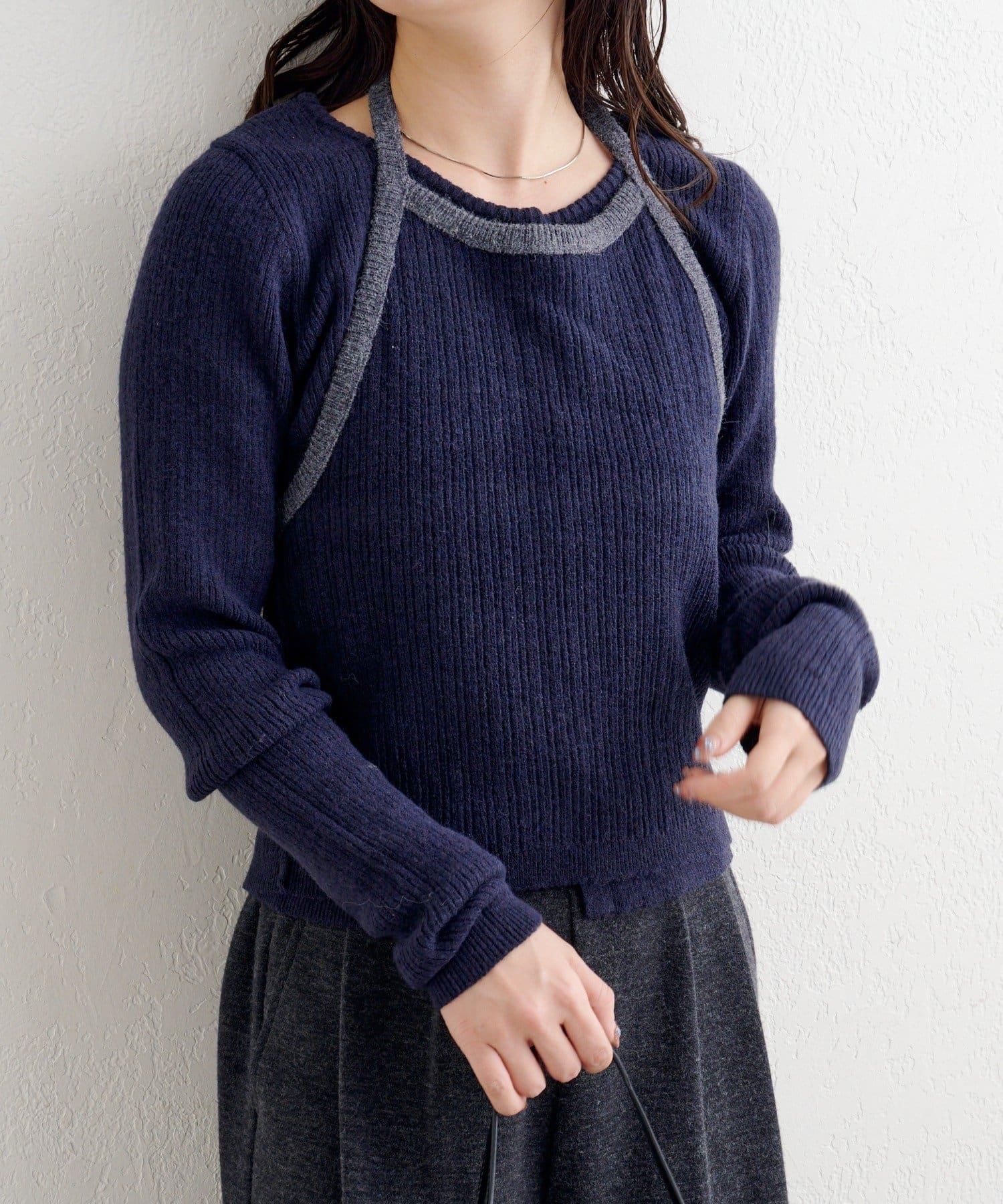 由細密羅紋面料的小巧針織衫和露肩吊帶衫組成的兩件套,只需穿上它就能讓層次感更強。