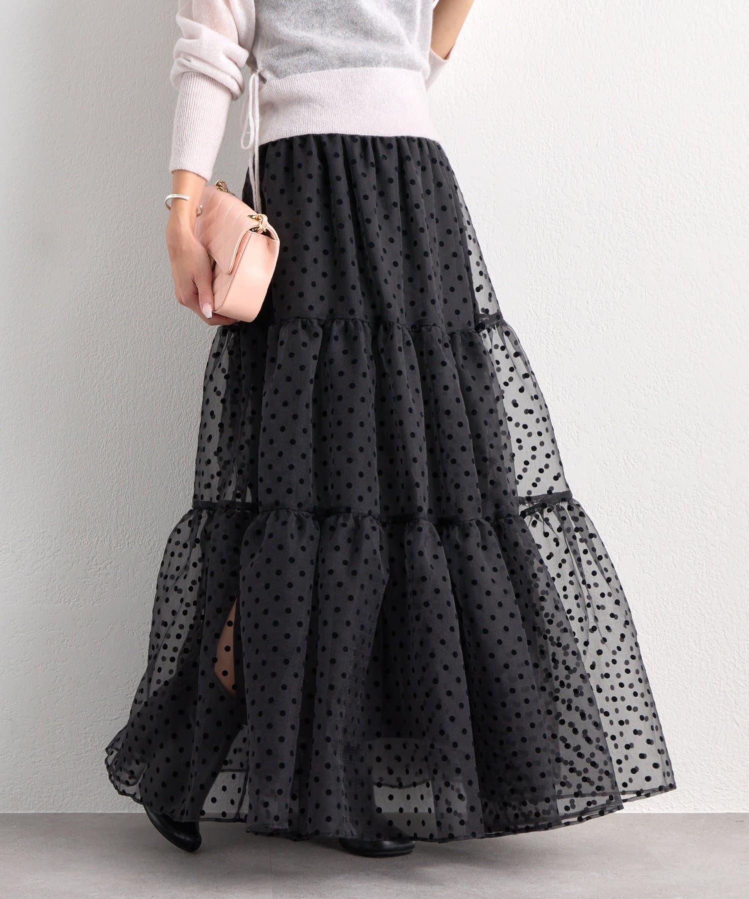 【3尺碼可選】波點植絨層疊半身裙(黑色)