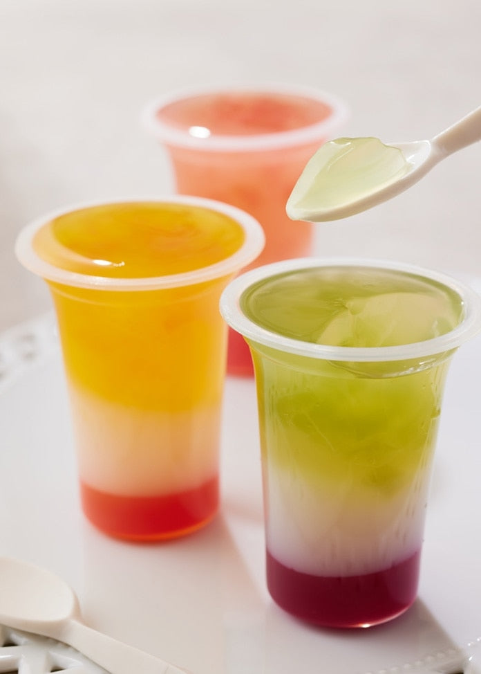 添加劑 膠凝劑(多糖增稠劑),pH值調節劑,乳酸Ca,調味劑,抗氧化劑(V.C),酸味劑,色素(花青素,類胡蘿蔔素,梔子花,紅酵母)穩定劑(加工澱粉,果膠) 。