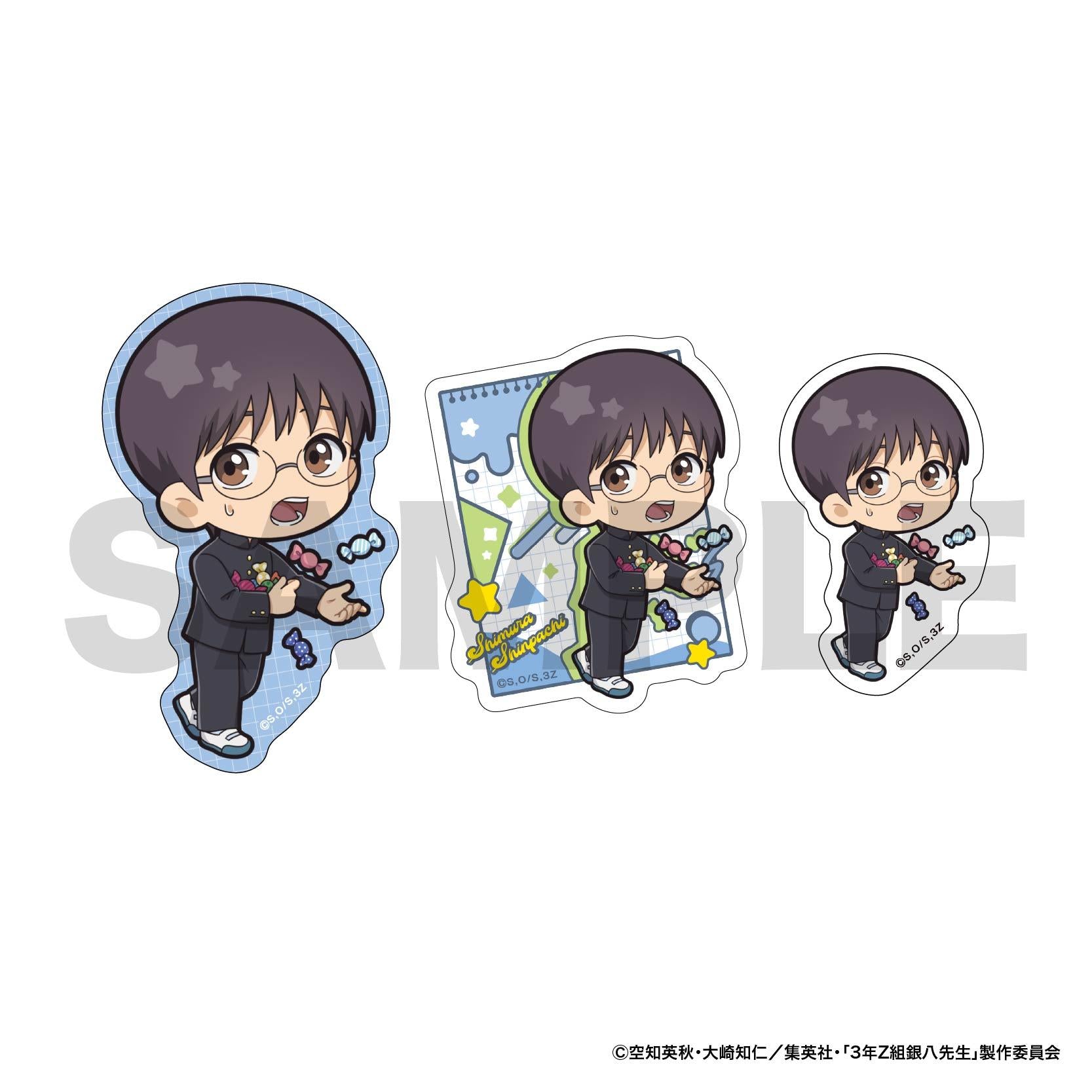 一套三張貼紙,印有島村新八的微型人物插圖。 本產品推薦用於貼在手機殼或電腦上。 另外,請注意獨特的糖果!