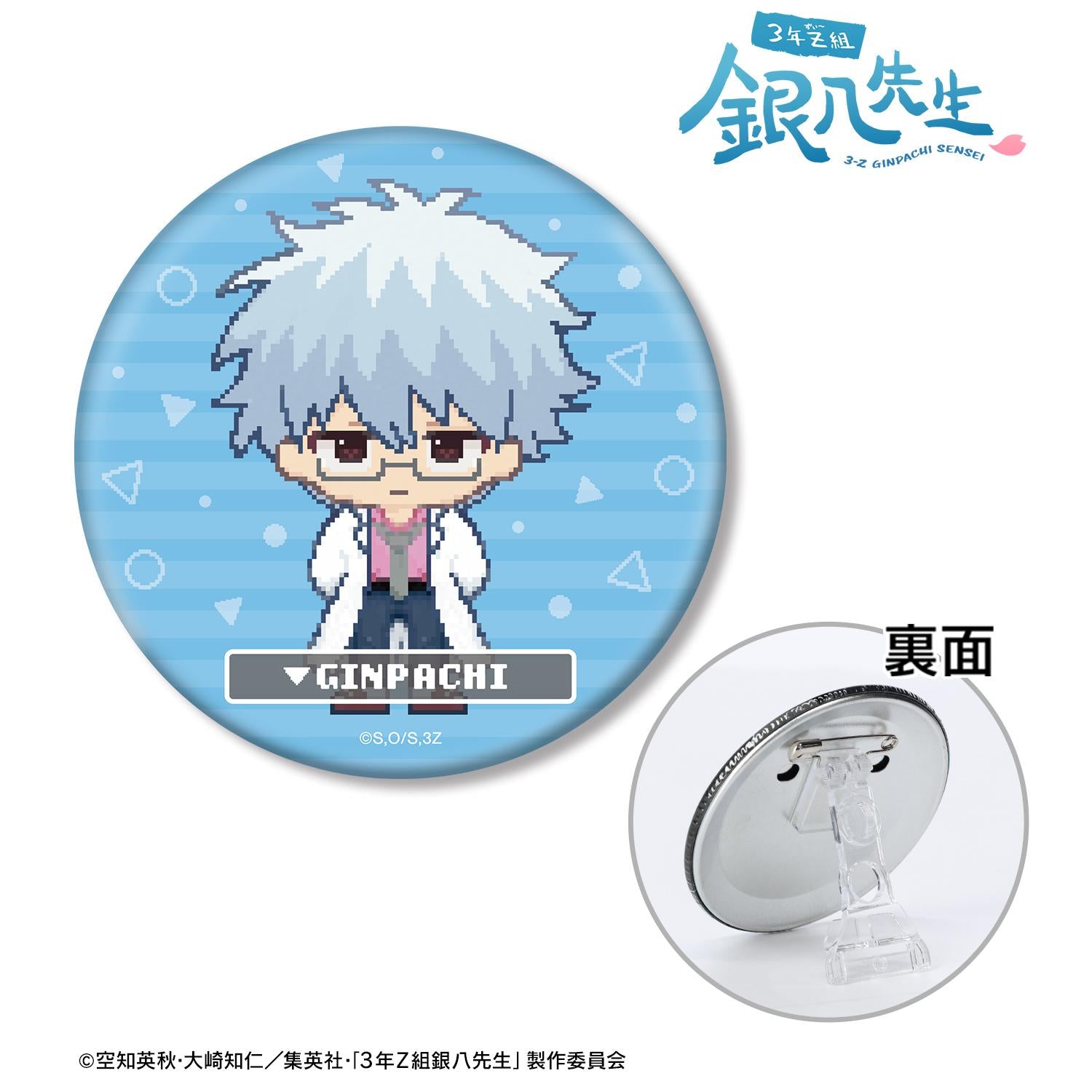 坂田銀八以圓點插圖的形式表現出來,做成三向罐頭徽章,非常迷人。