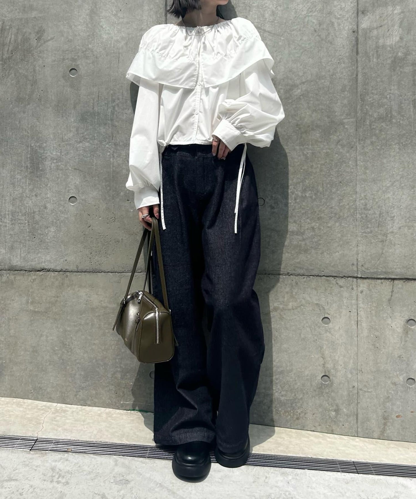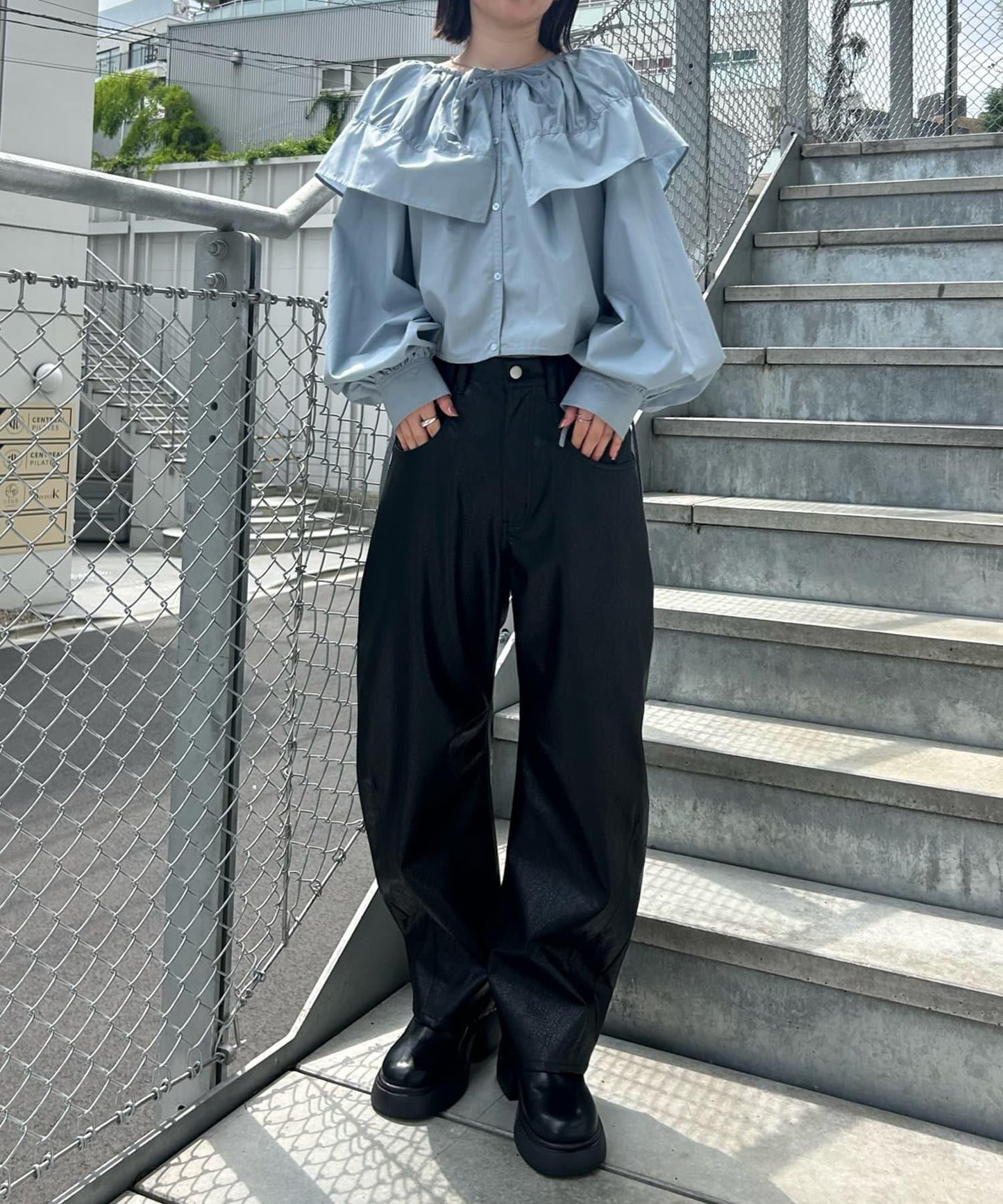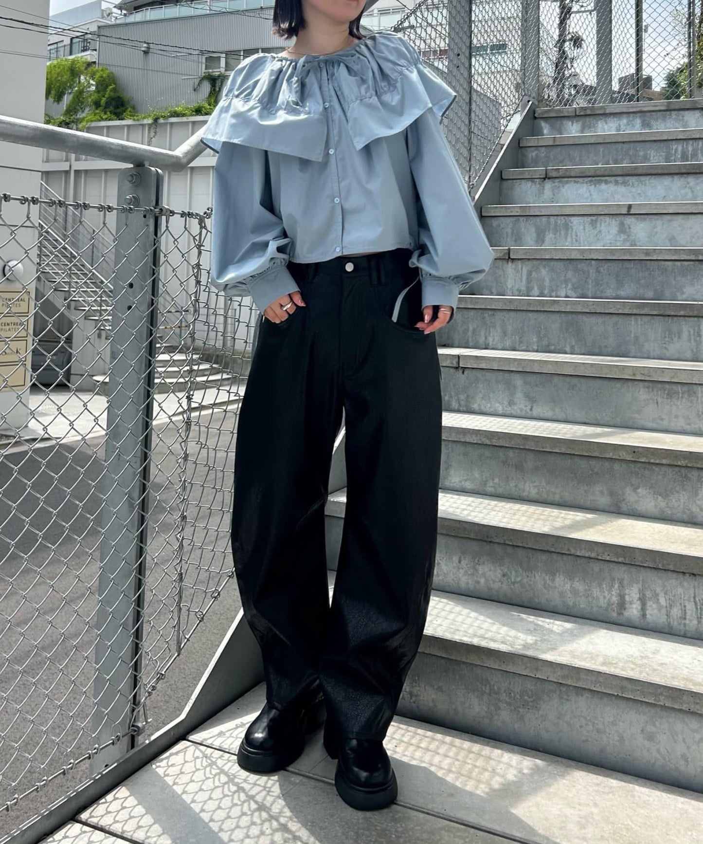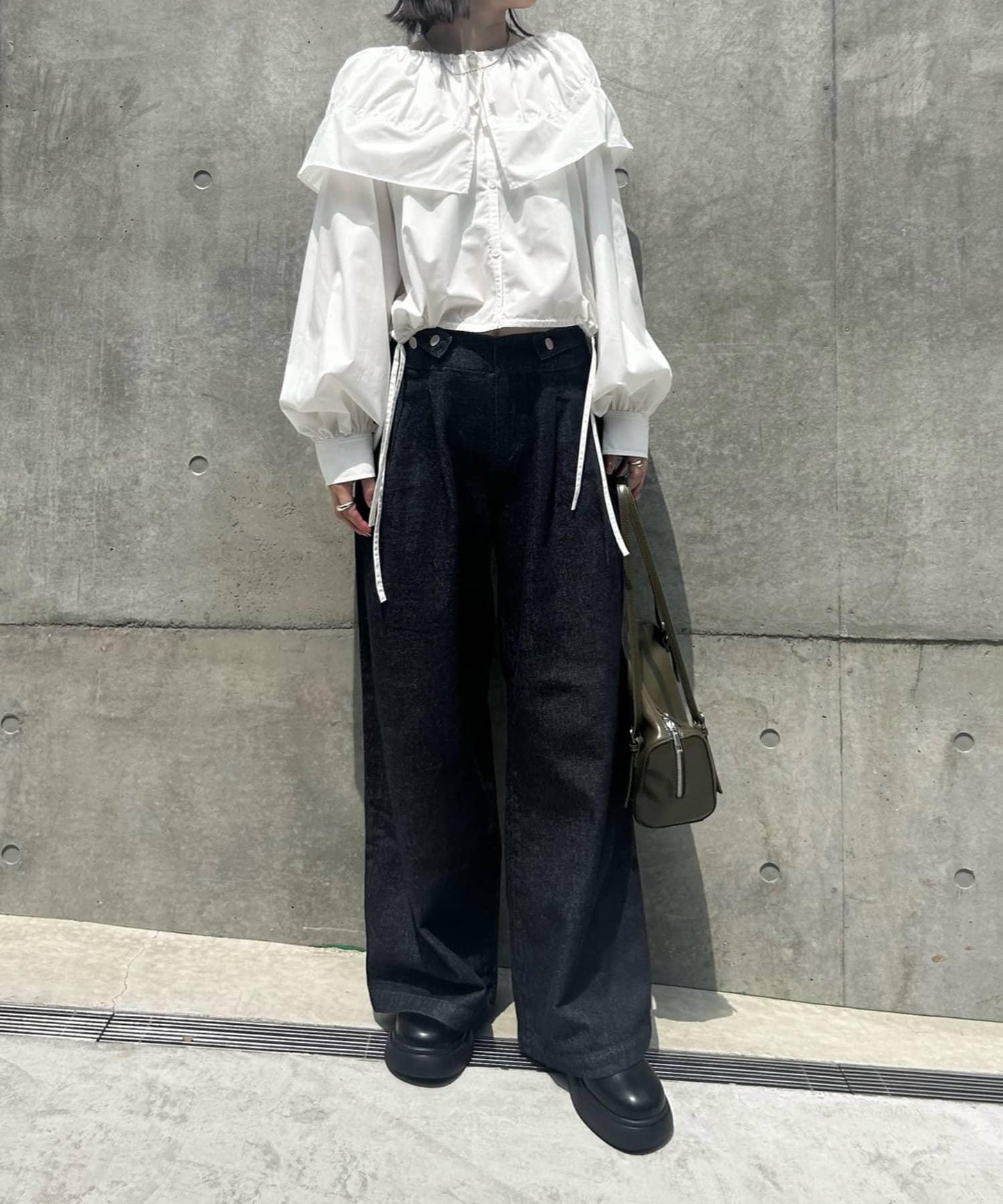 由於這是一款有設計感的上衣,建議搭配簡單的下裝!
