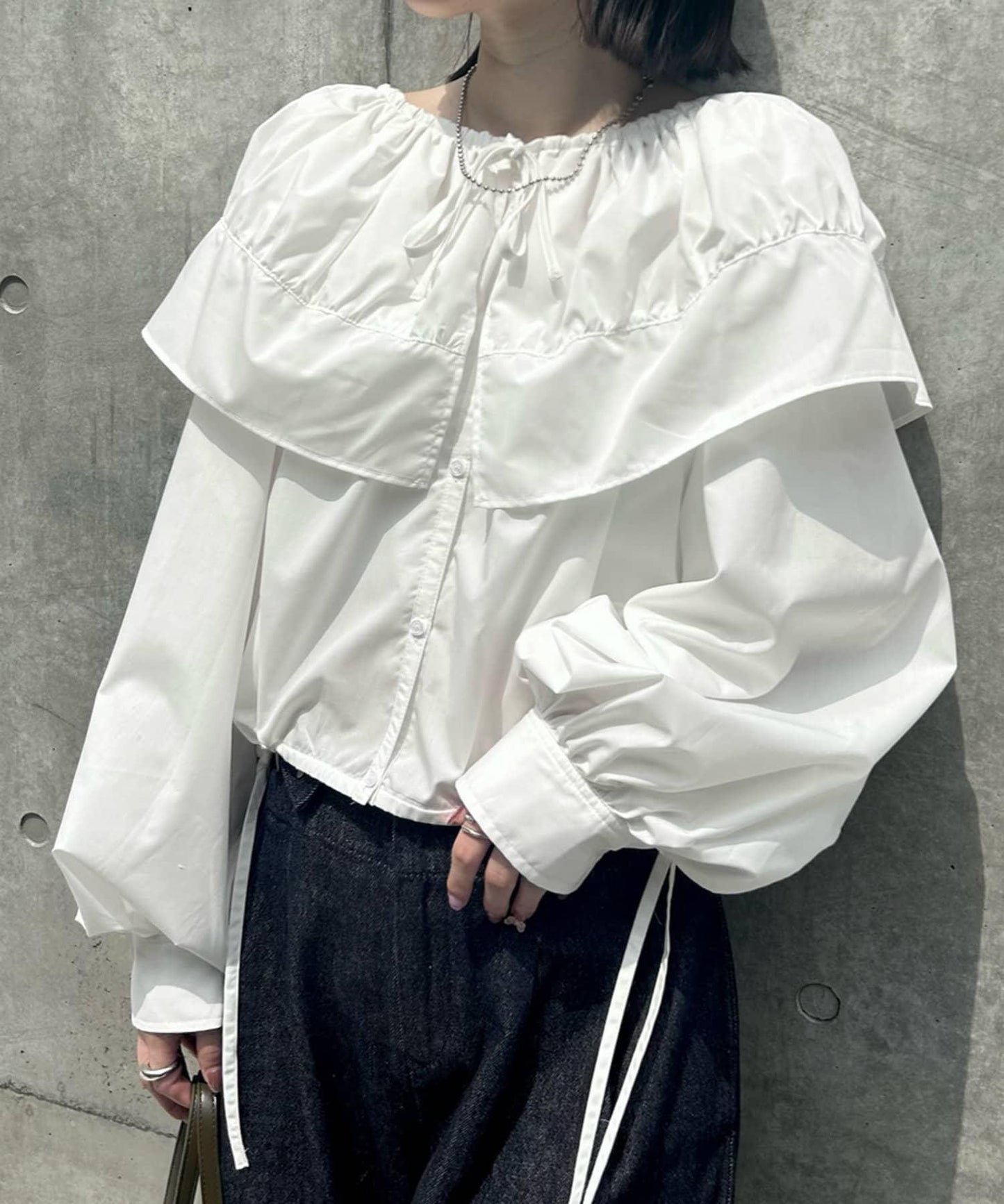 肩部可愛的荷葉邊和緞帶--這件上衣是全場的焦點!