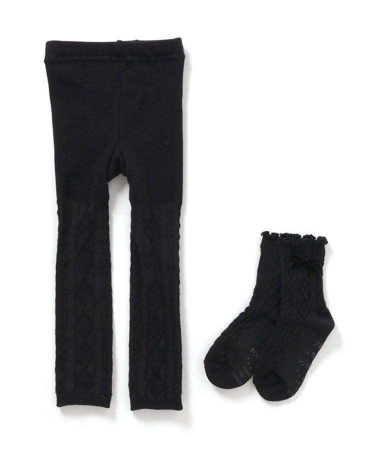 帶有優雅羅紋設計的 3 向緊身褲*、緊身褲和帶絲帶的襪子。