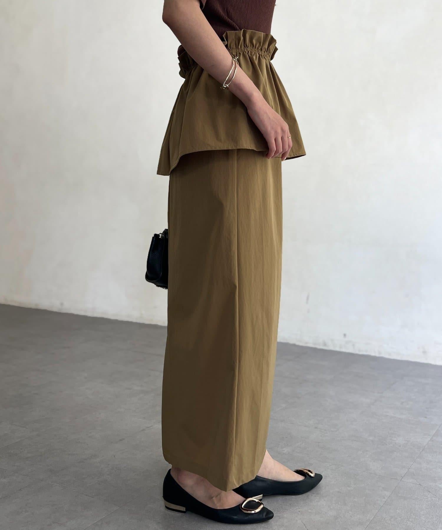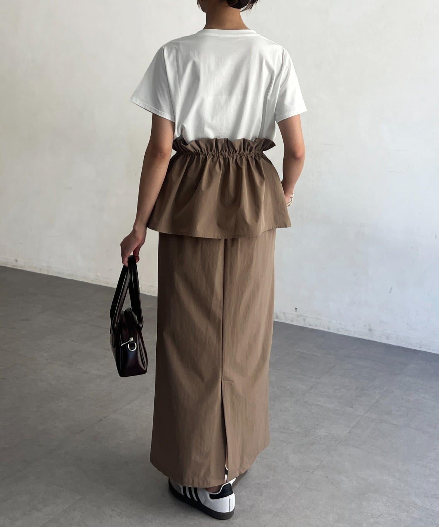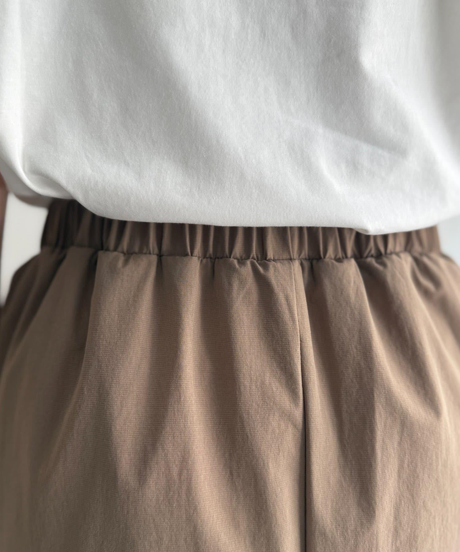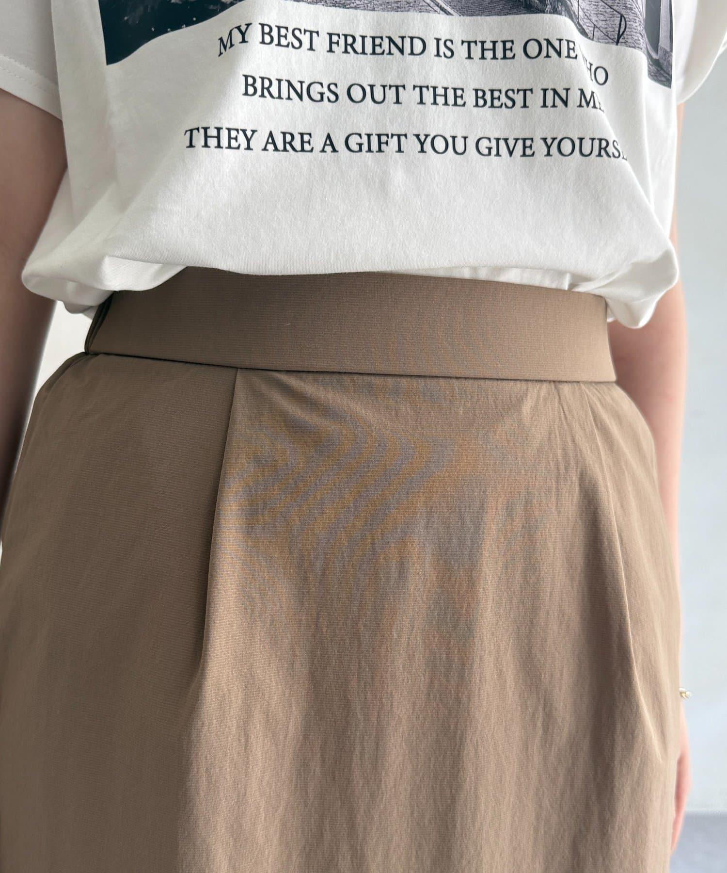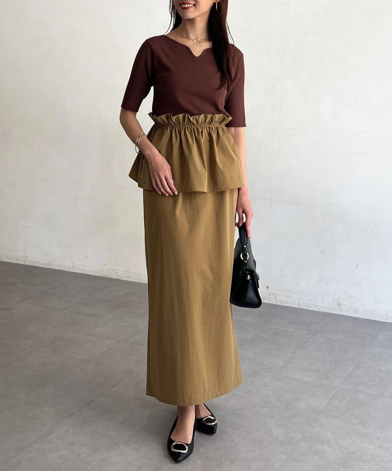 前部收腰的窄裙後腰處有鬆緊帶和袋口,穿起來輕鬆自如。