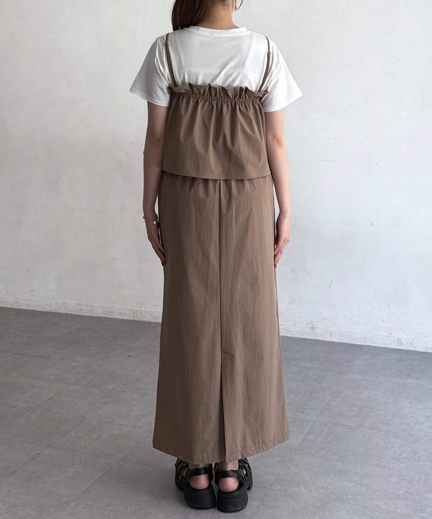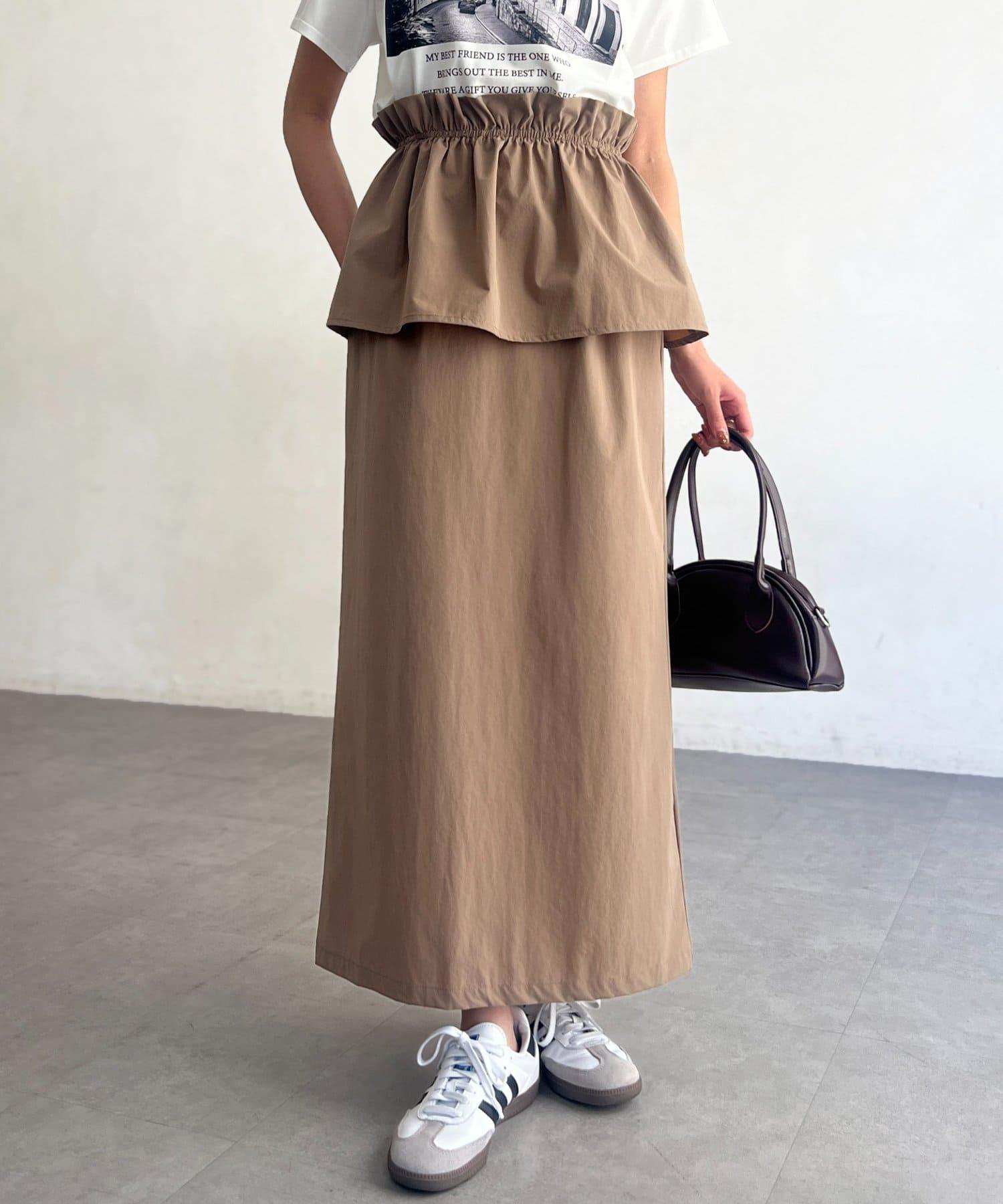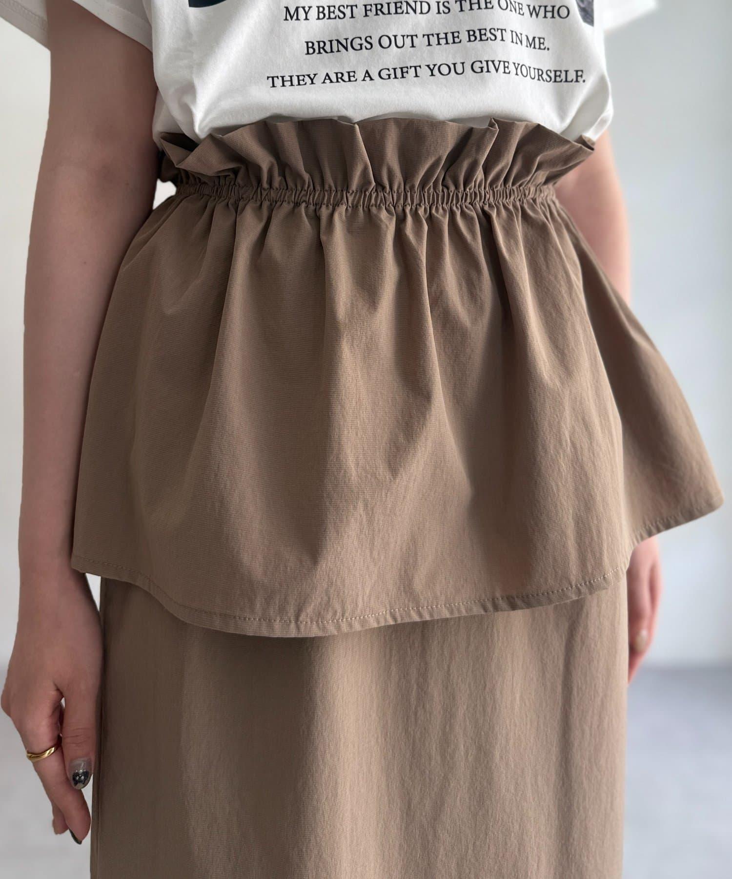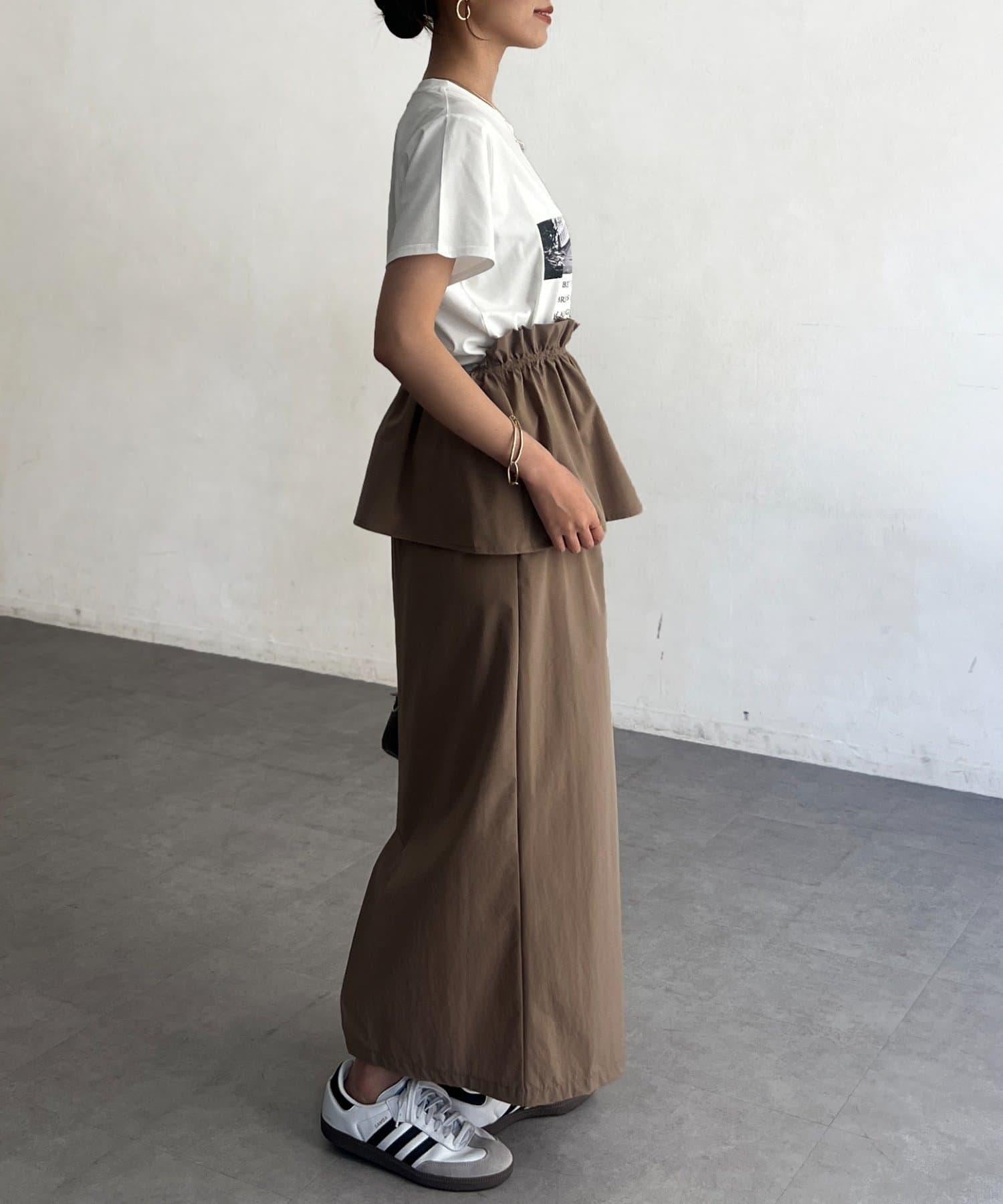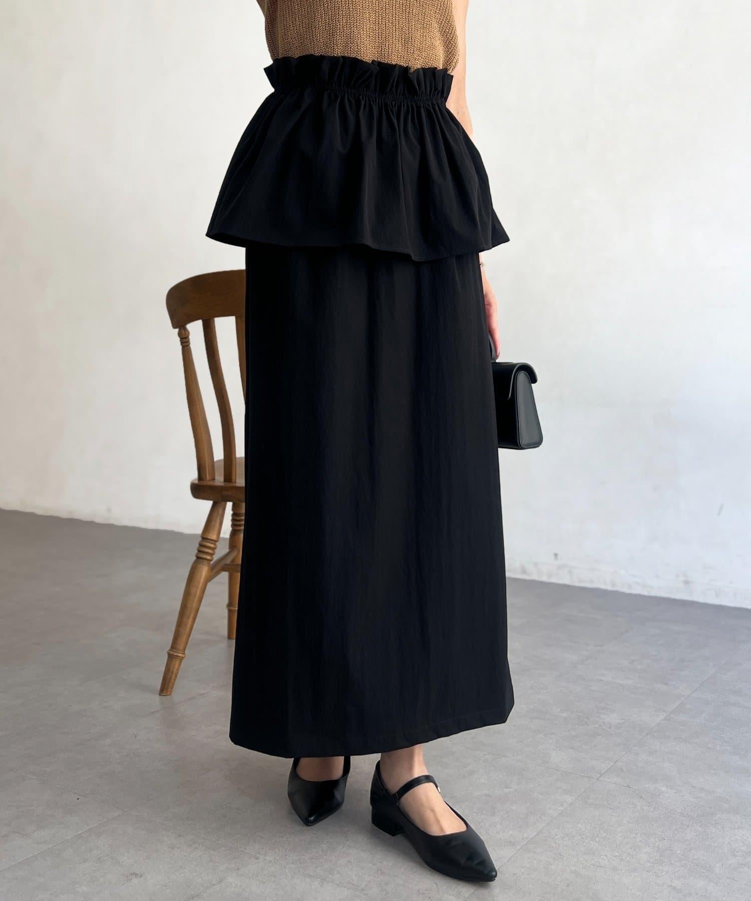 前部收腰的窄裙後腰處有鬆緊帶和袋口,穿起來輕鬆自如。
