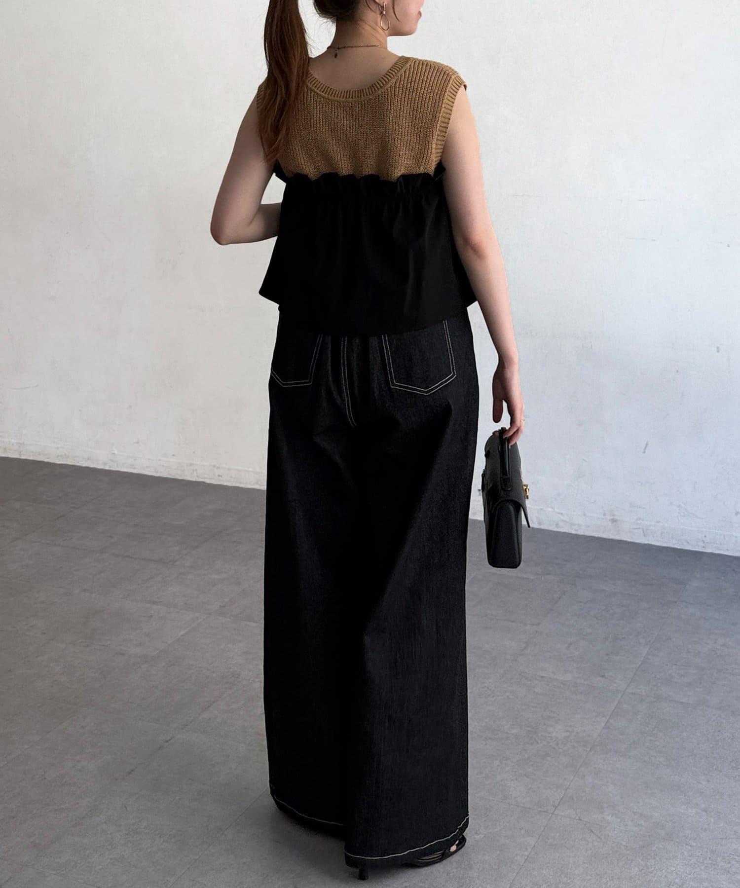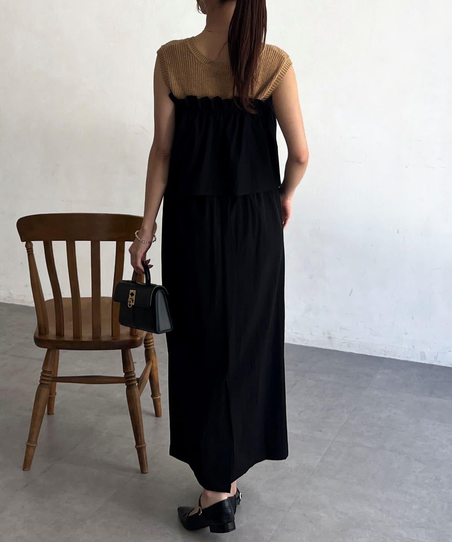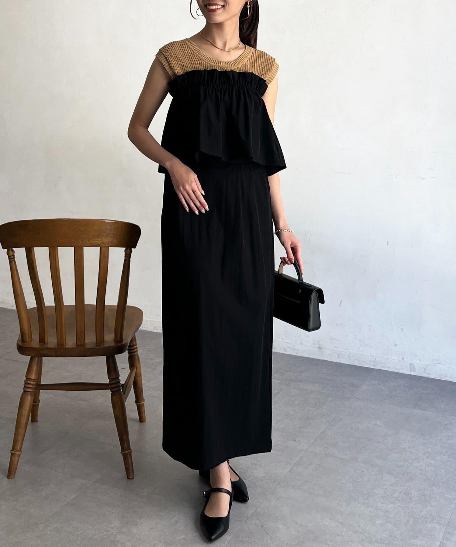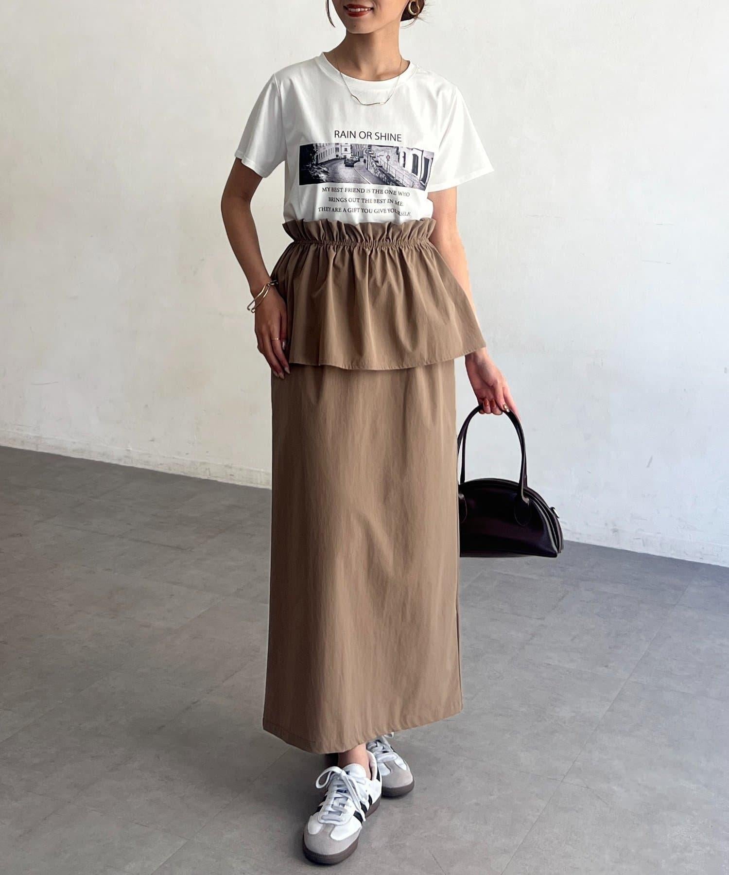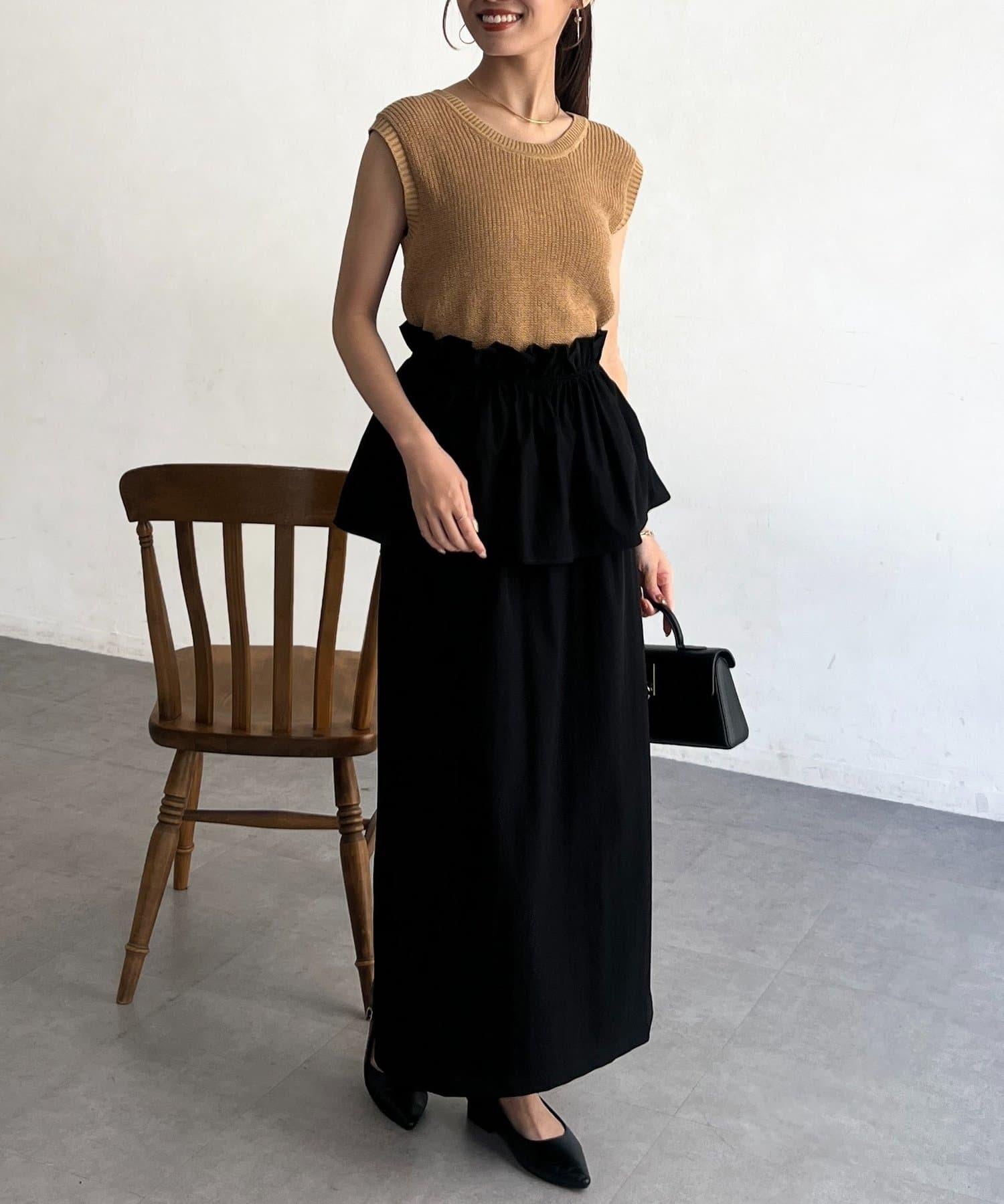 前部收腰的窄裙後腰處有鬆緊帶和袋口,穿起來輕鬆自如。