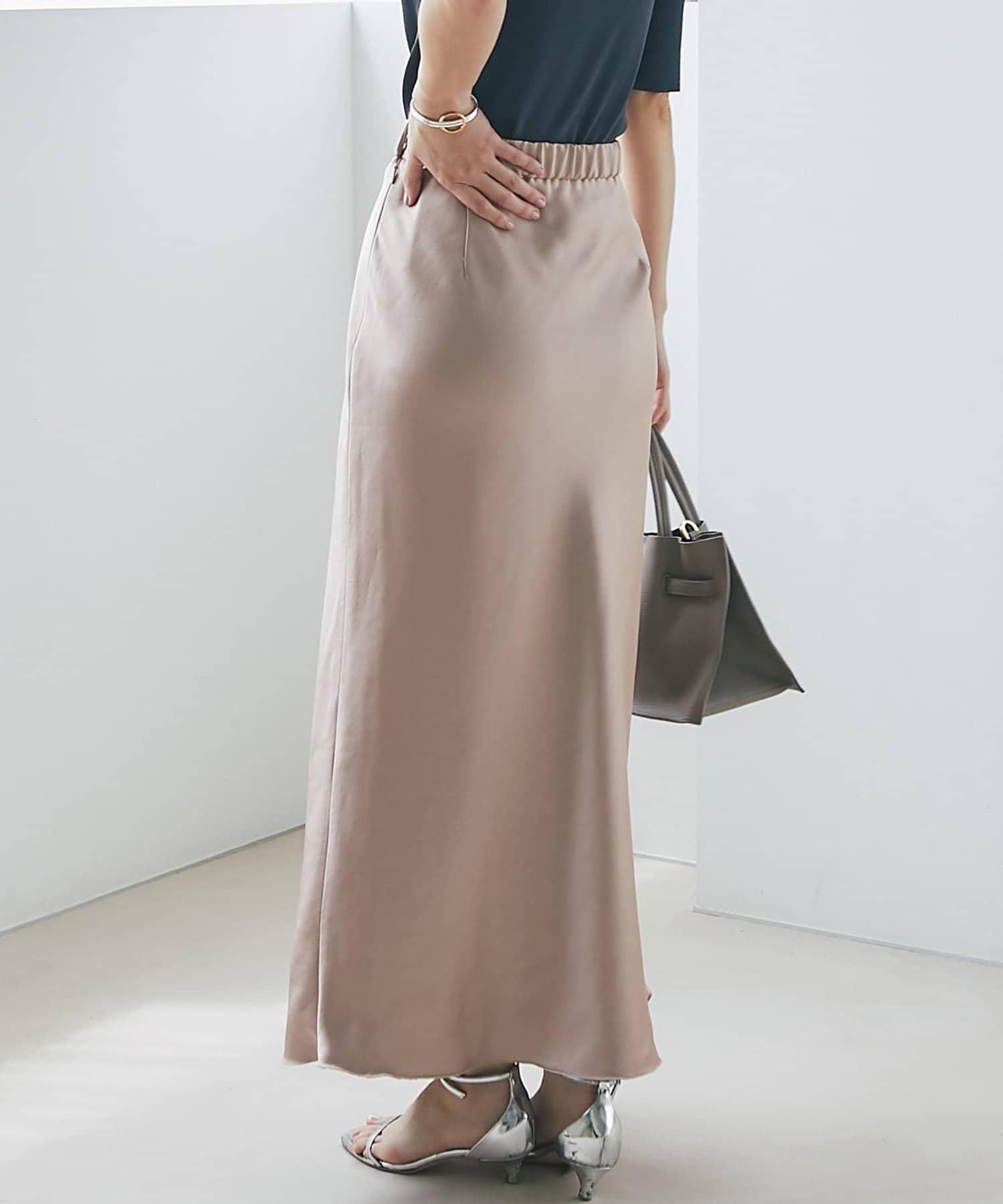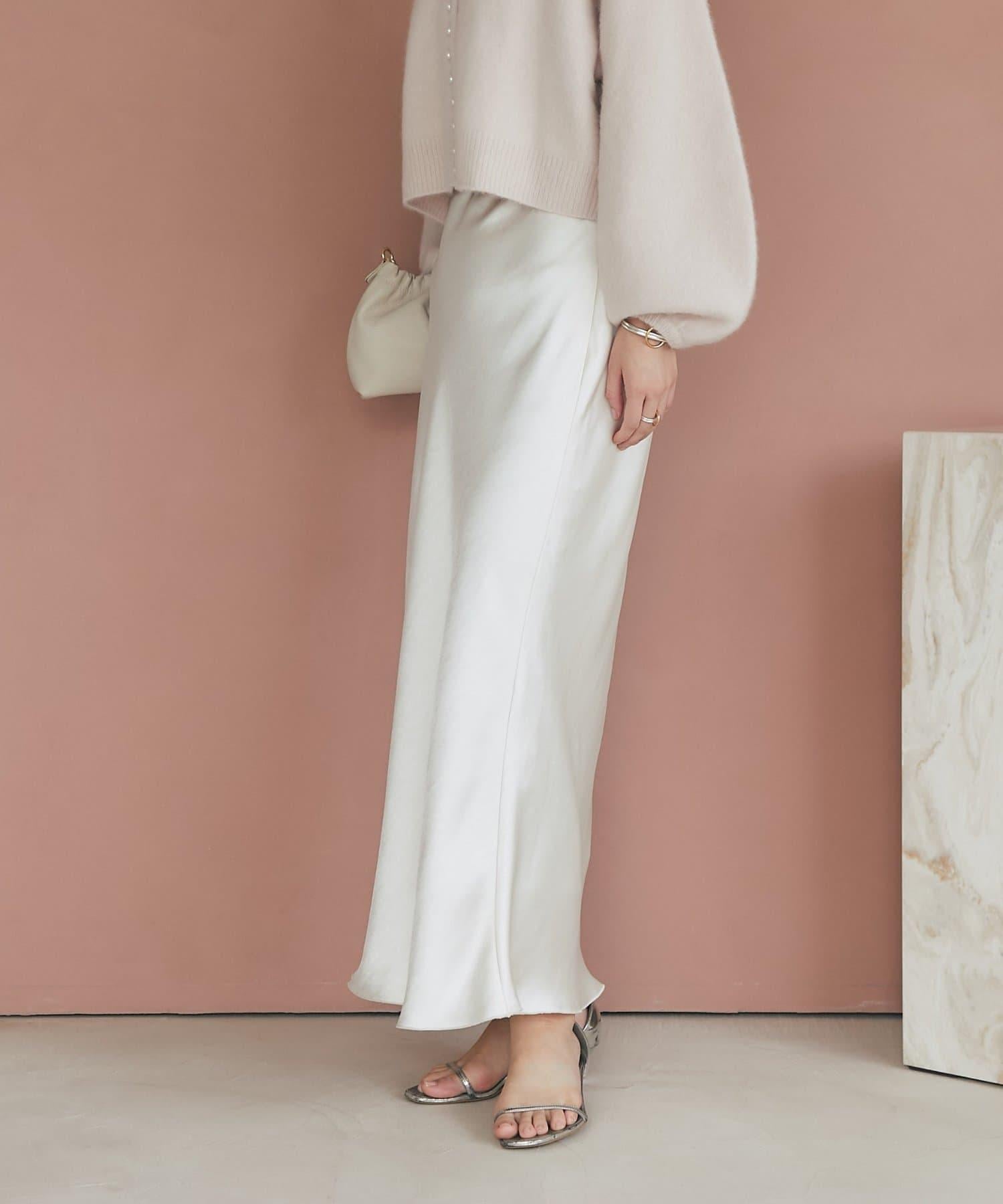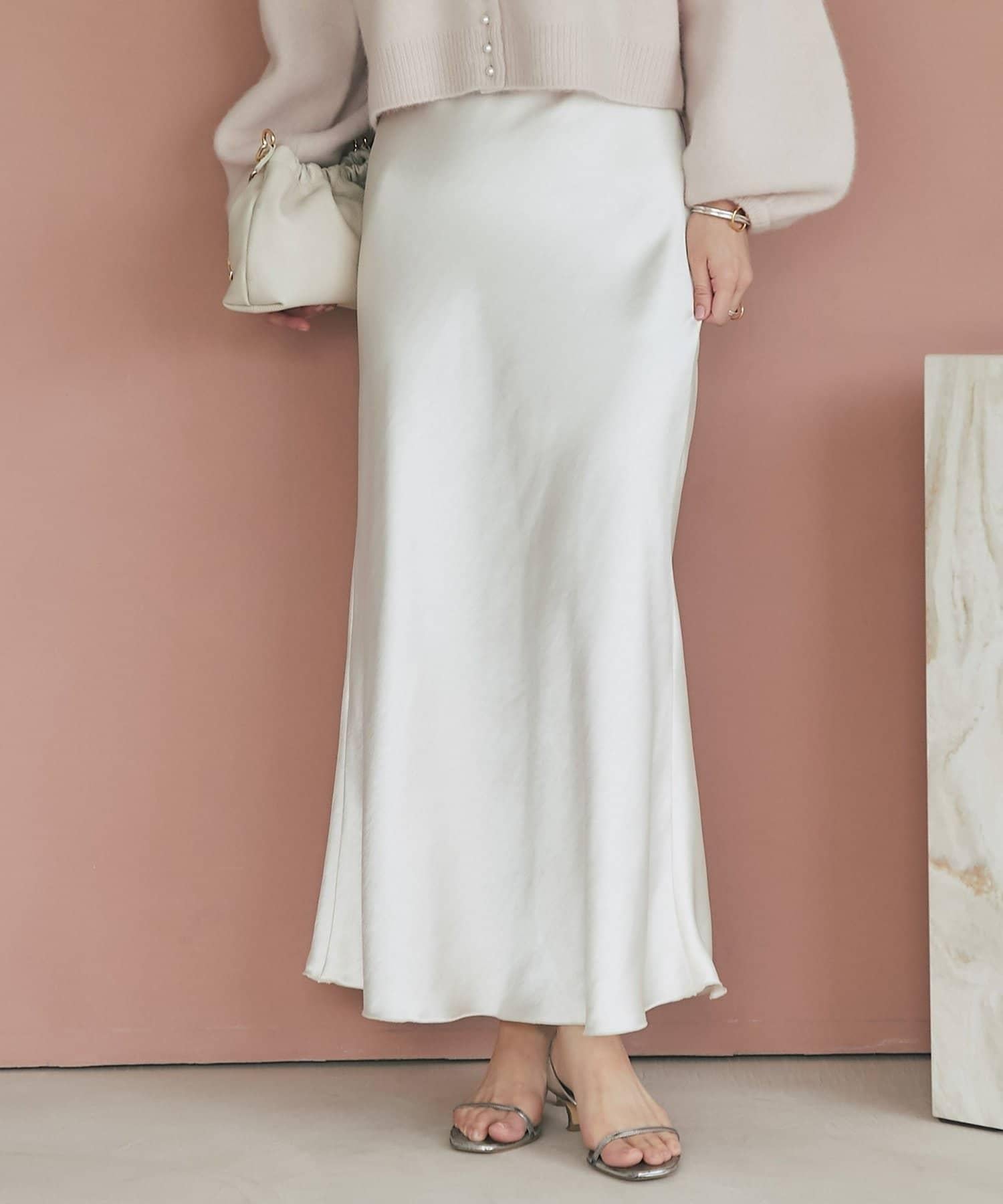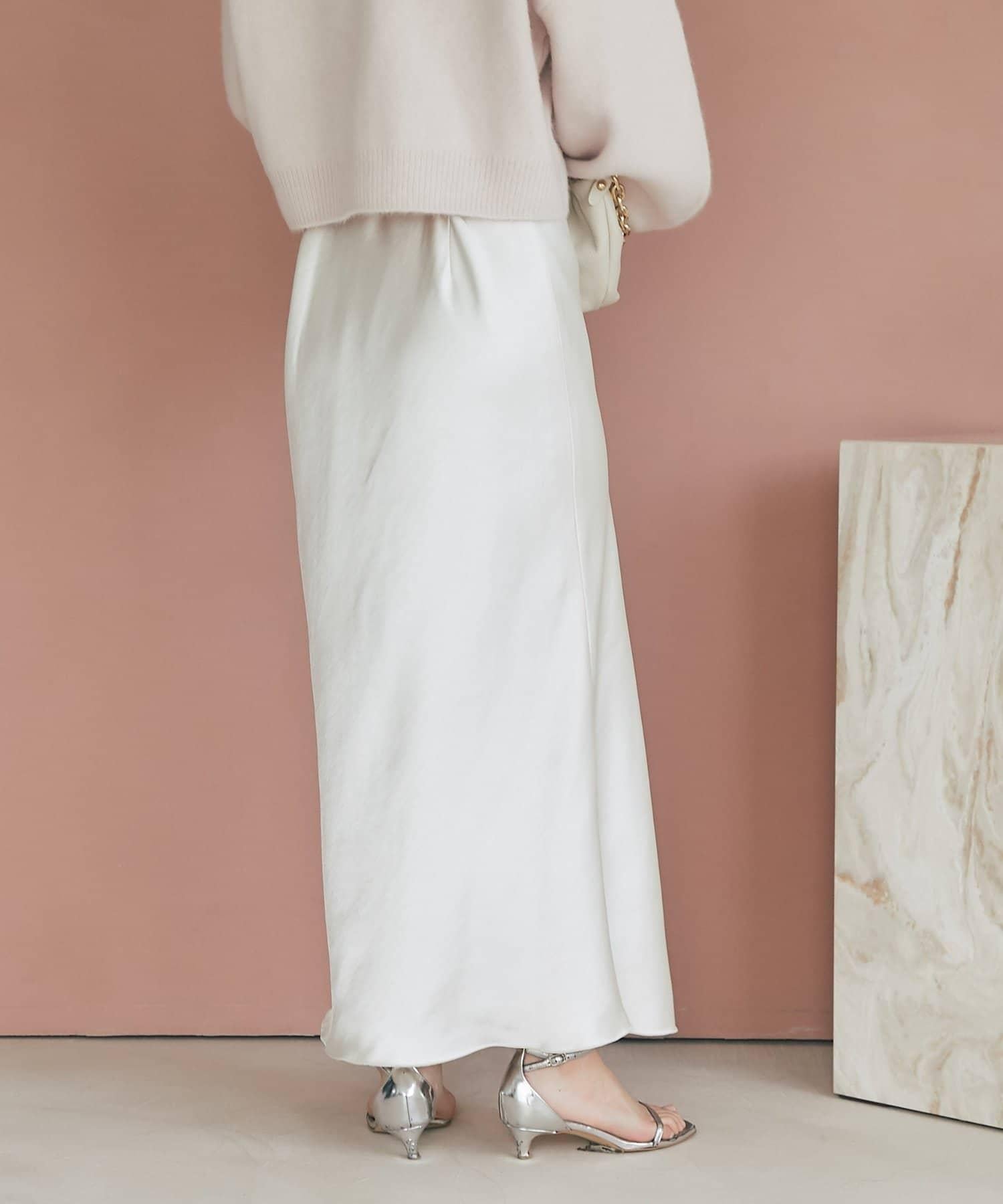 這款緞面裙具有優雅的光澤和簡潔柔美的輪廓。