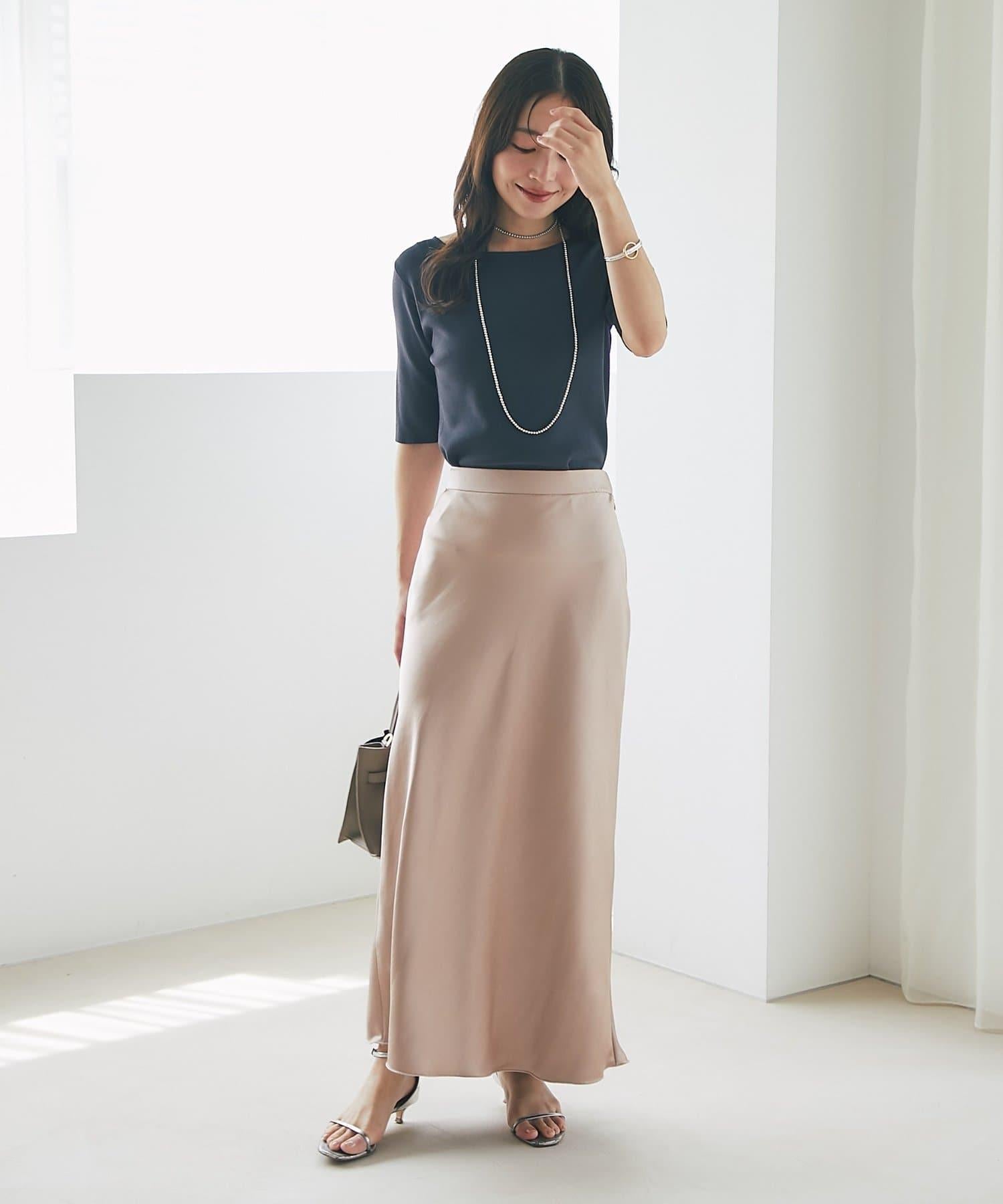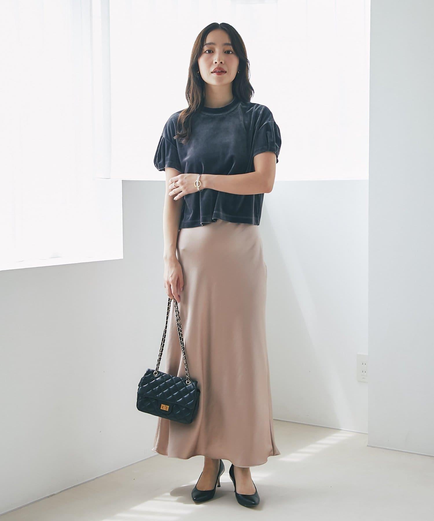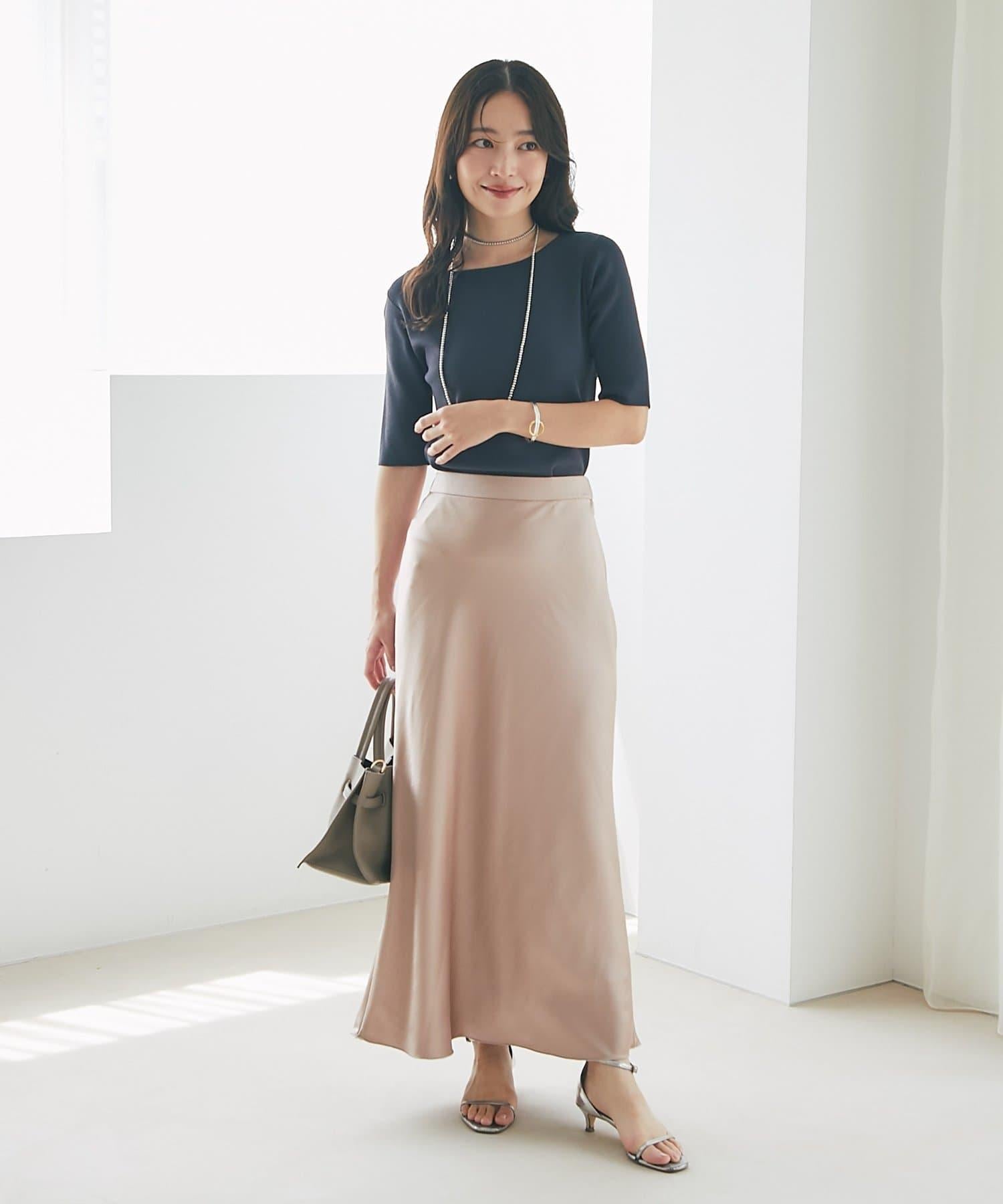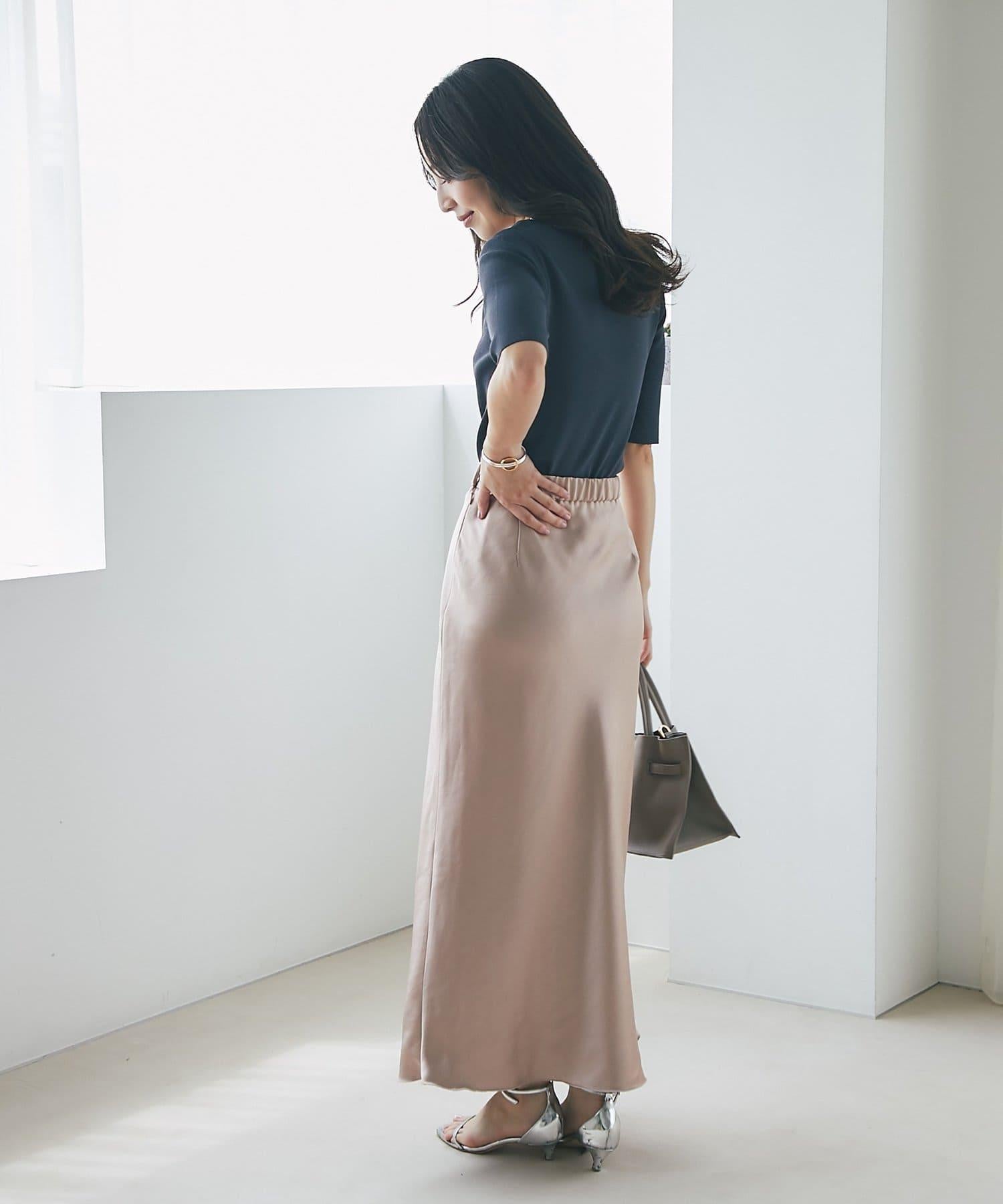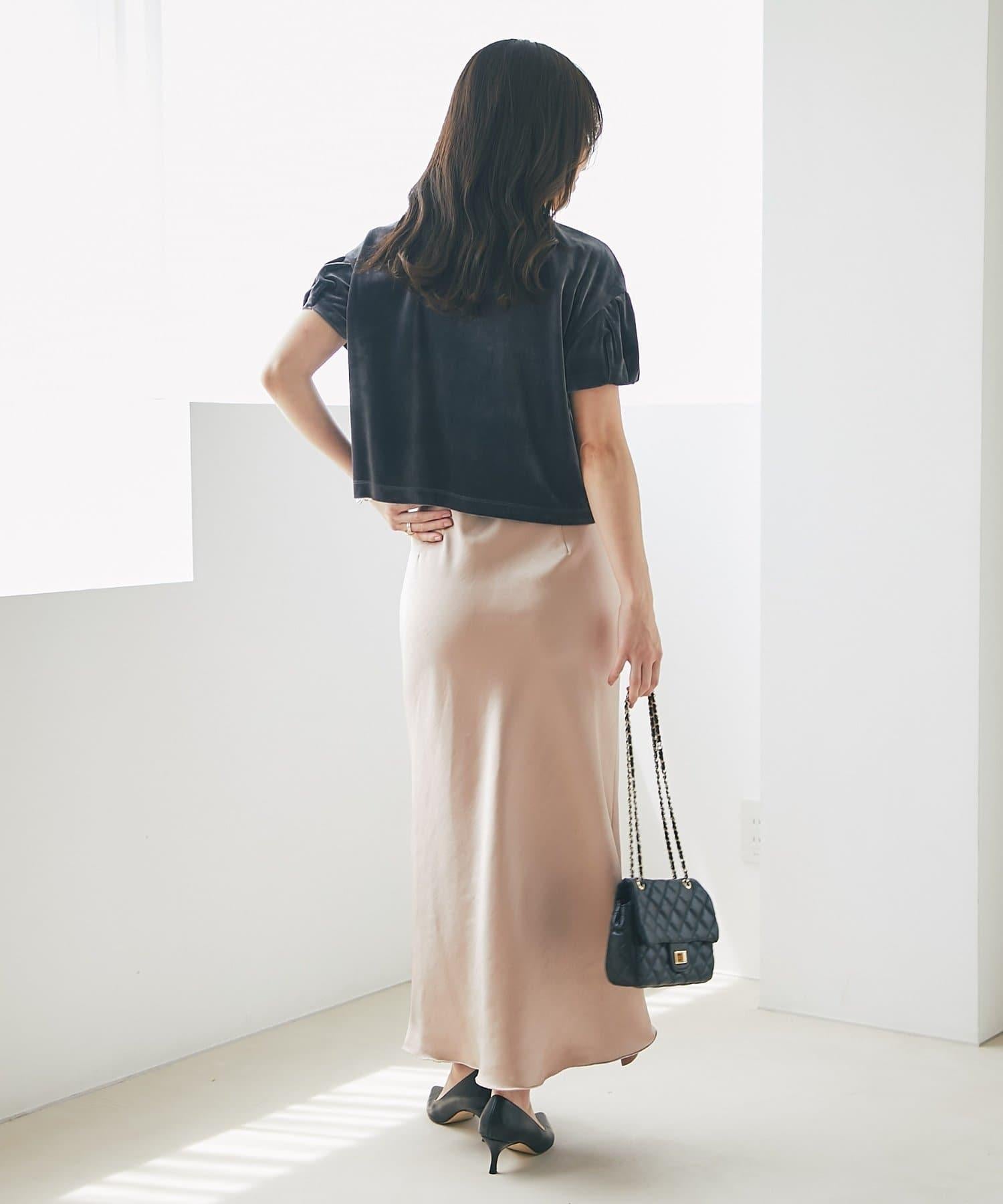 這款緞面裙具有優雅的光澤和簡潔柔美的輪廓。