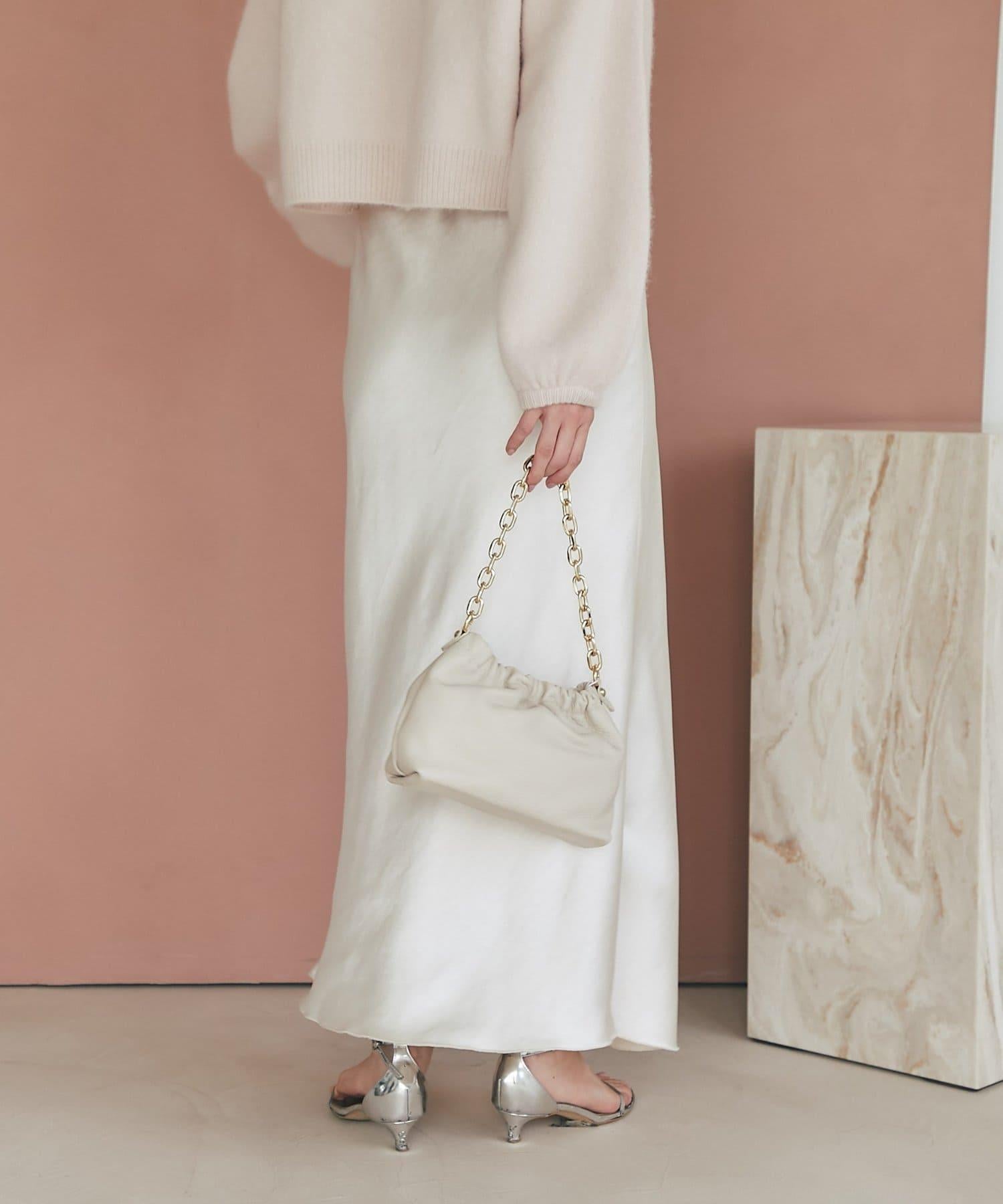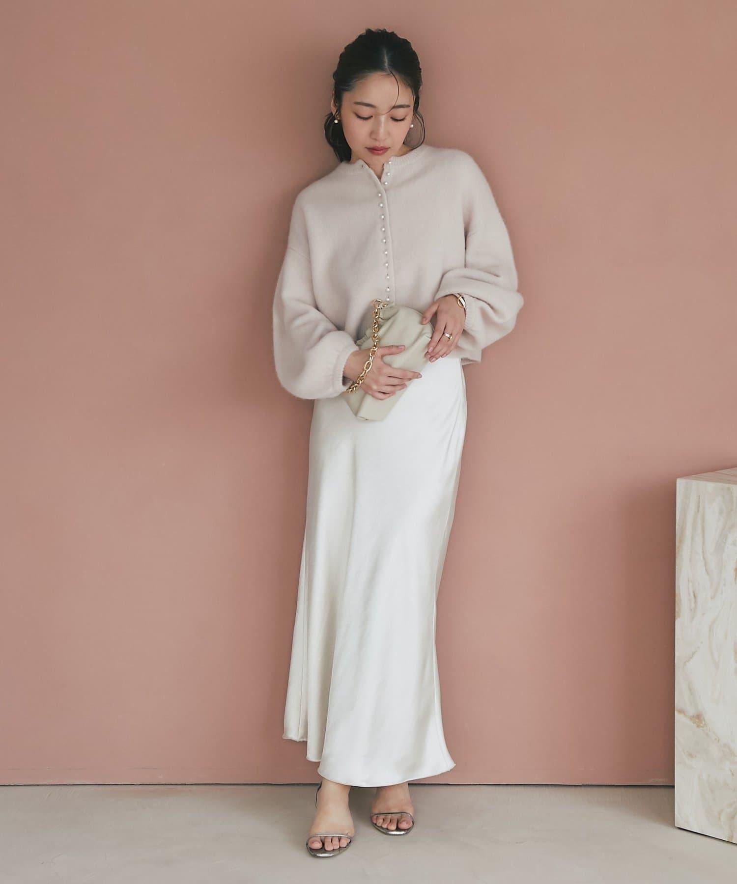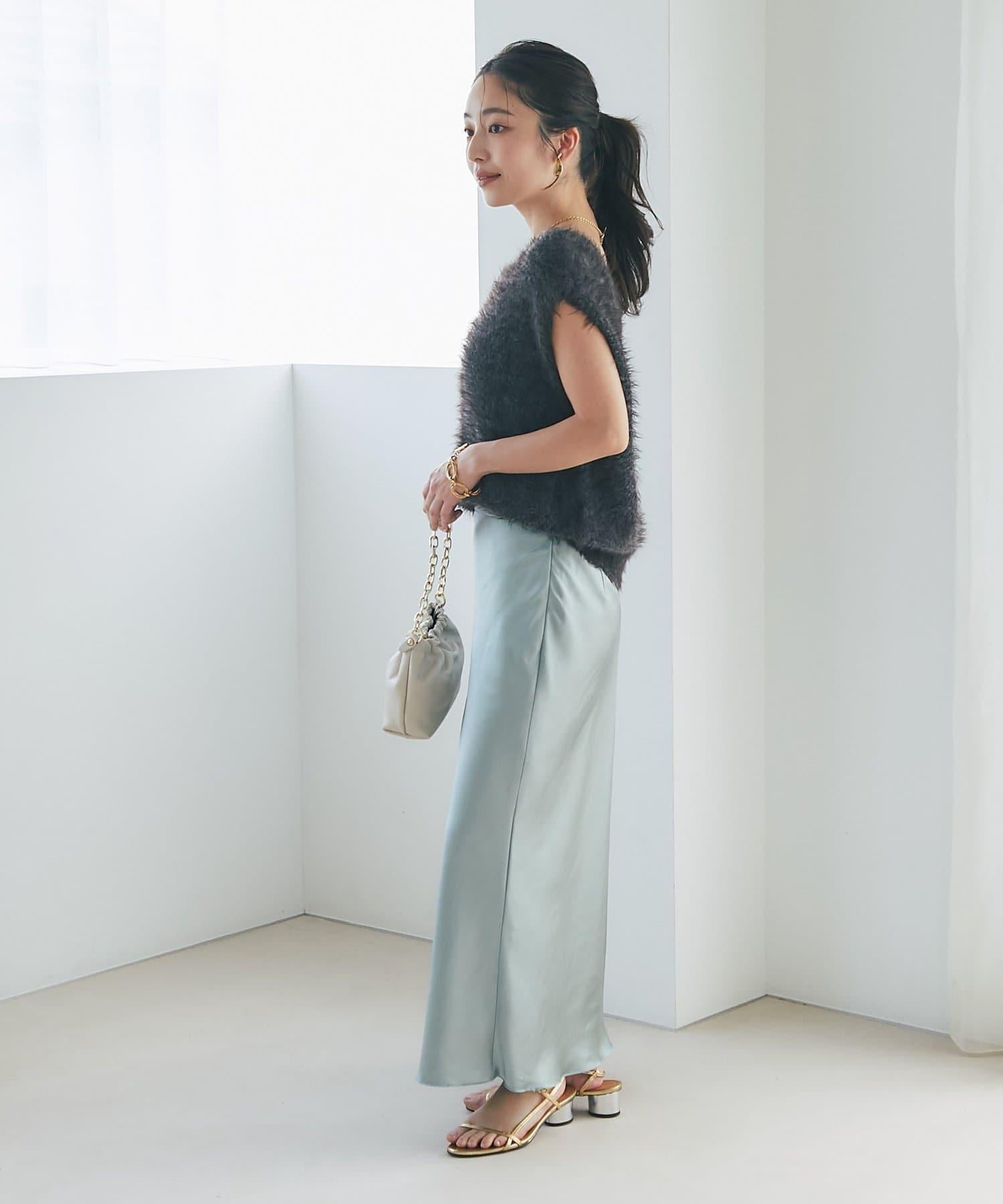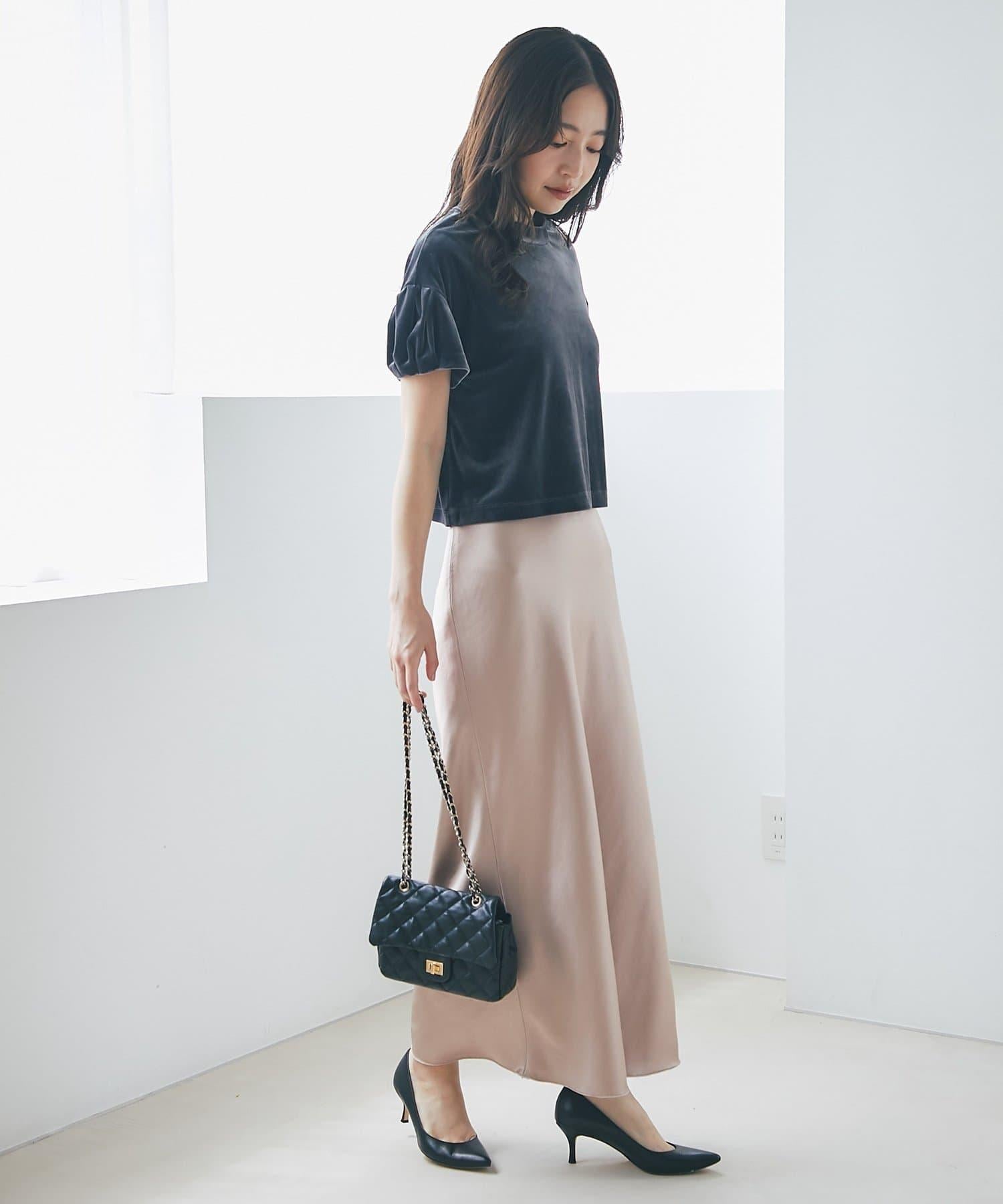 這款緞面裙具有優雅的光澤和簡潔柔美的輪廓。