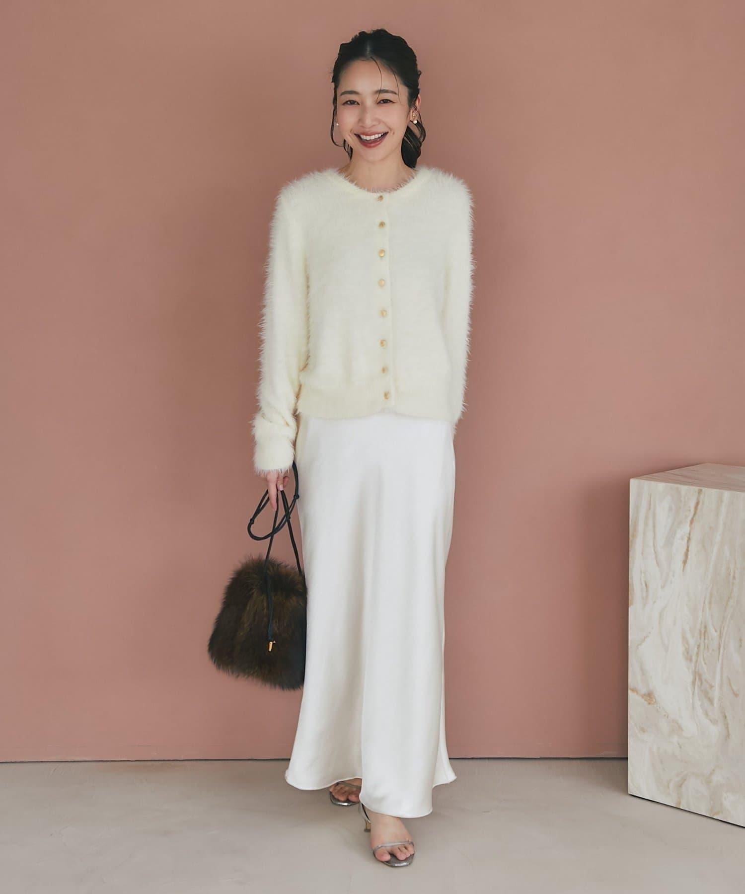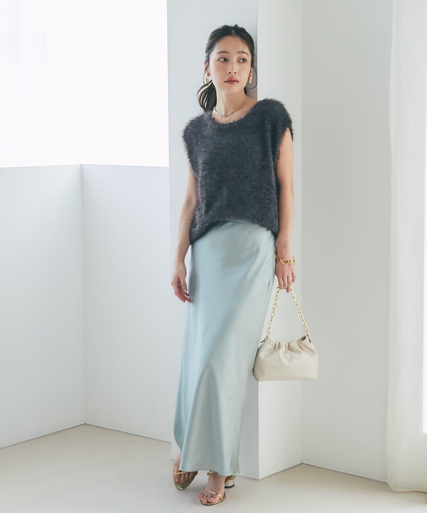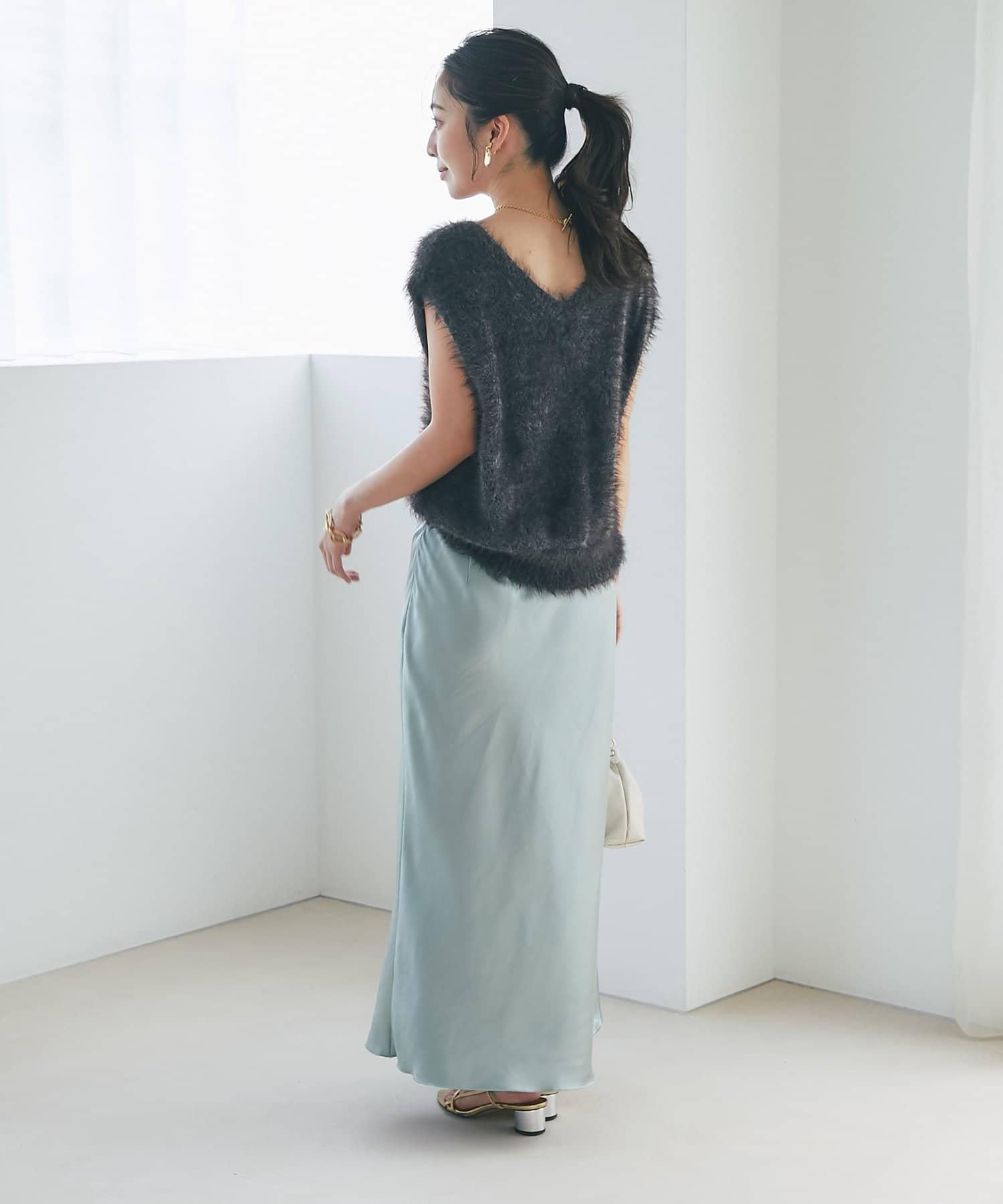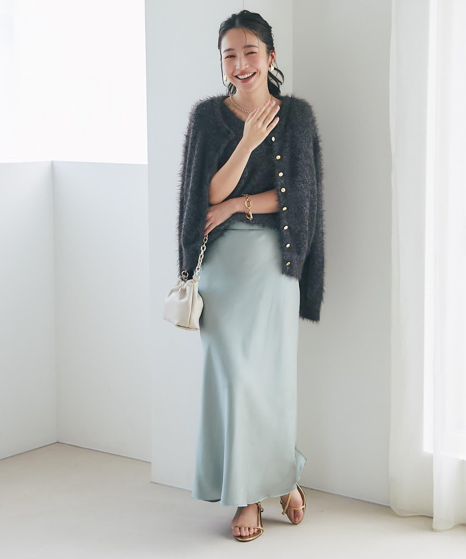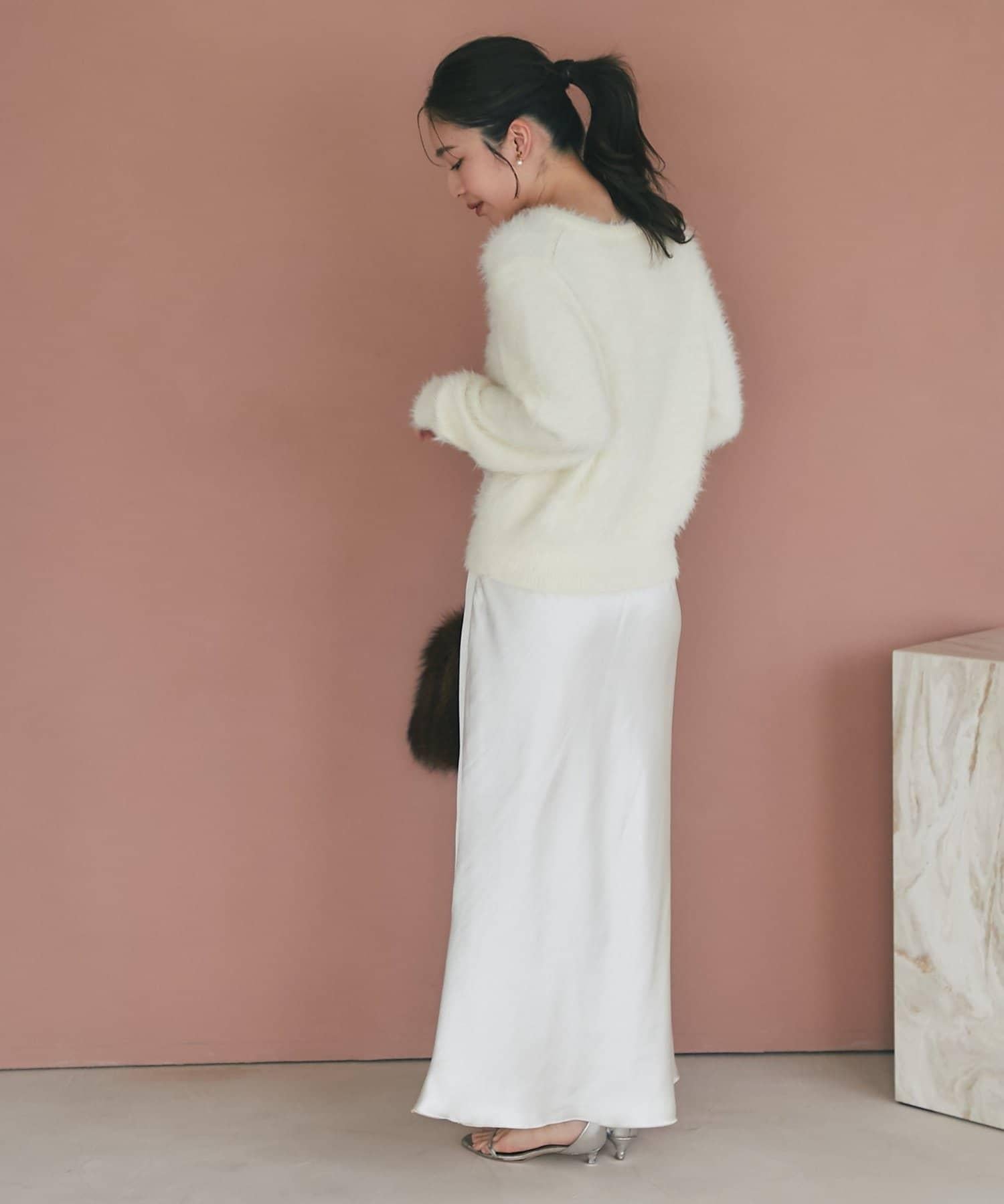 這款緞面裙具有優雅的光澤和簡潔柔美的輪廓。