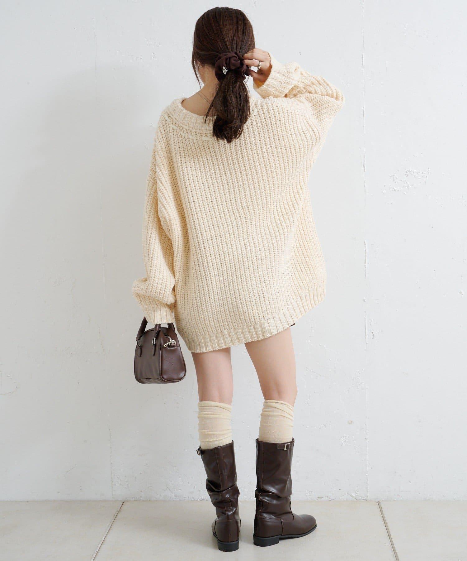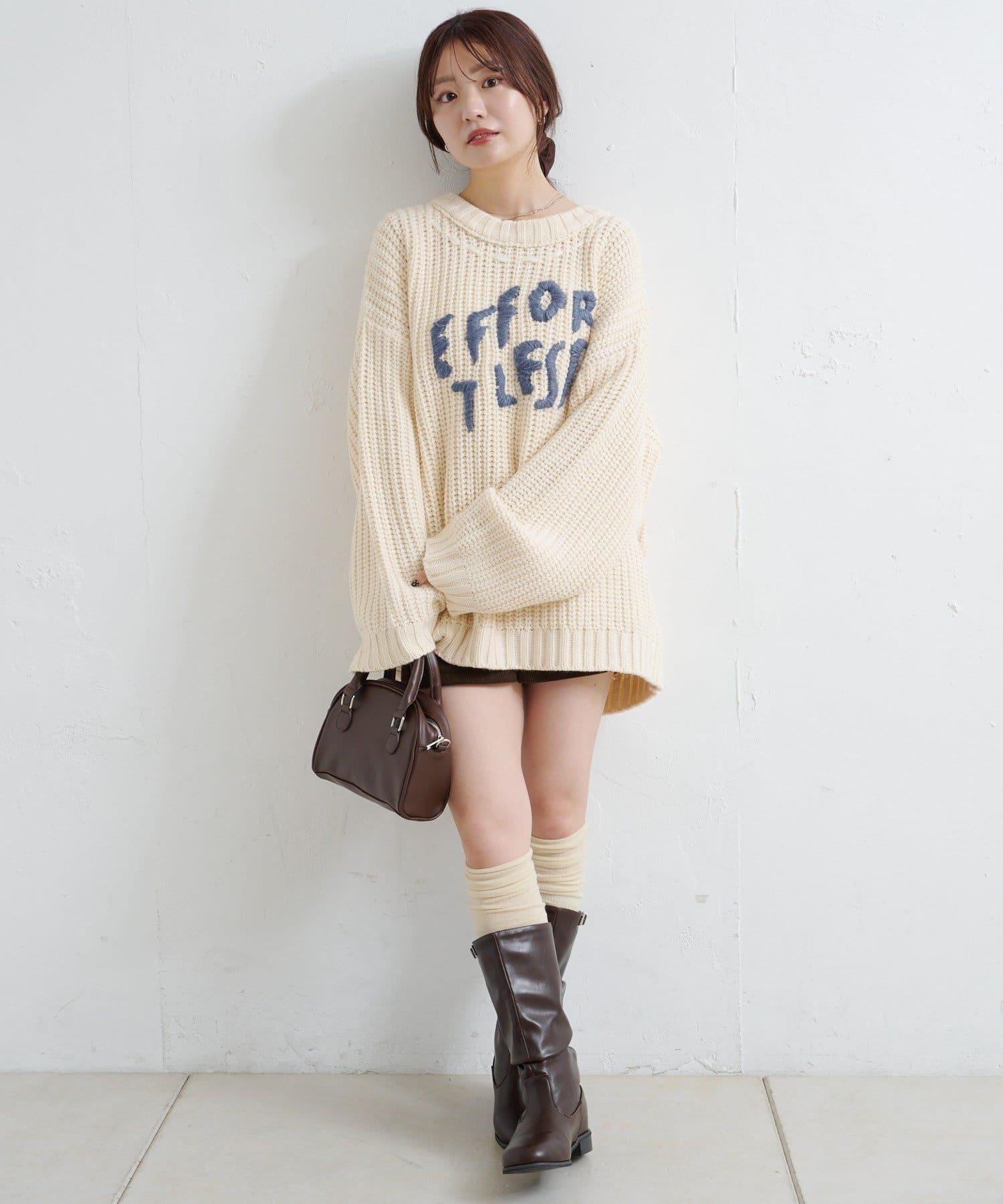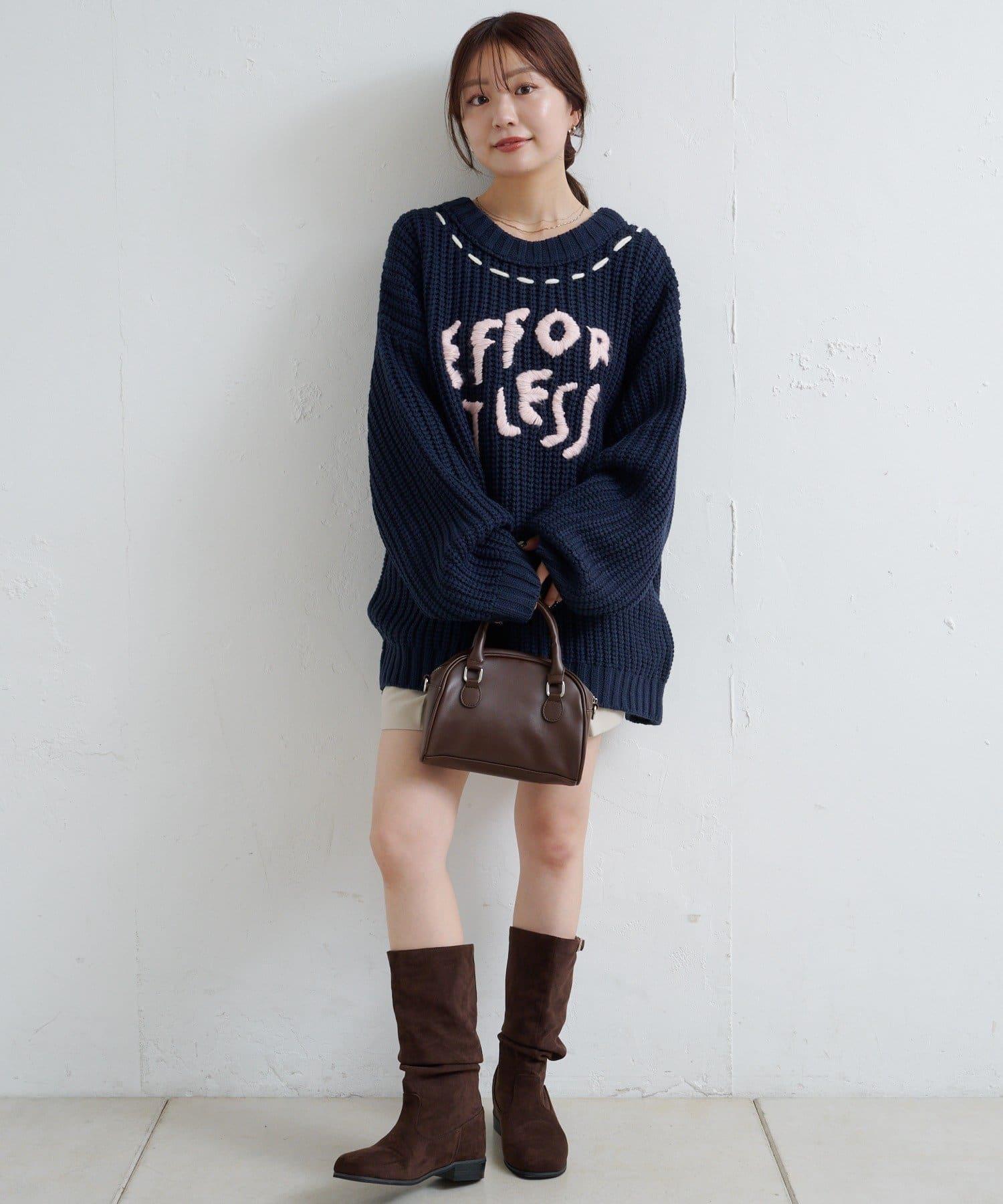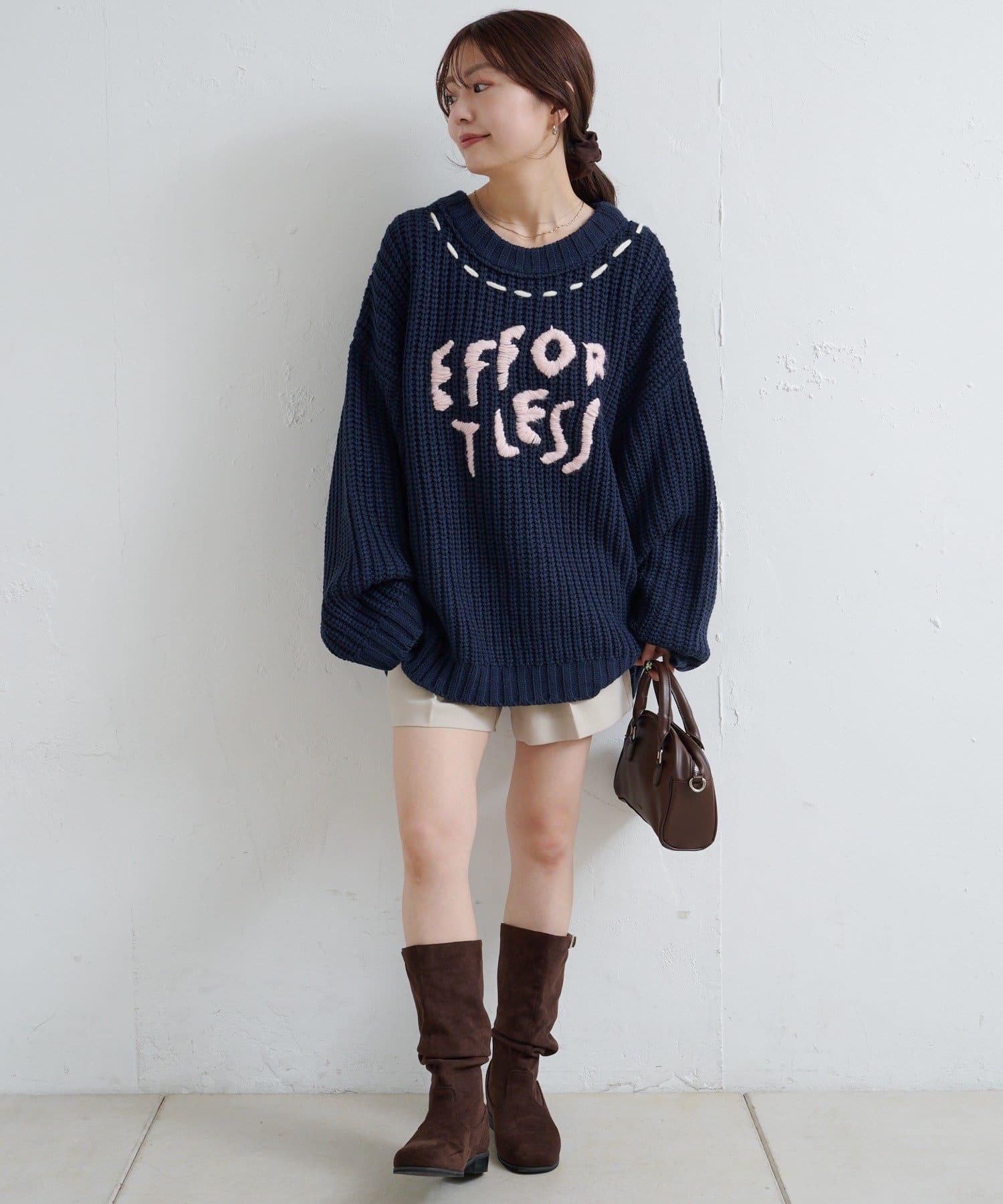 寬鬆的輪廓和粗針織物的柔軟質地給人一種休閒而舒適的印象。