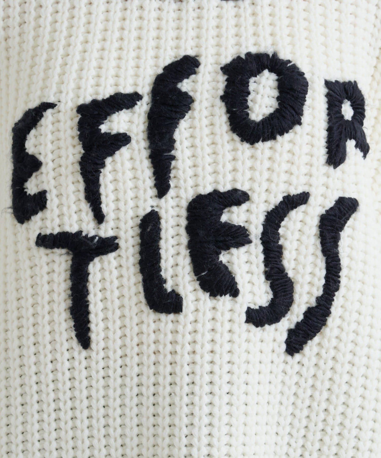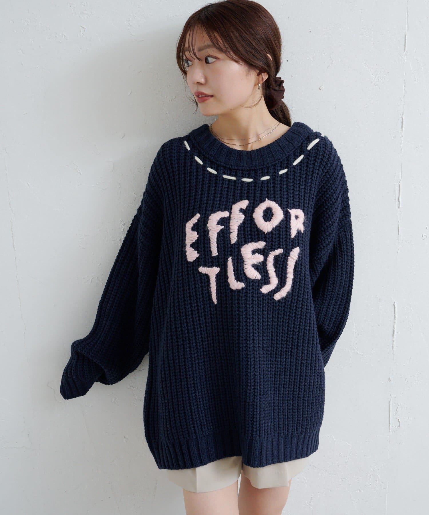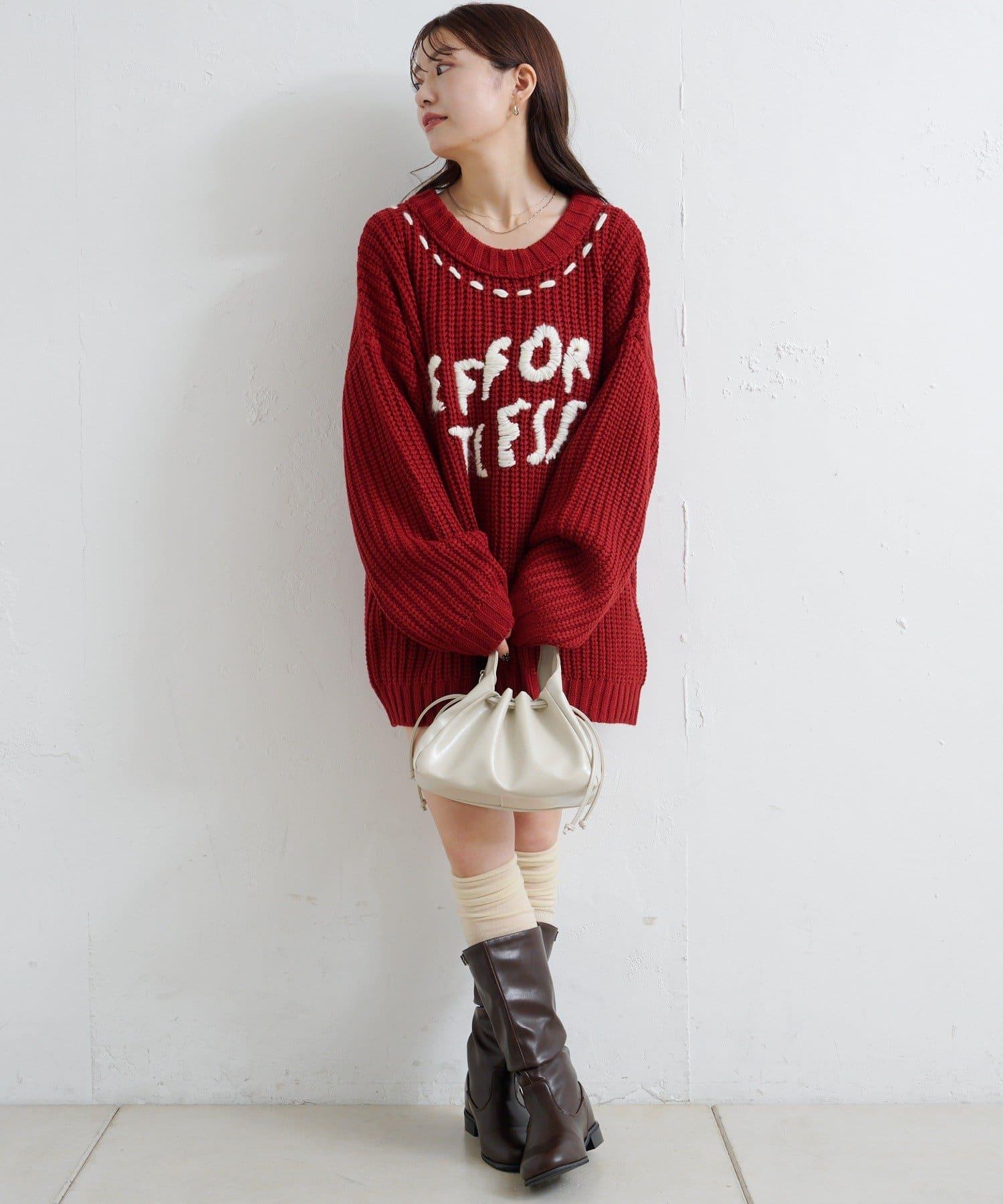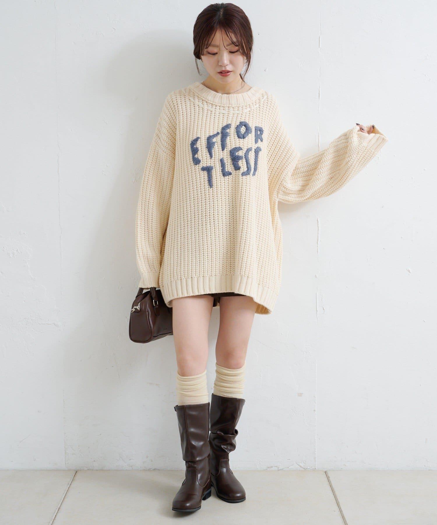 寬鬆的輪廓和粗針織物的柔軟質地給人一種休閒而舒適的印象。