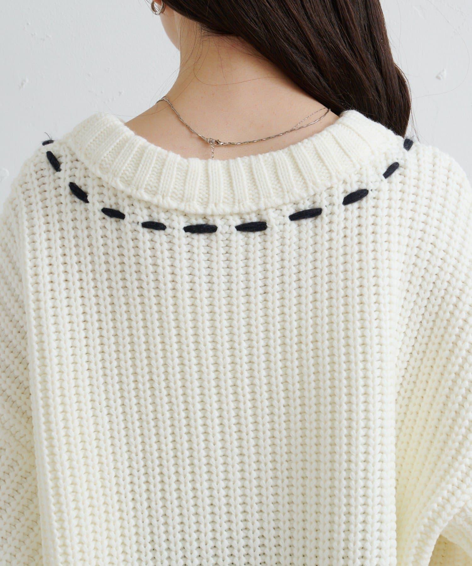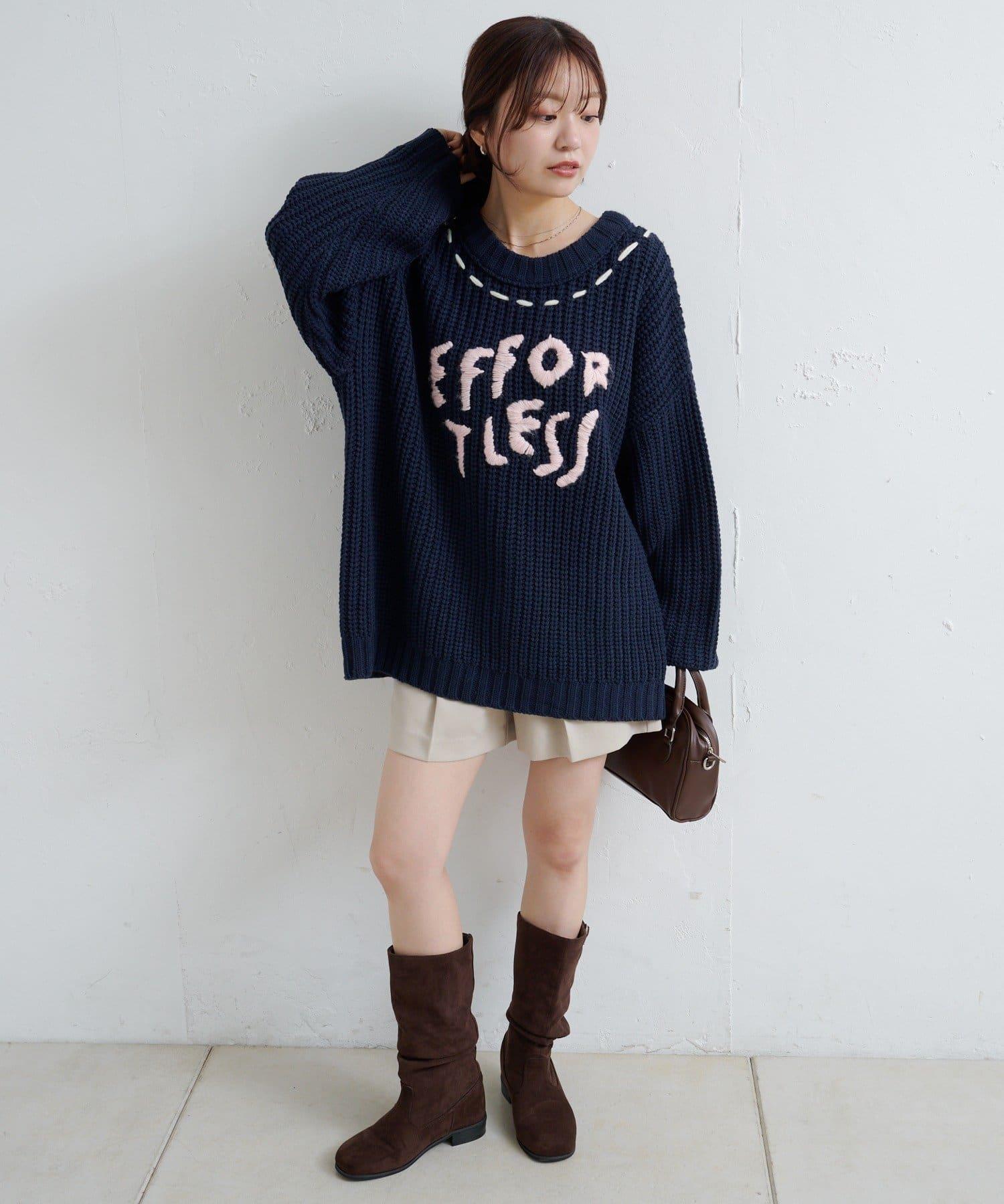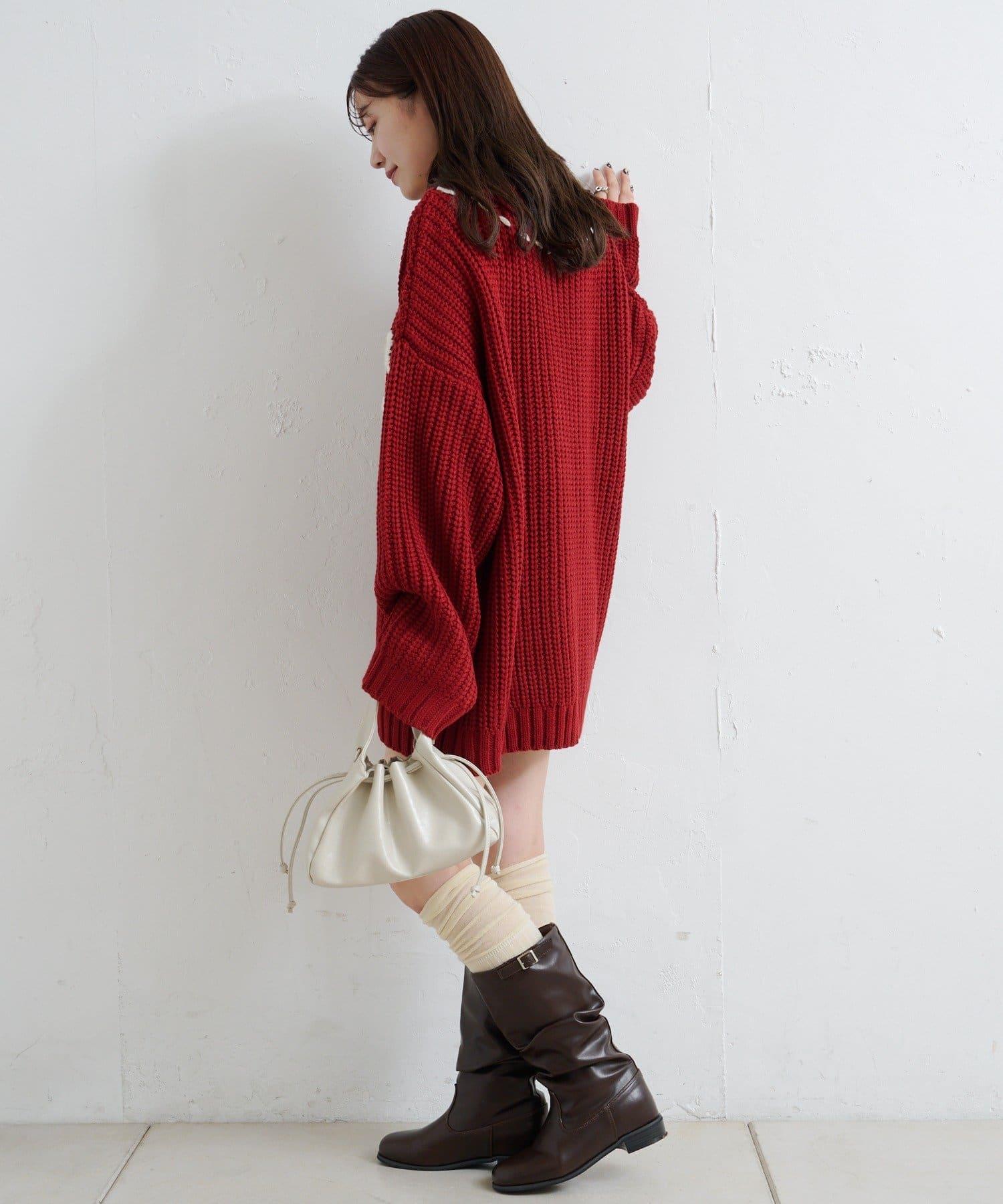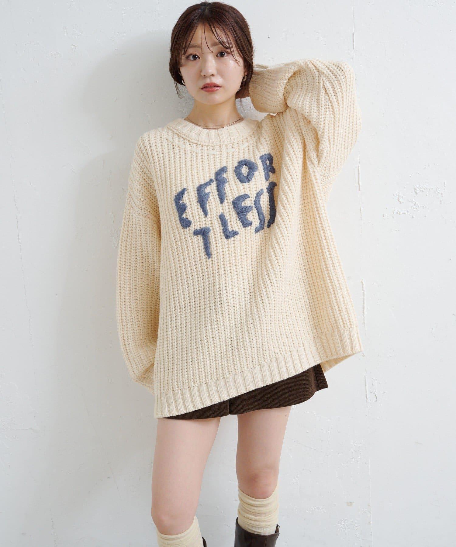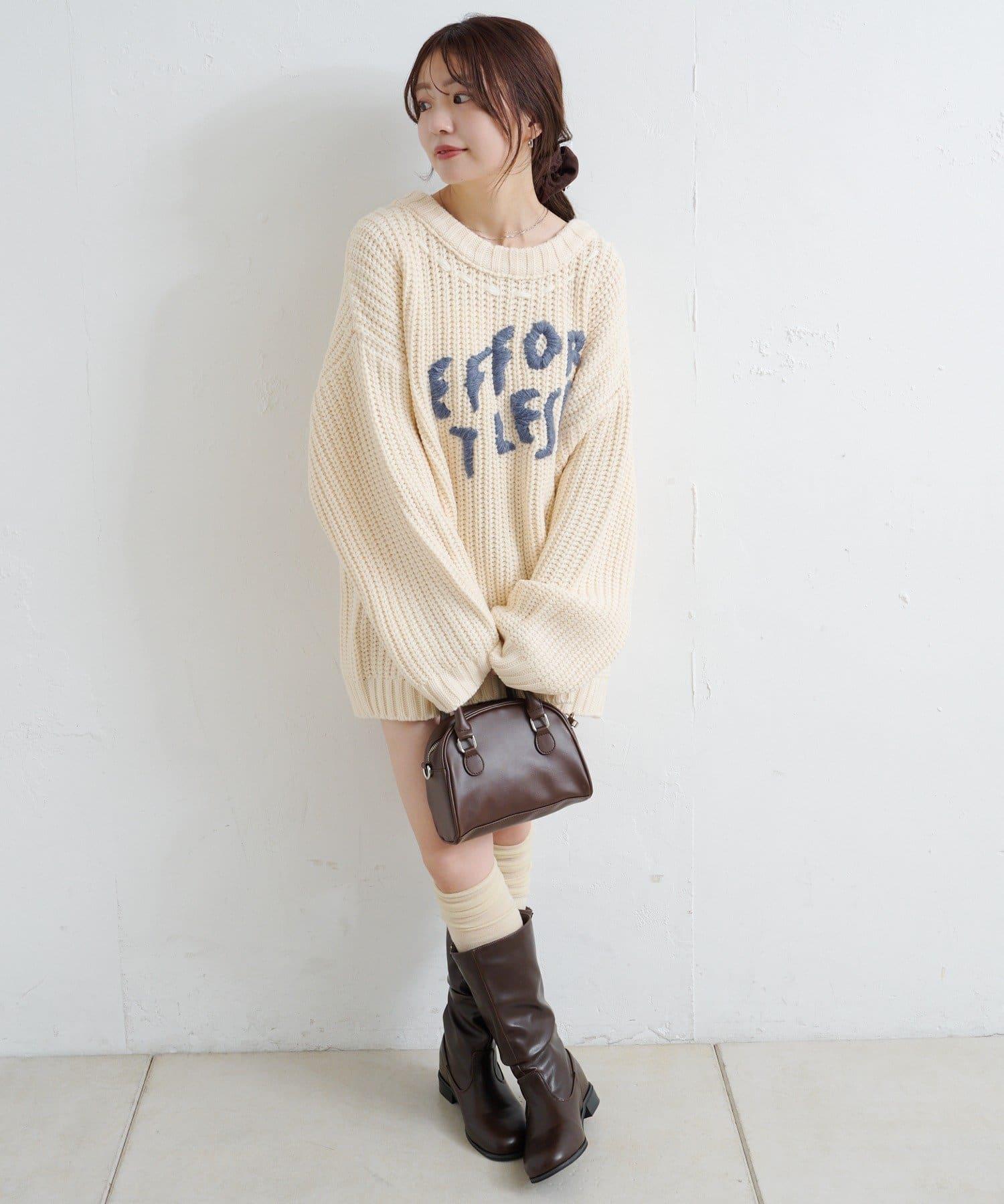 寬鬆的輪廓和粗針織物的柔軟質地給人一種休閒而舒適的印象。