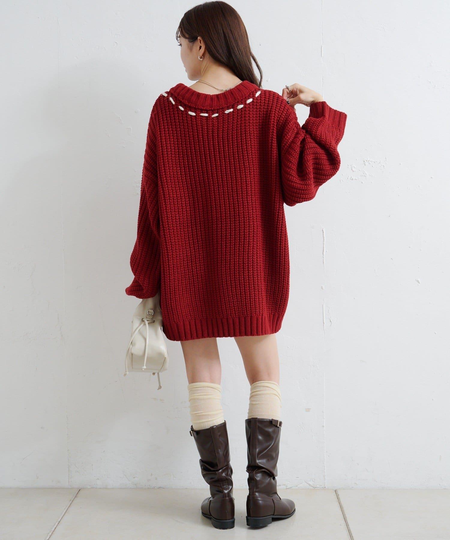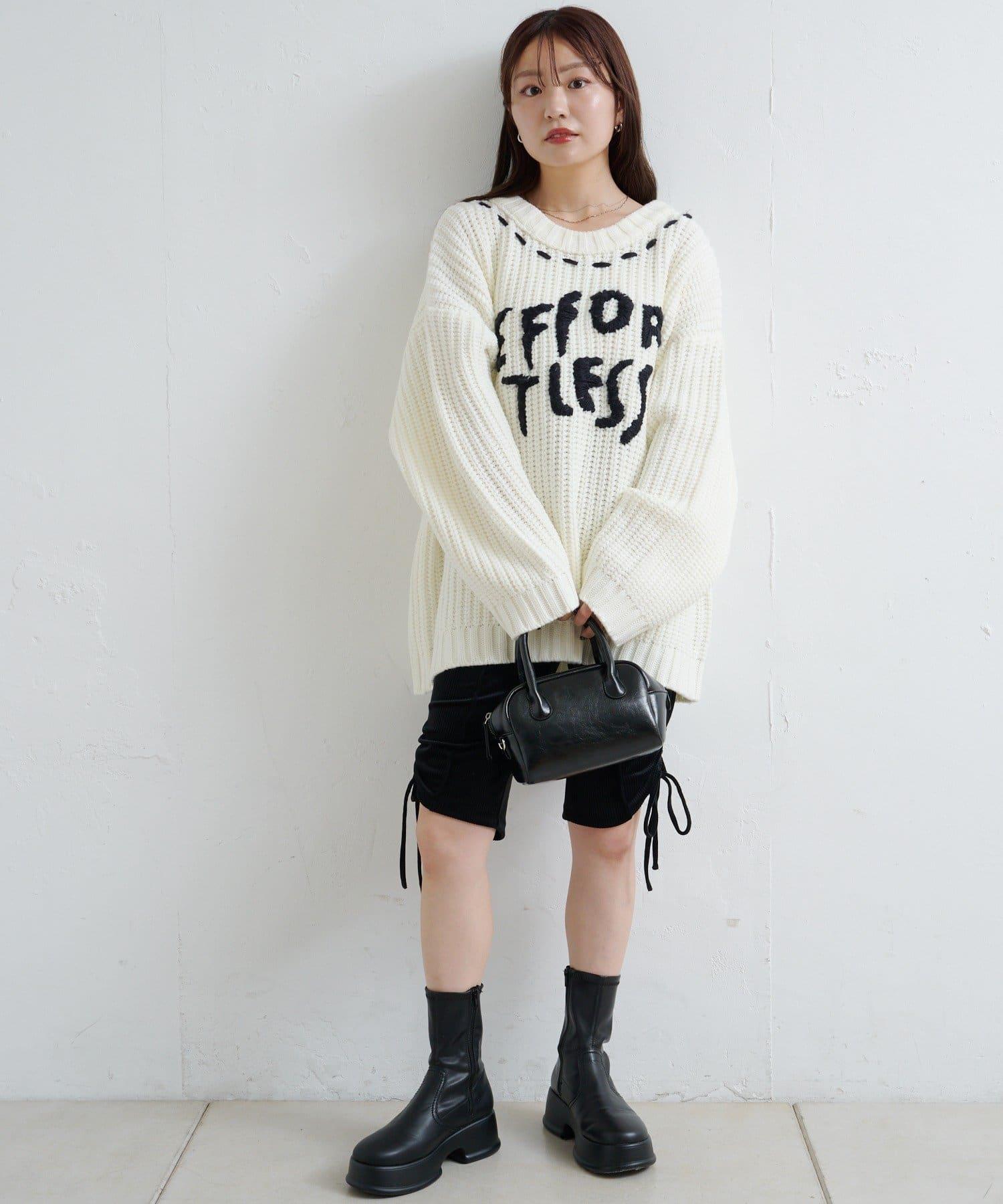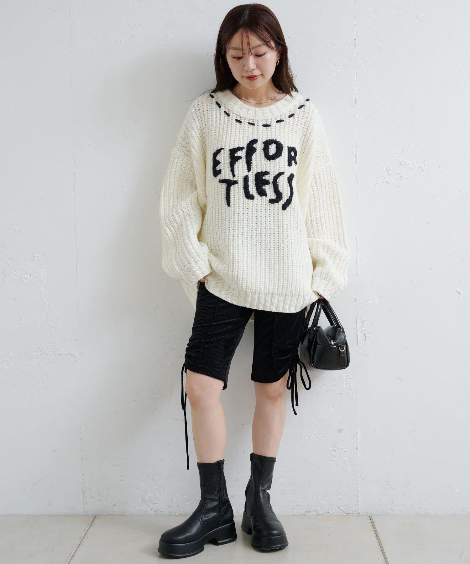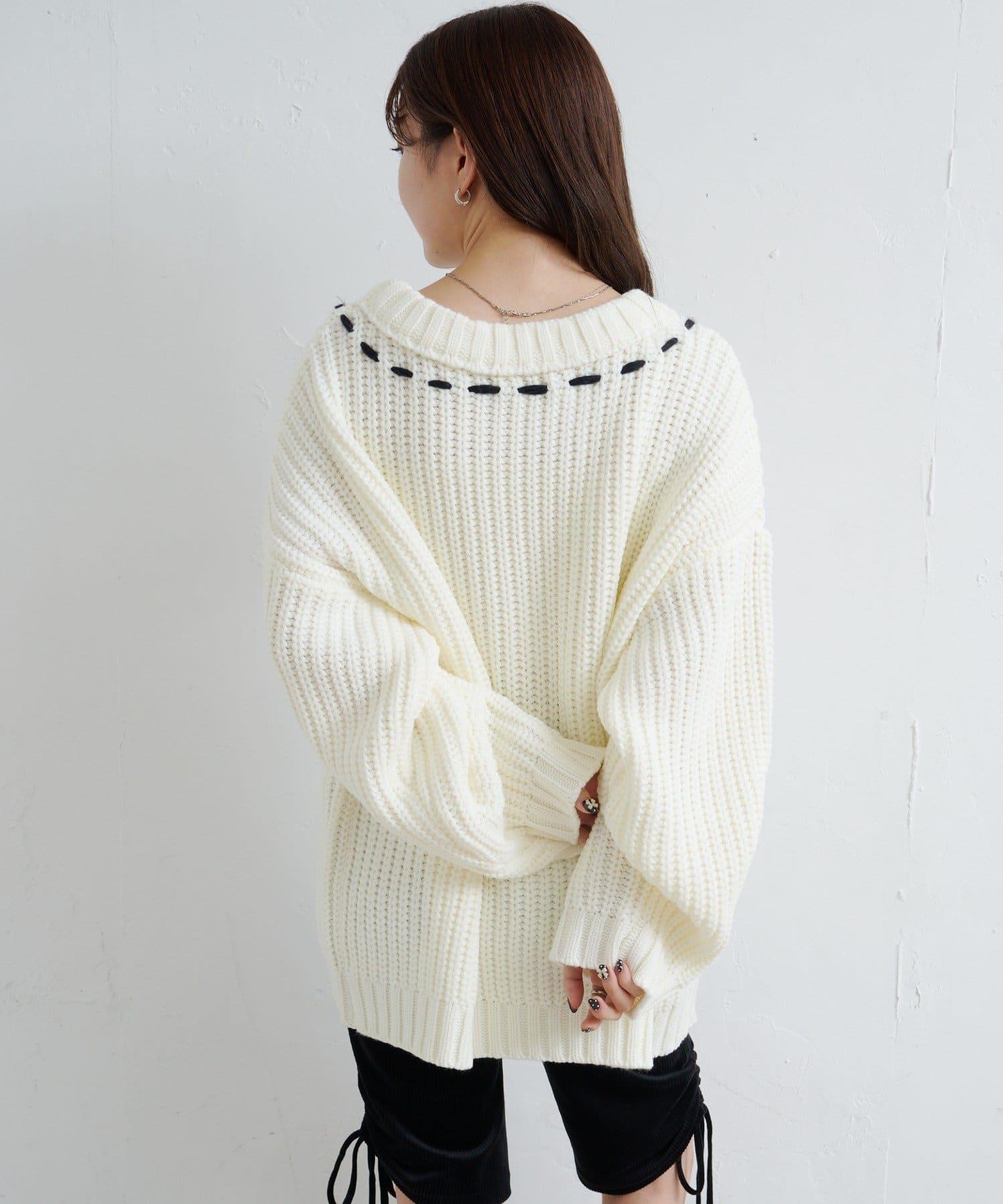 寬鬆的輪廓和粗針織物的柔軟質地給人一種休閒而舒適的印象。