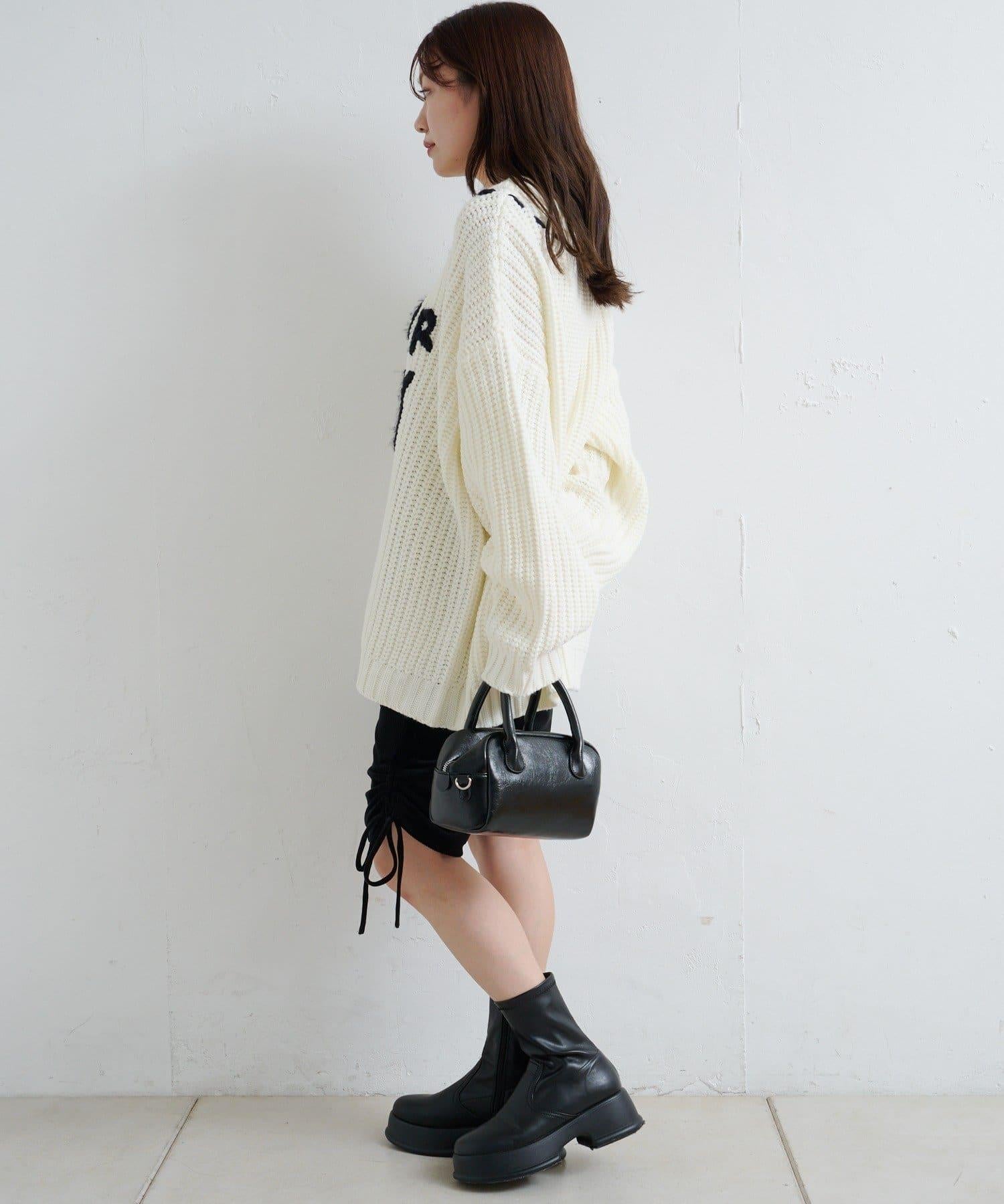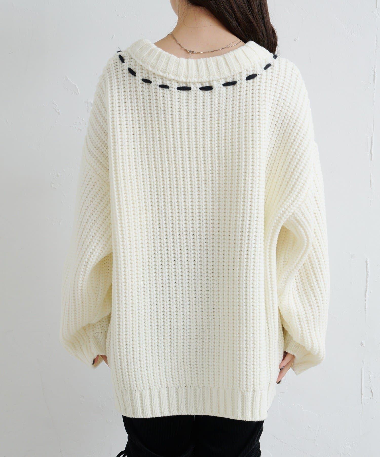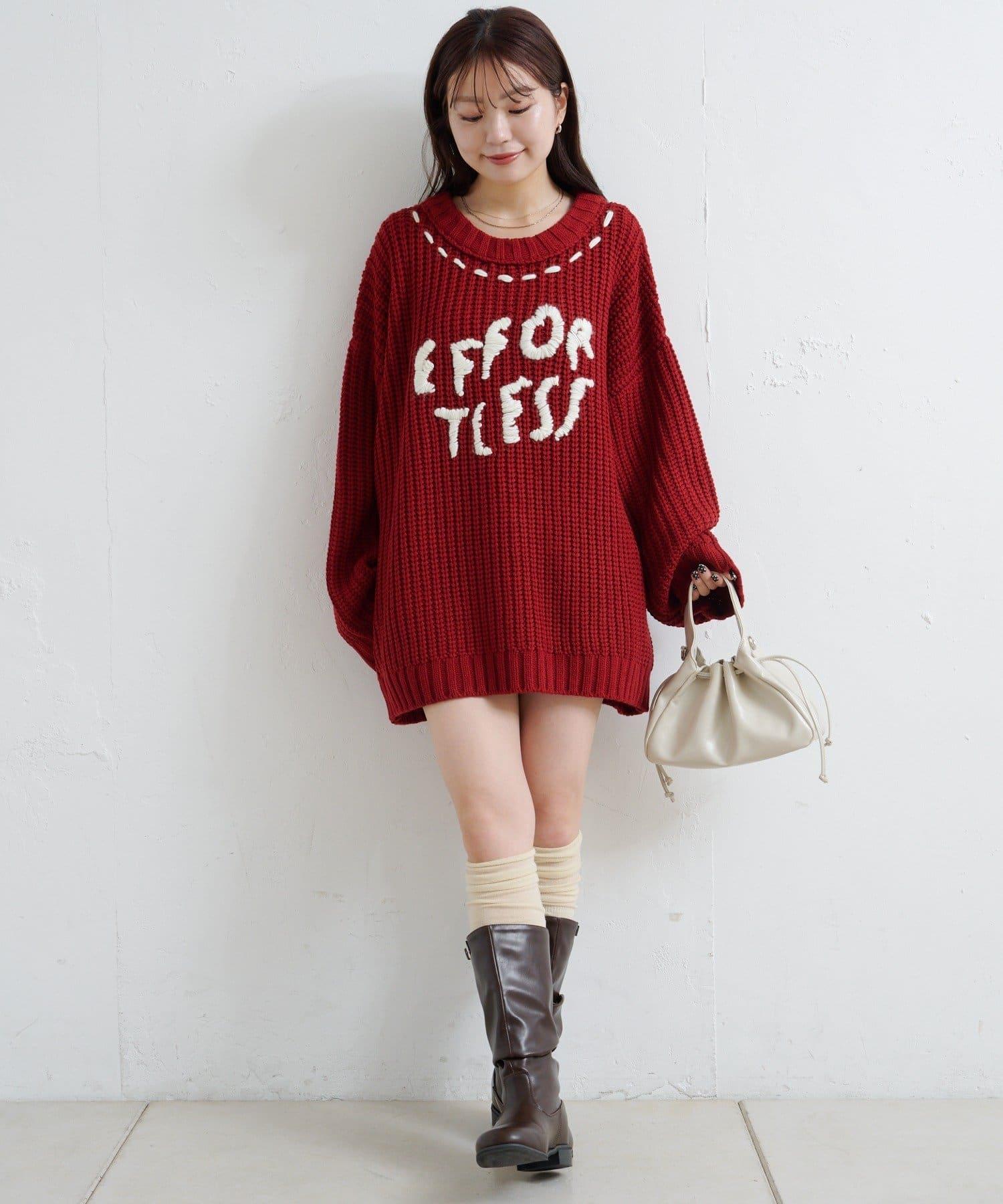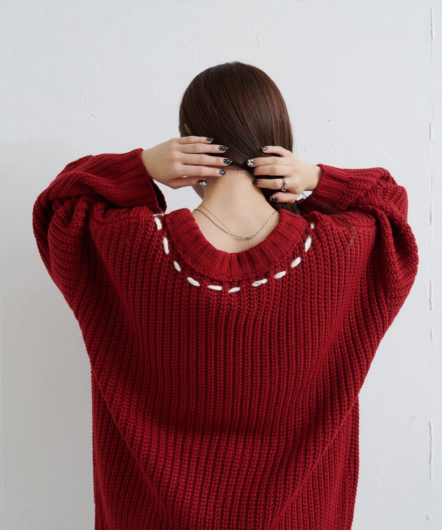 寬鬆的輪廓和粗針織物的柔軟質地給人一種休閒而舒適的印象。