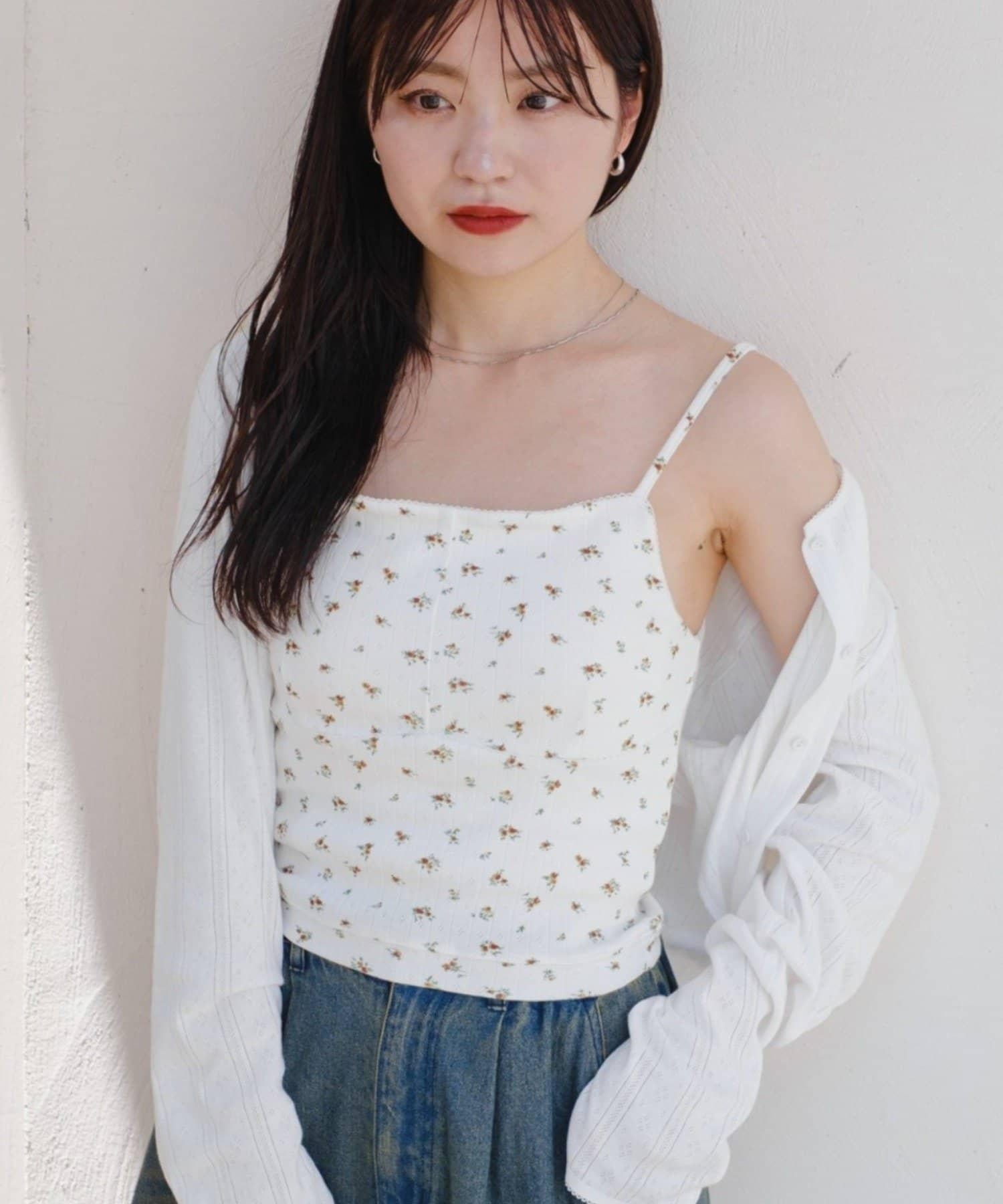 【4色展開】帶杯小花紋吊帶衫