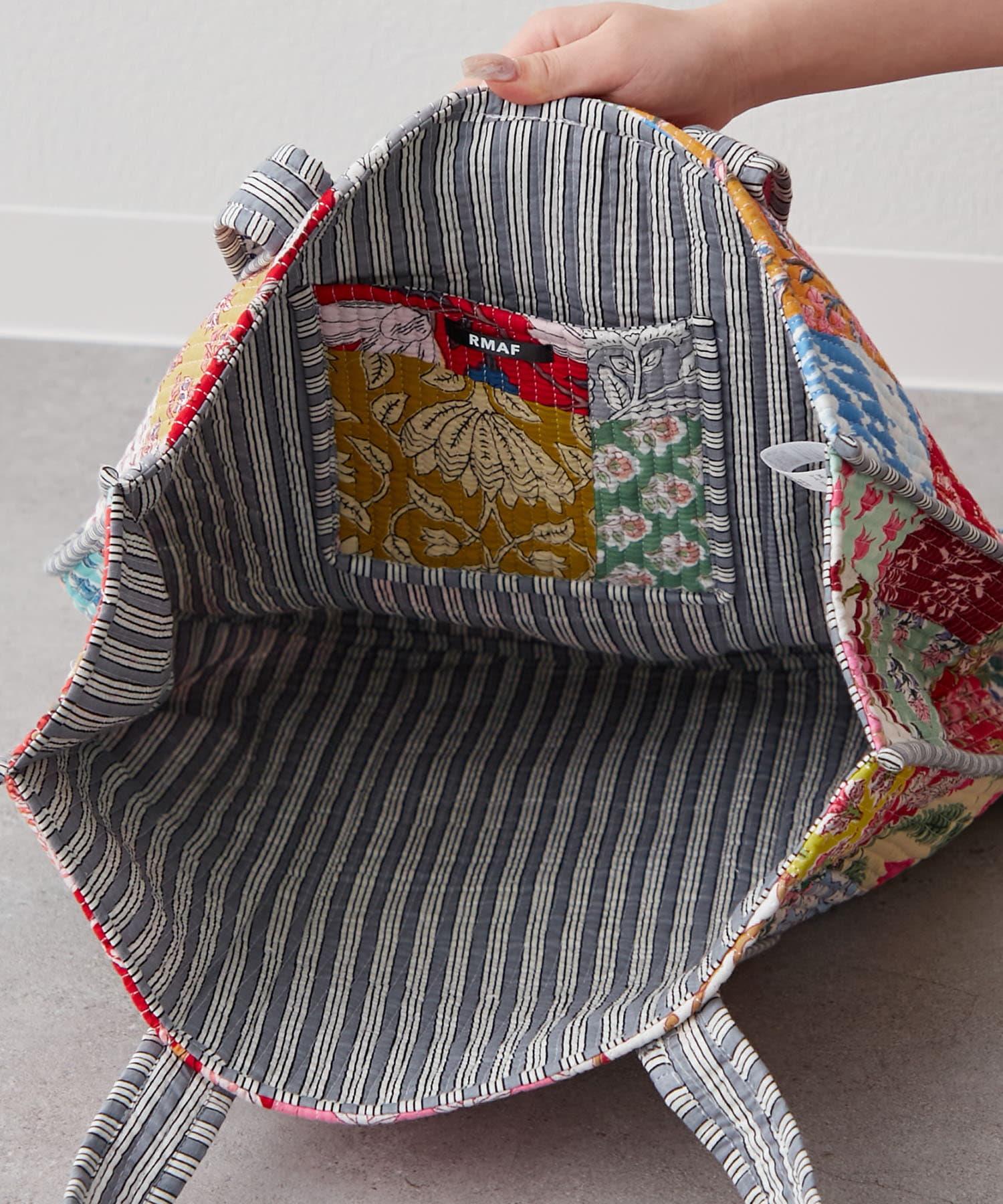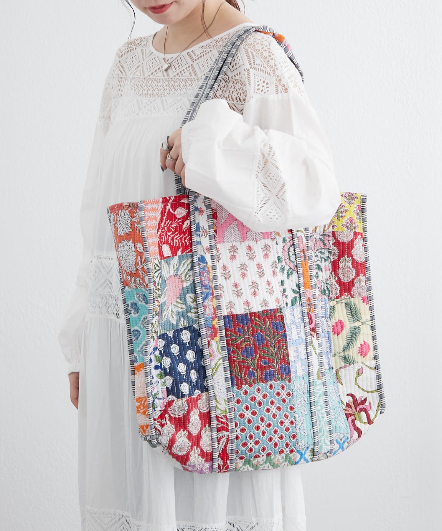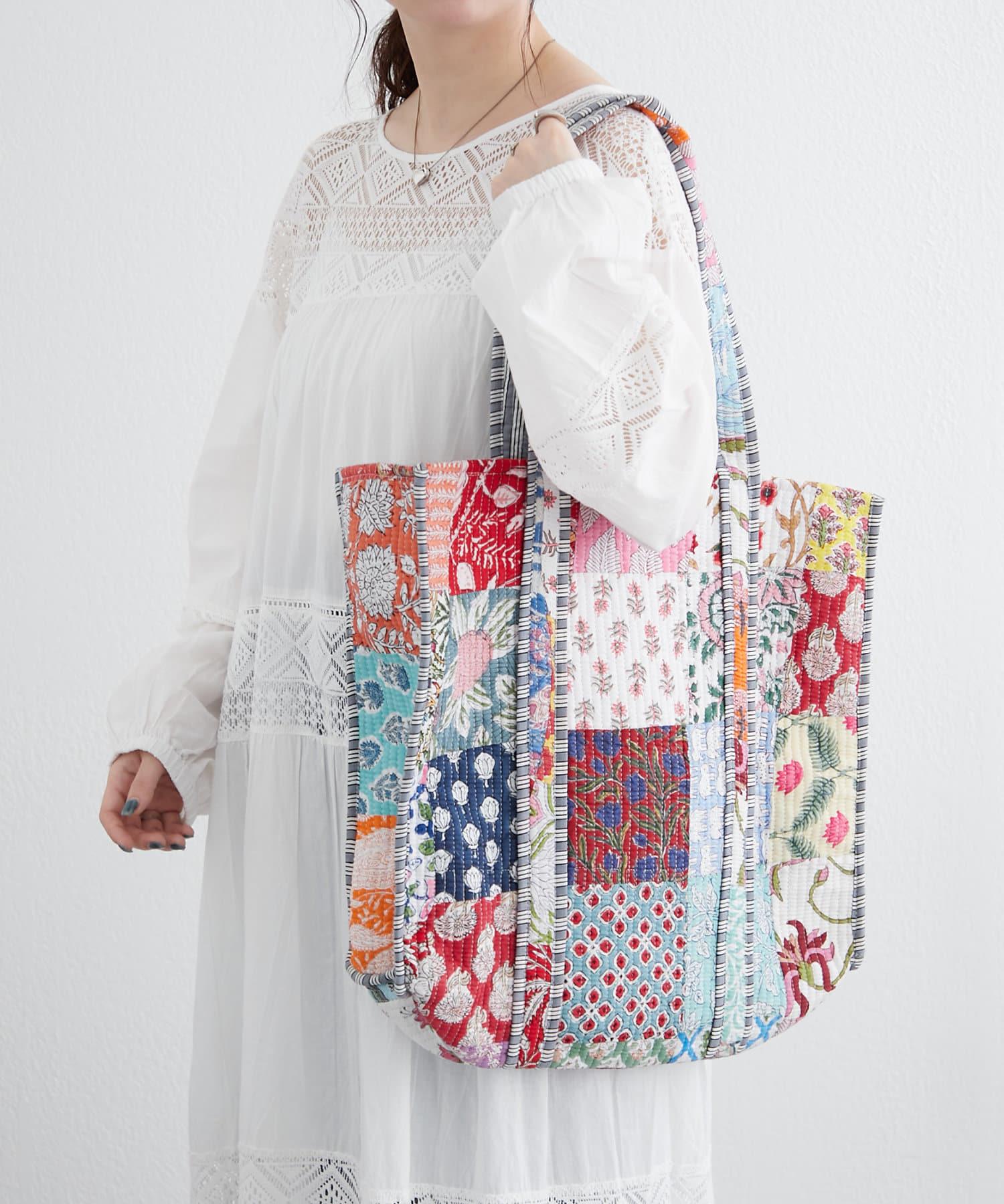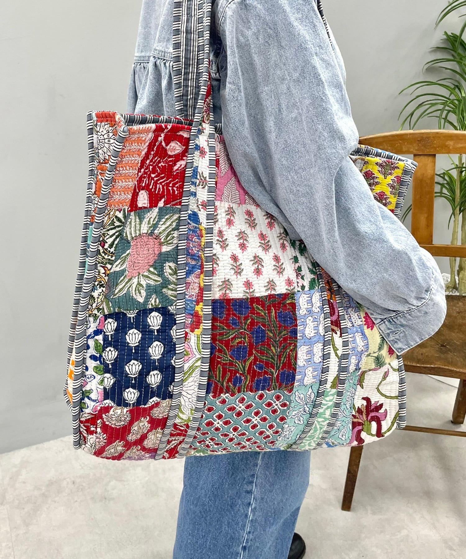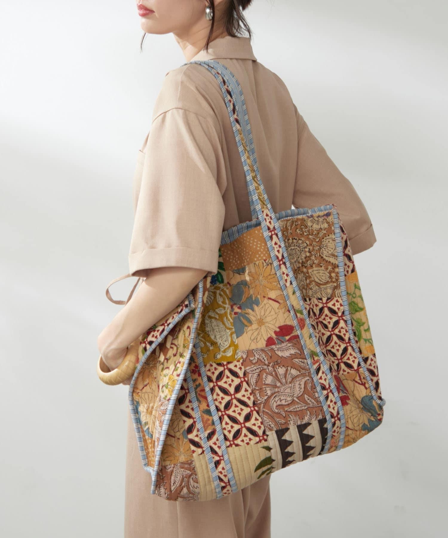 這款包包的設計基於使用印度棉織物的塊狀開關設計,每一件物品的位置都與前一件不同。