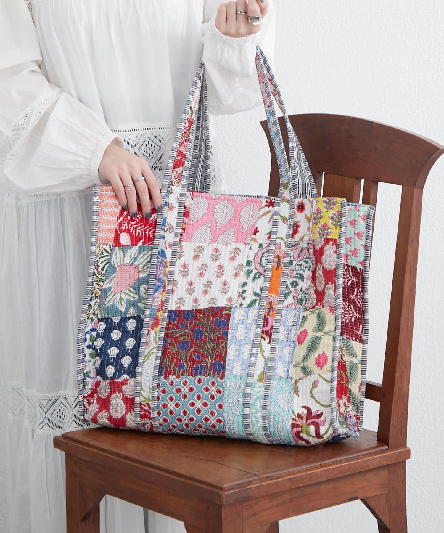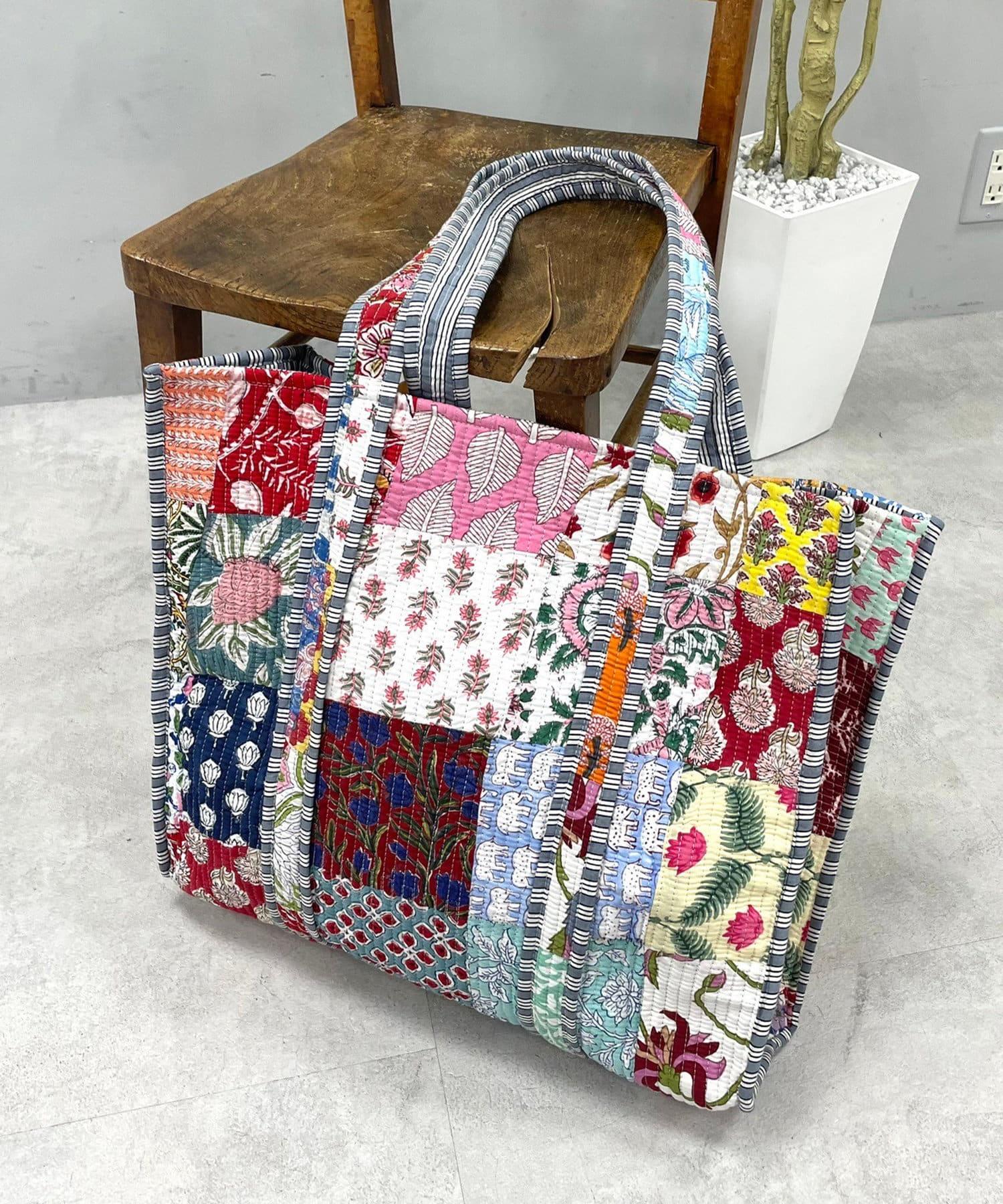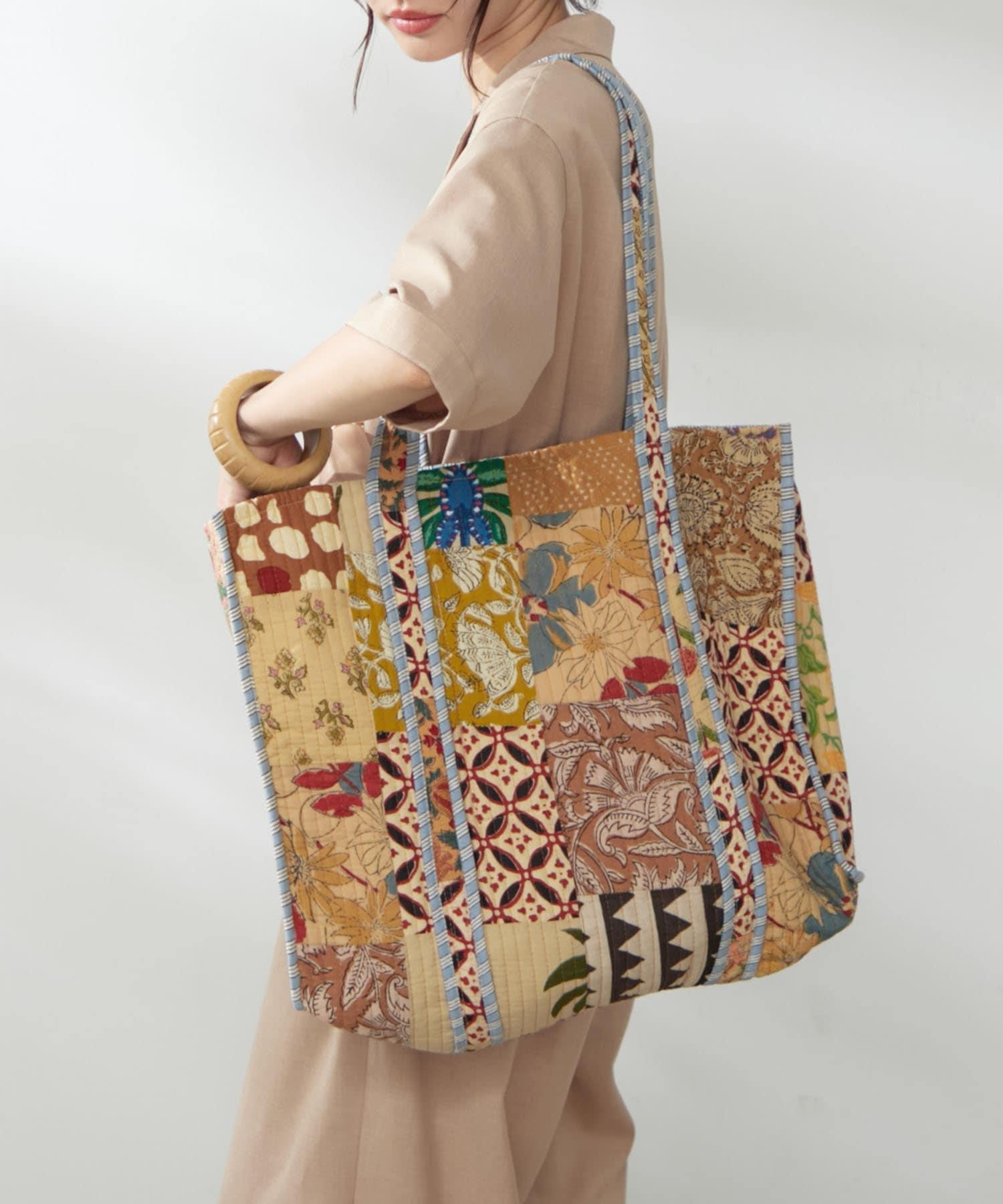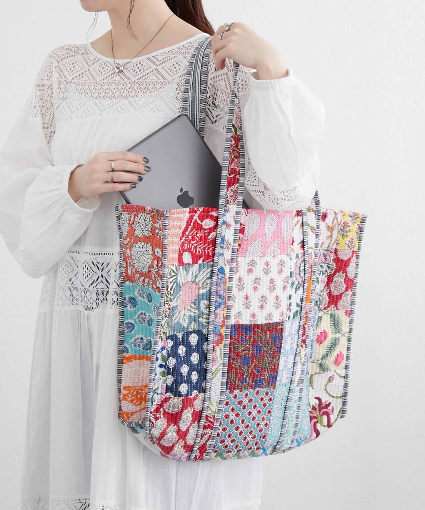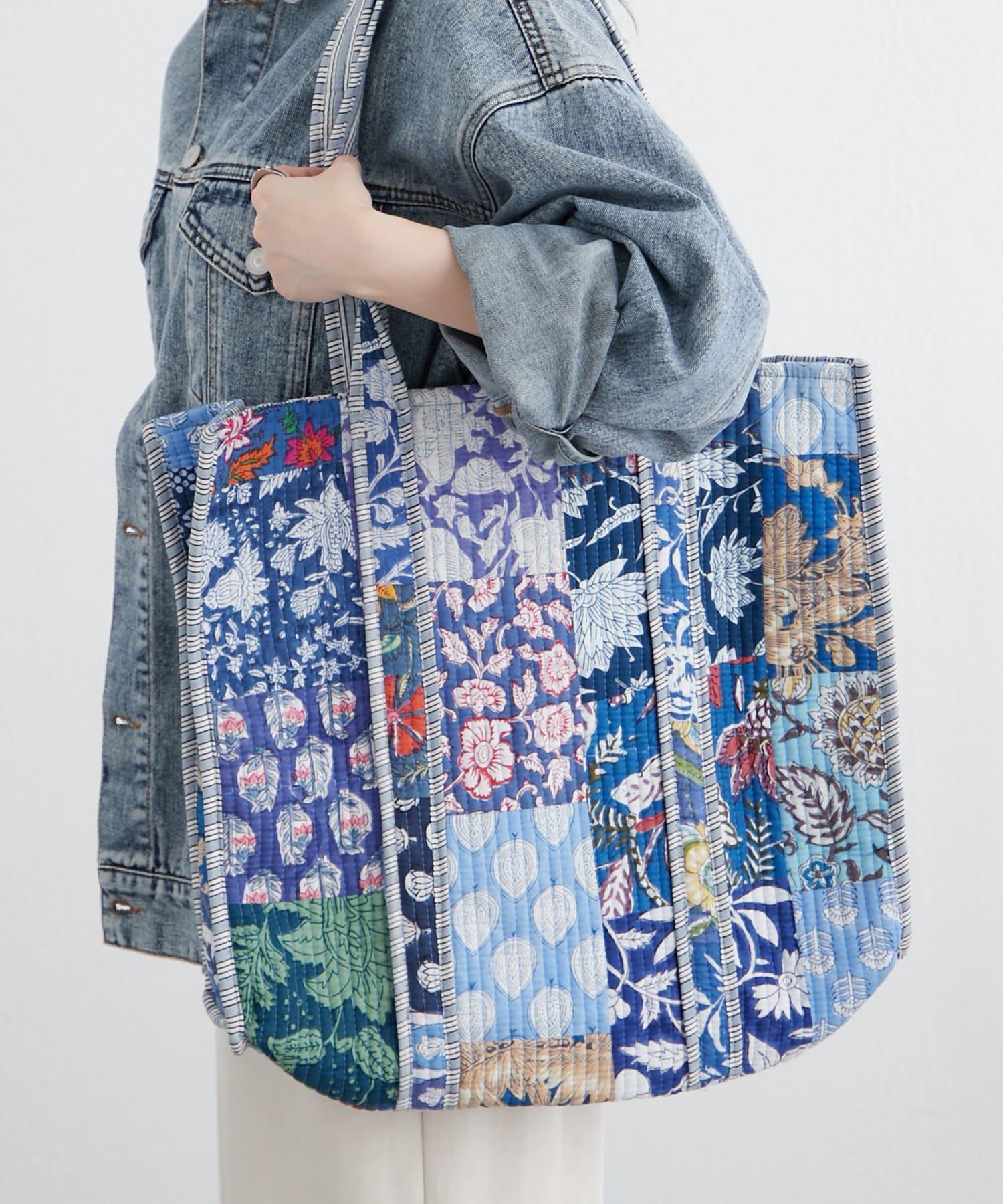 這款包包的設計基於使用印度棉織物的塊狀開關設計,每一件物品的位置都與前一件不同。