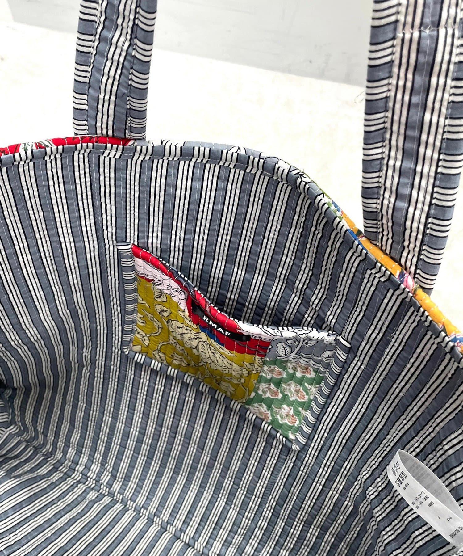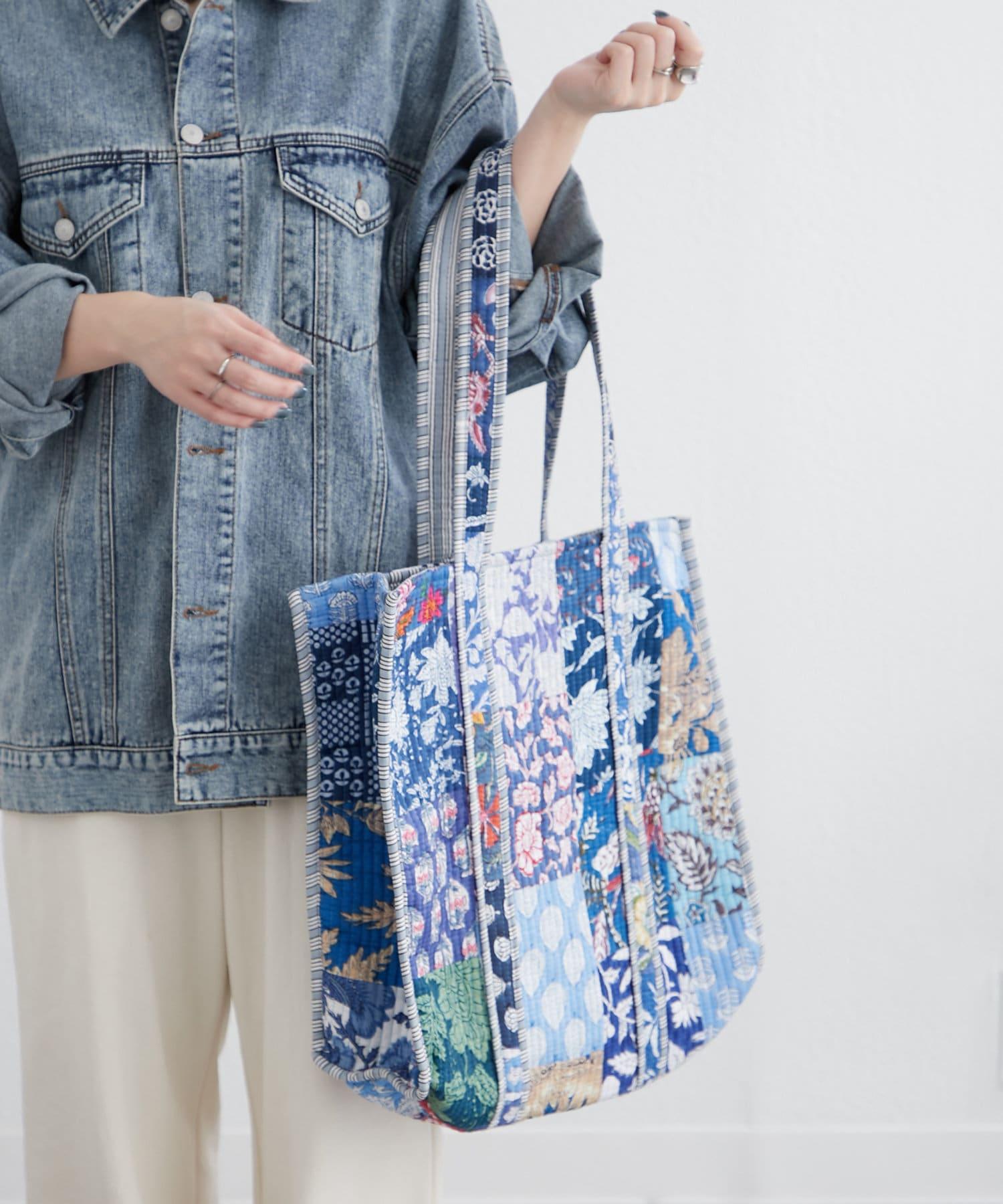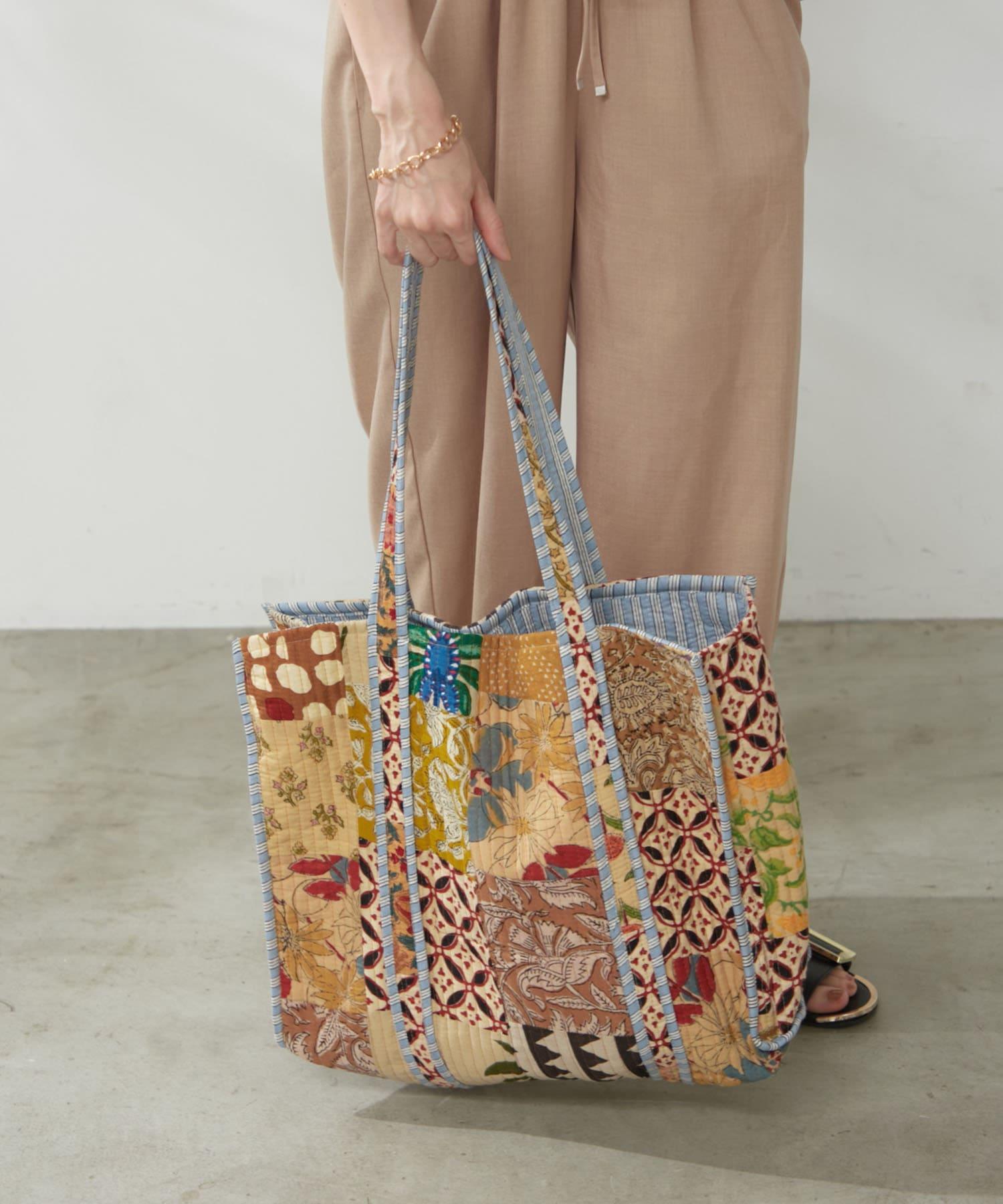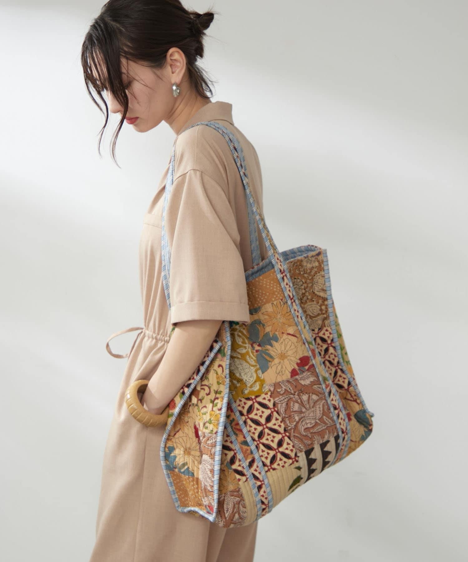 這款包包的設計基於使用印度棉織物的塊狀開關設計,每一件物品的位置都與前一件不同。