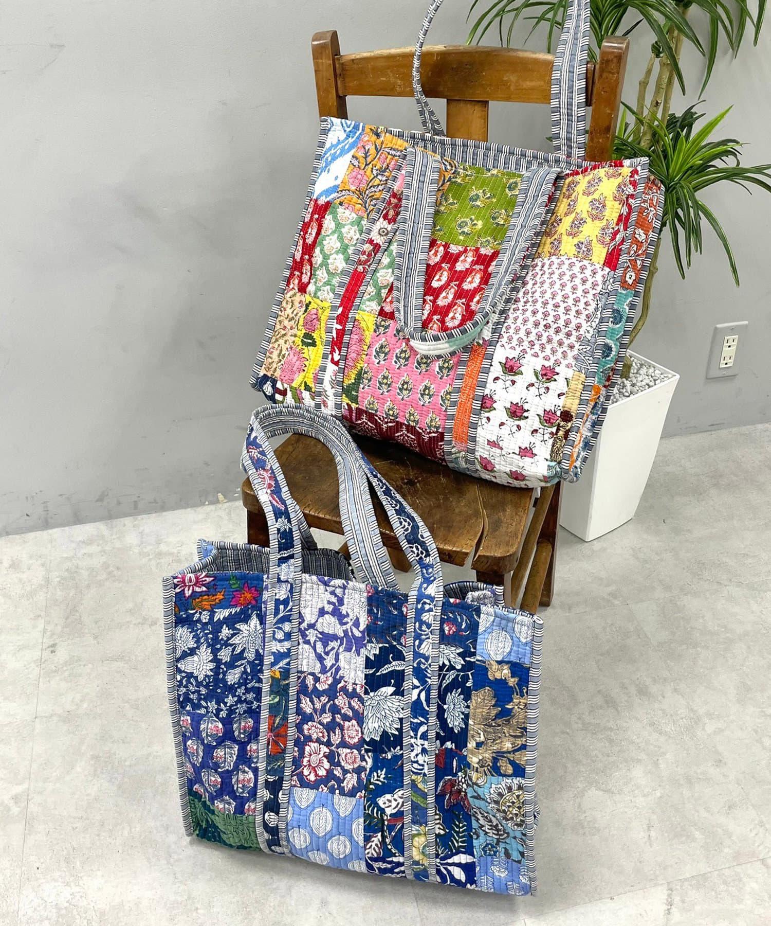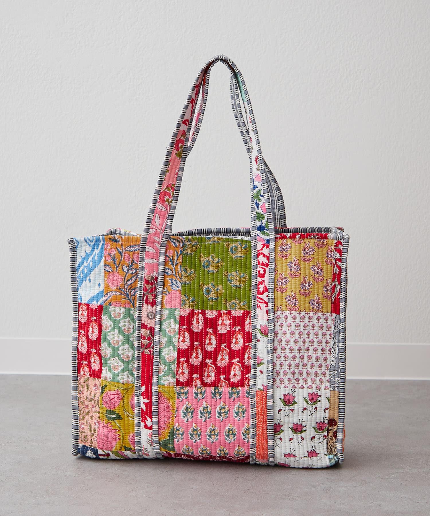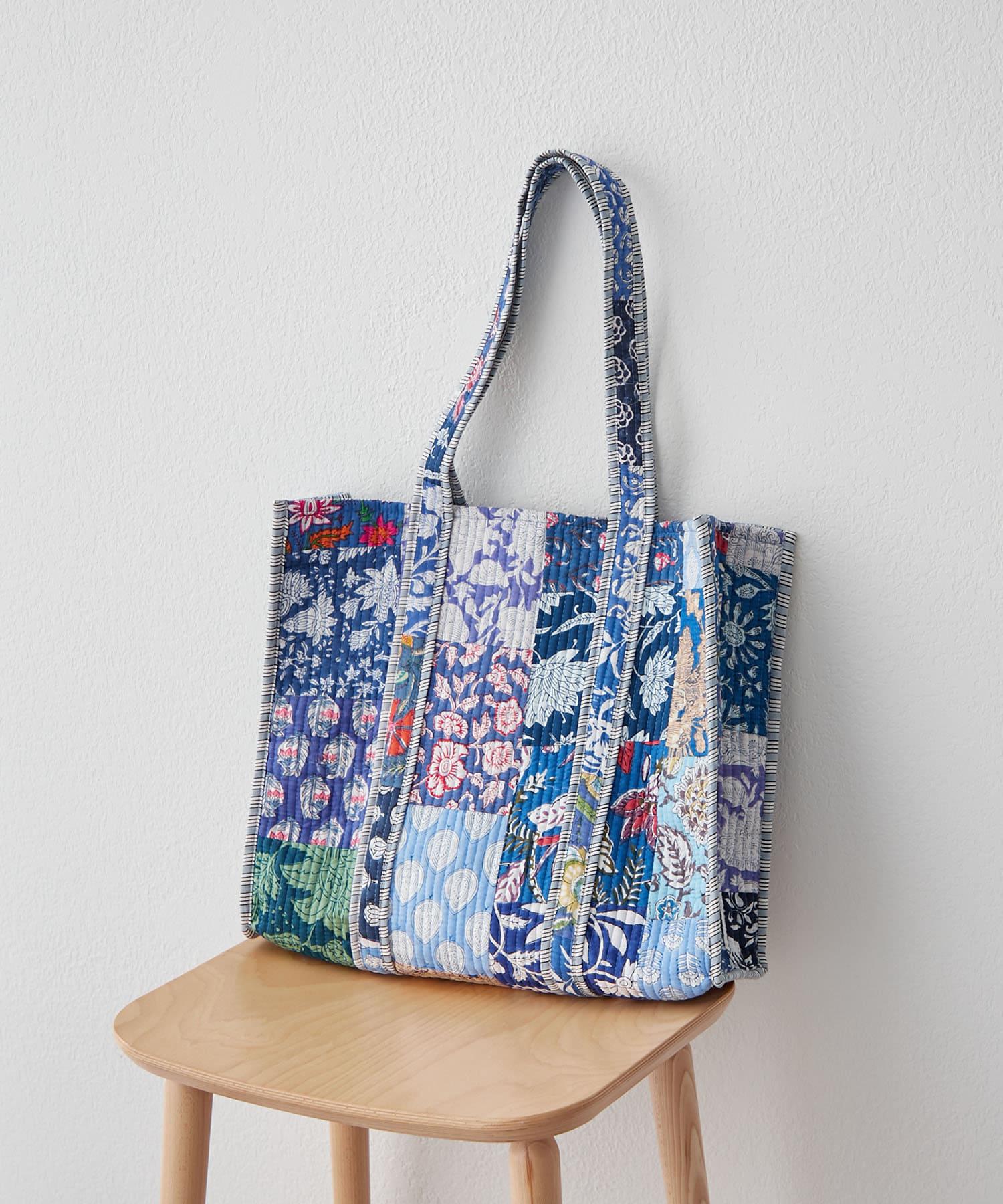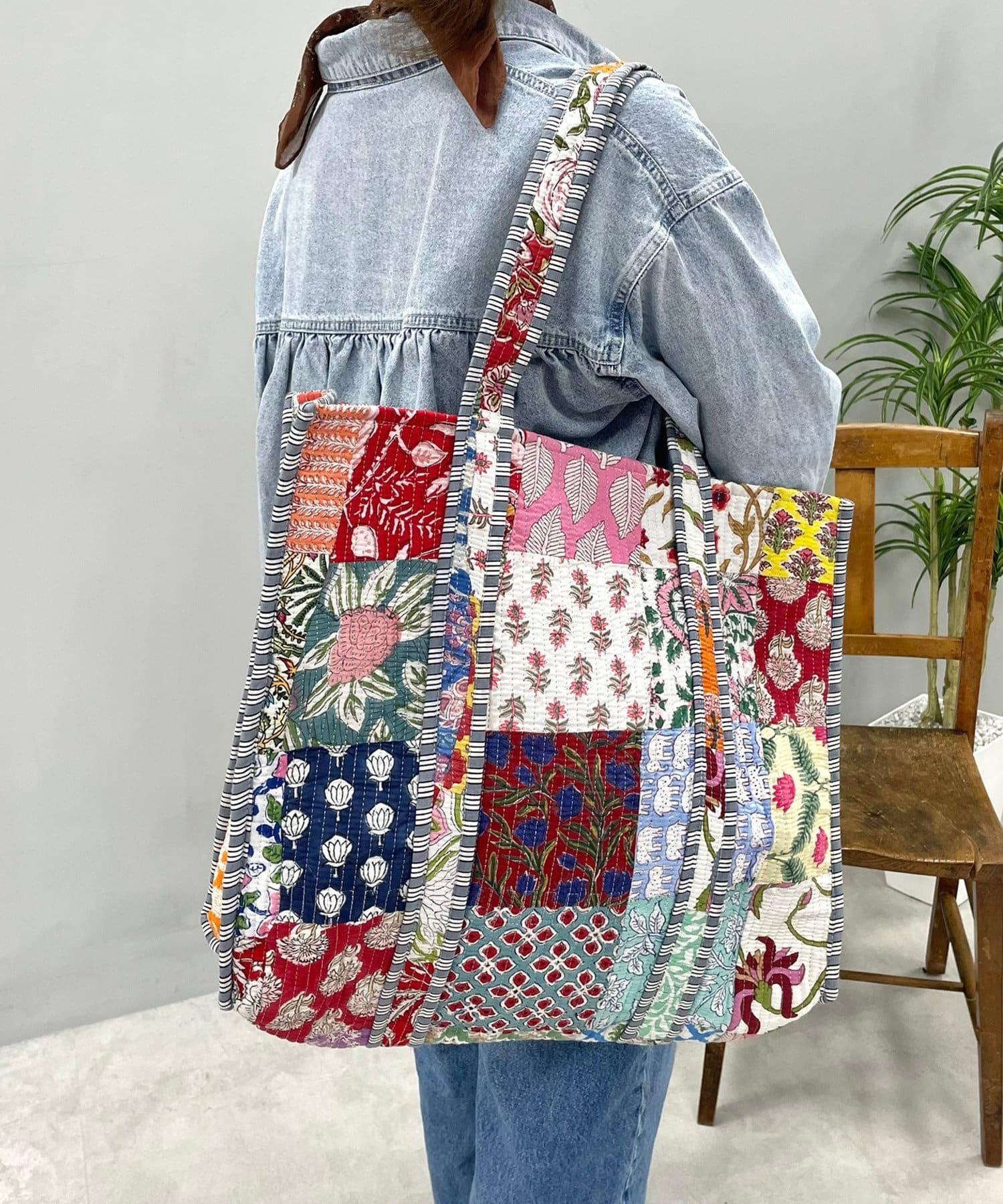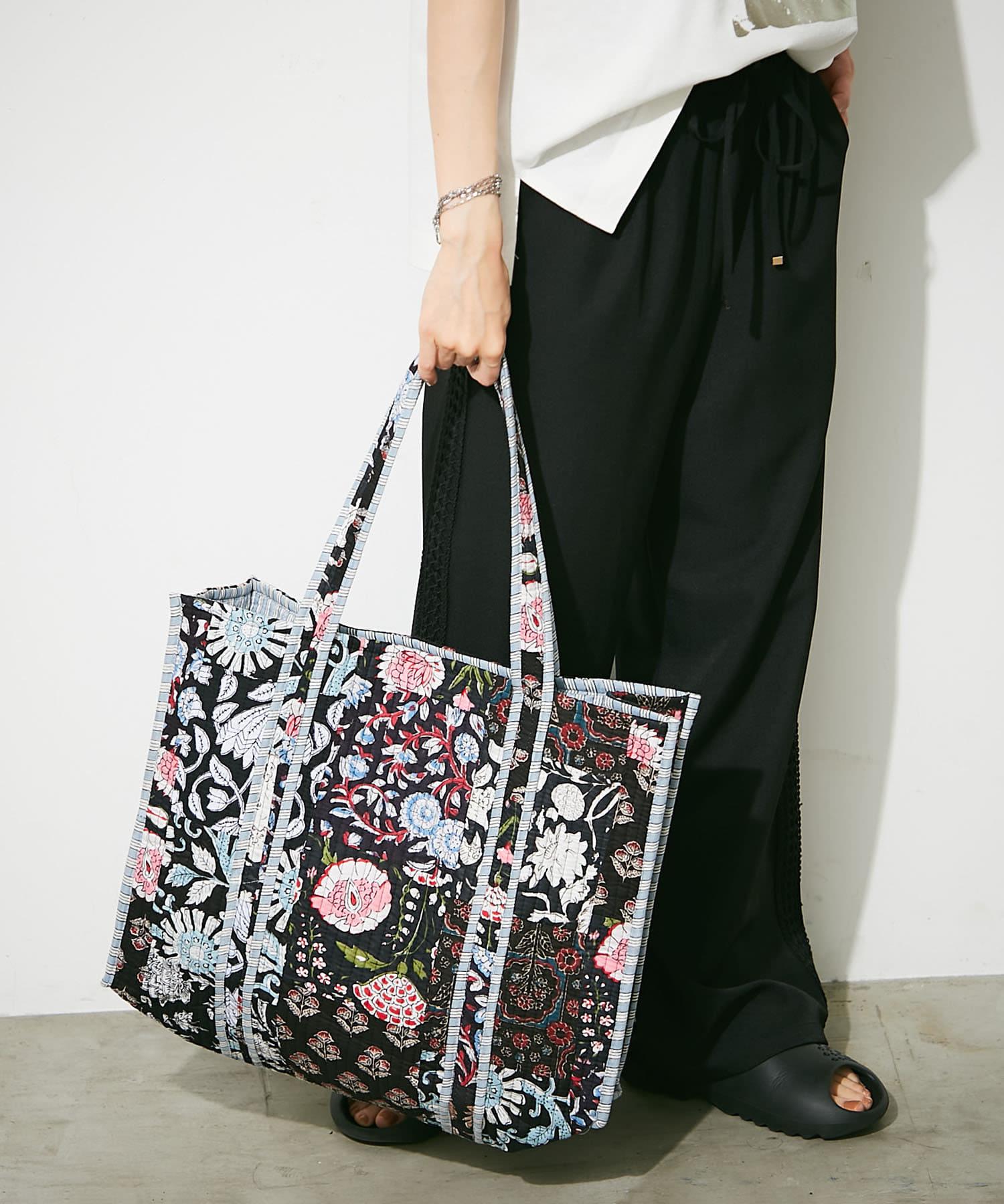 這款包包的設計基於使用印度棉織物的塊狀開關設計,每一件物品的位置都與前一件不同。