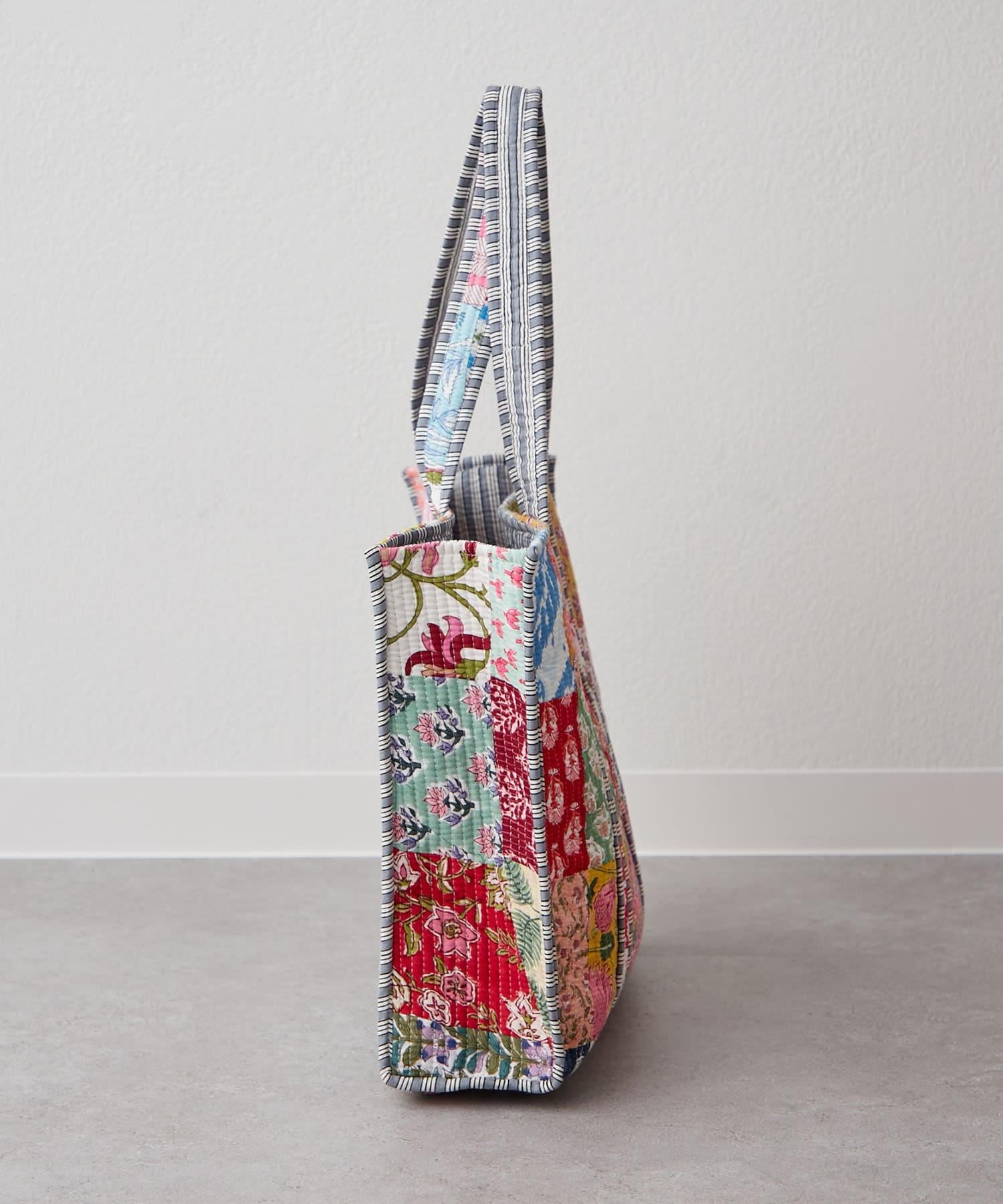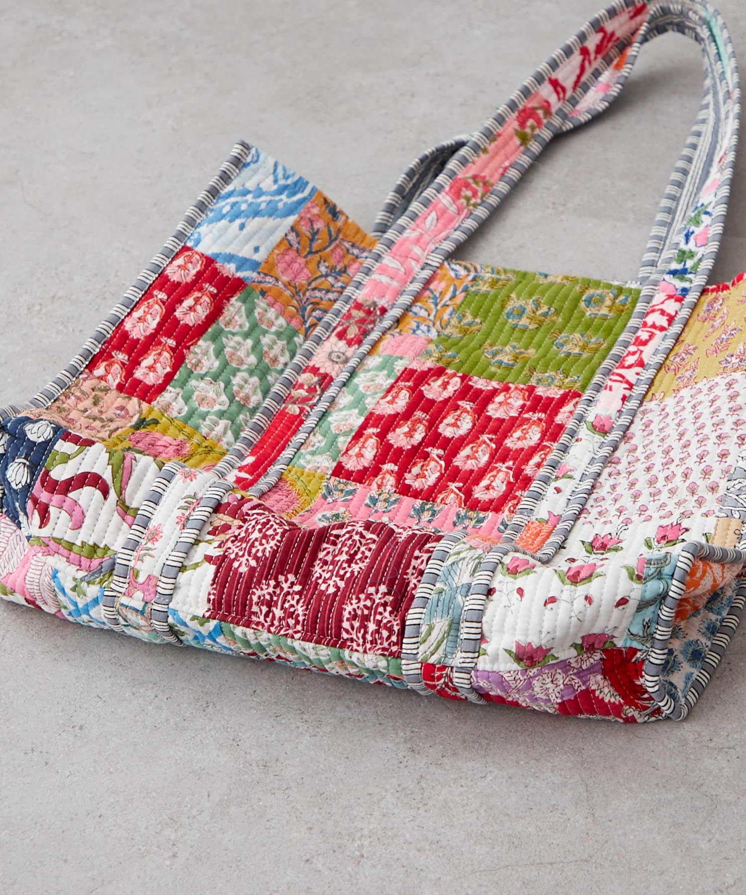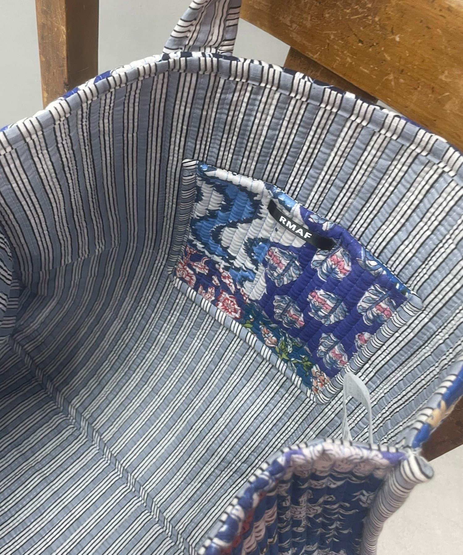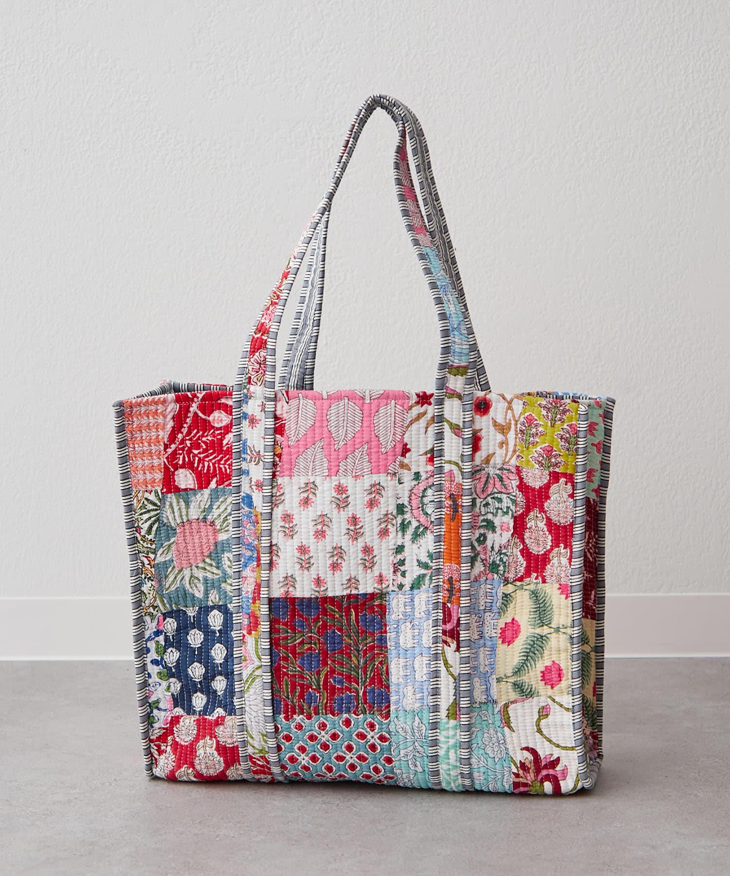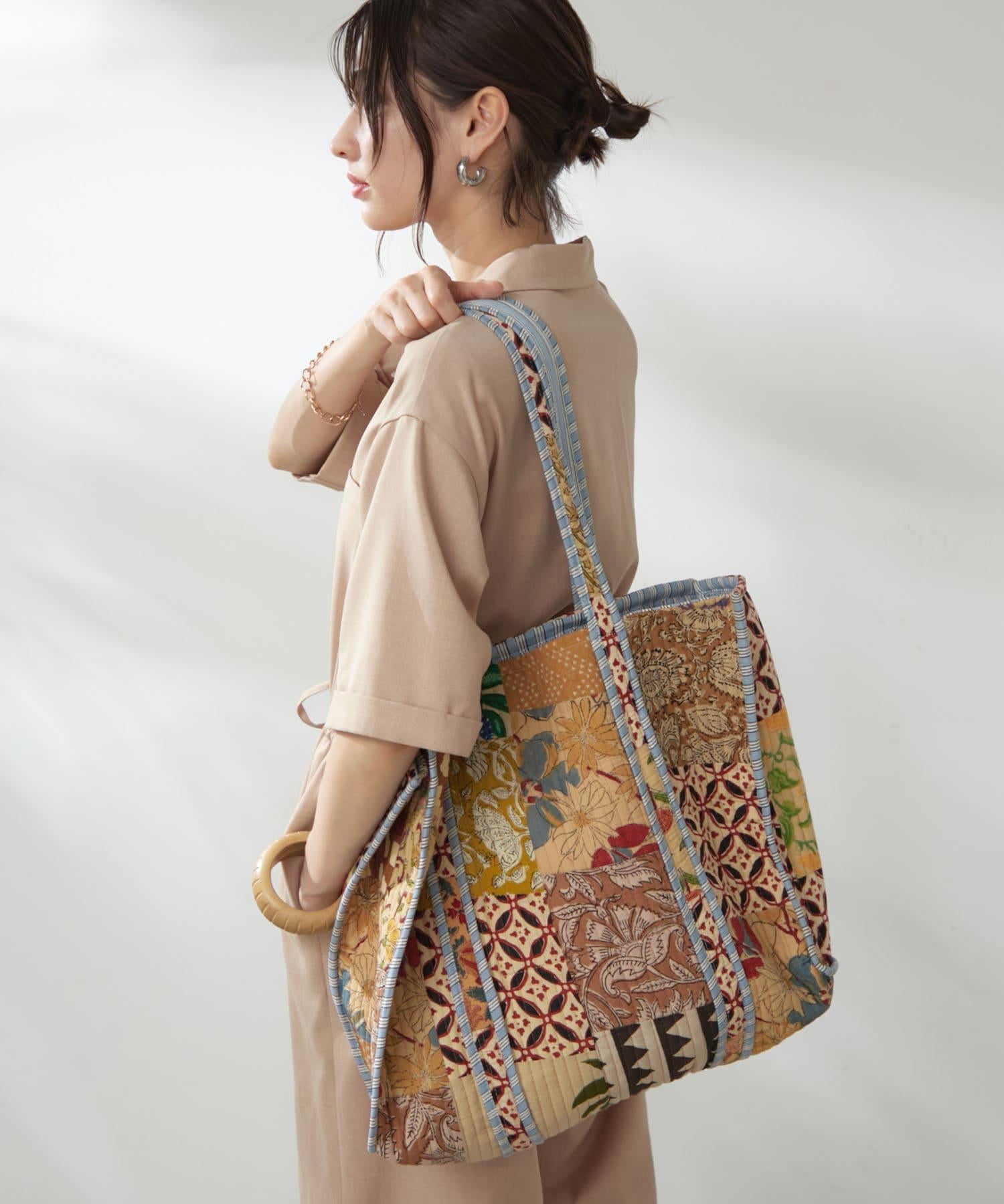 這款包包的設計基於使用印度棉織物的塊狀開關設計,每一件物品的位置都與前一件不同。