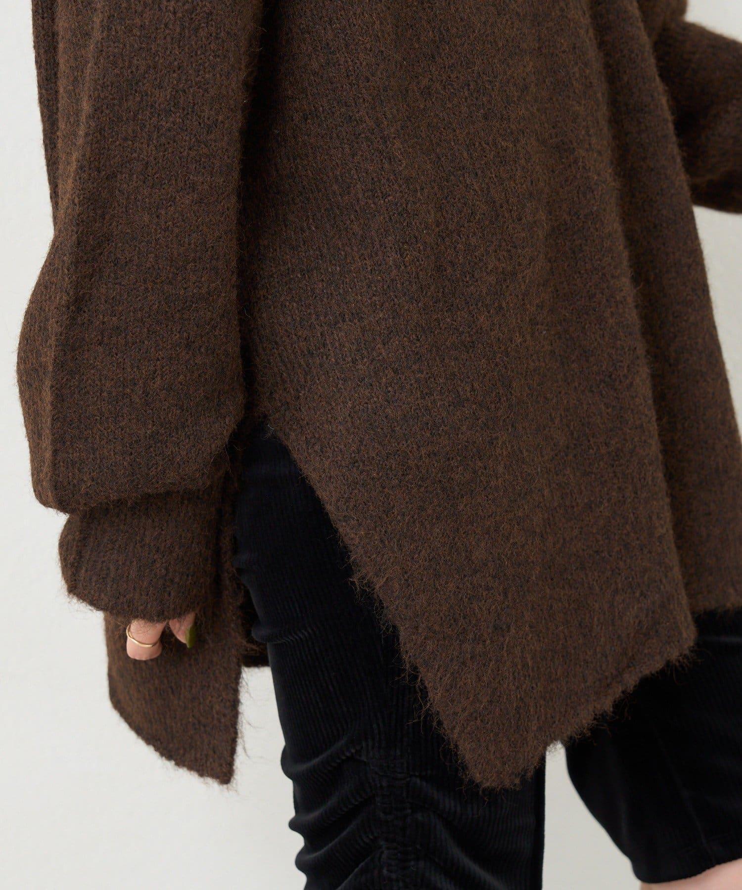 鉤開式設計使其成為可作為開衫或上衣款式穿著的百搭單品。
