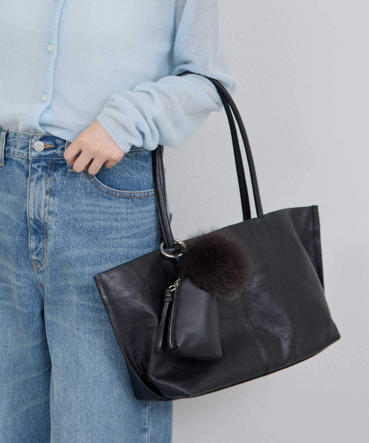 新潮的毛皮掛飾讓普通的包包煥然一新。