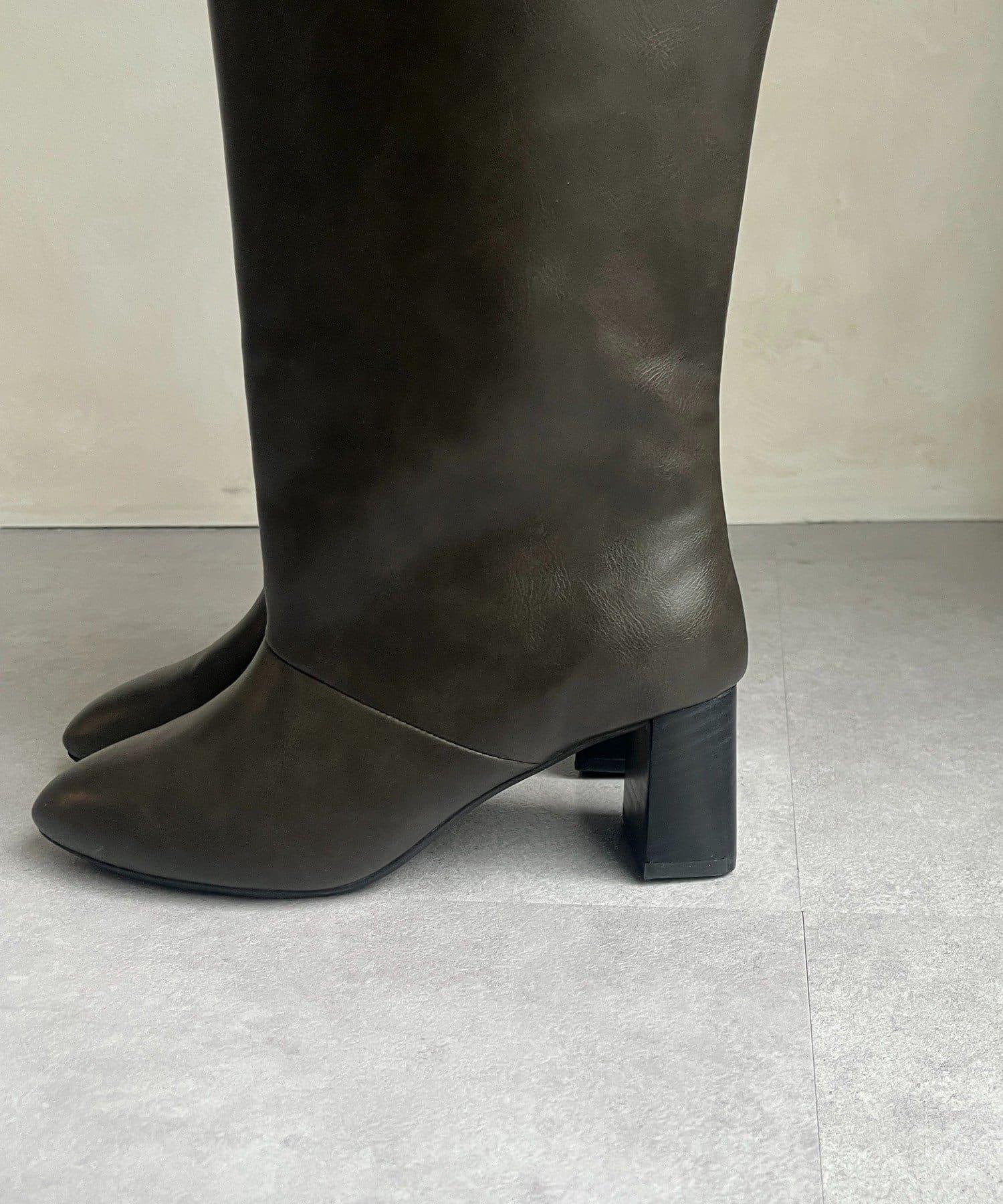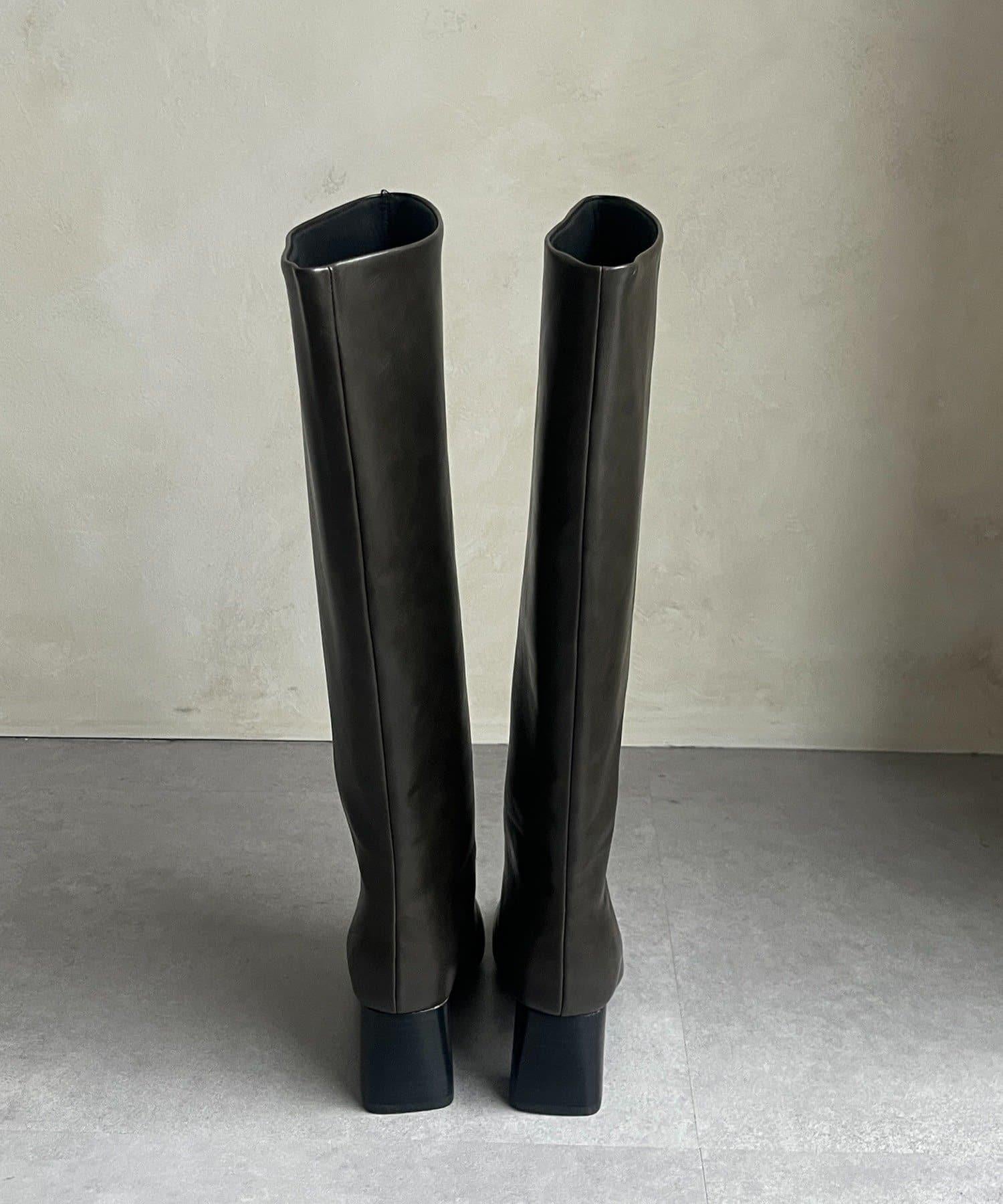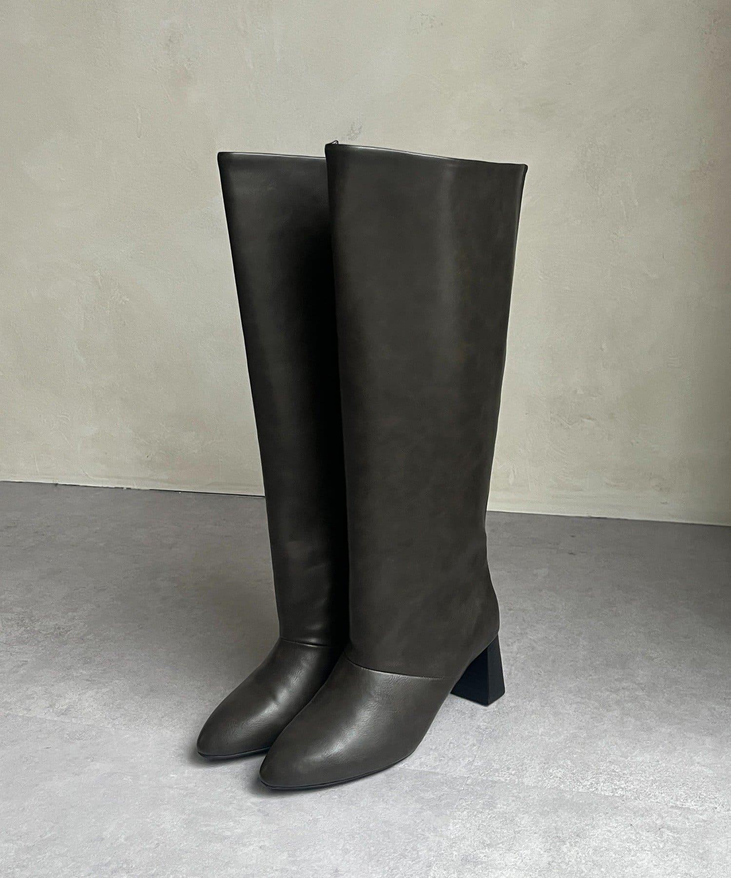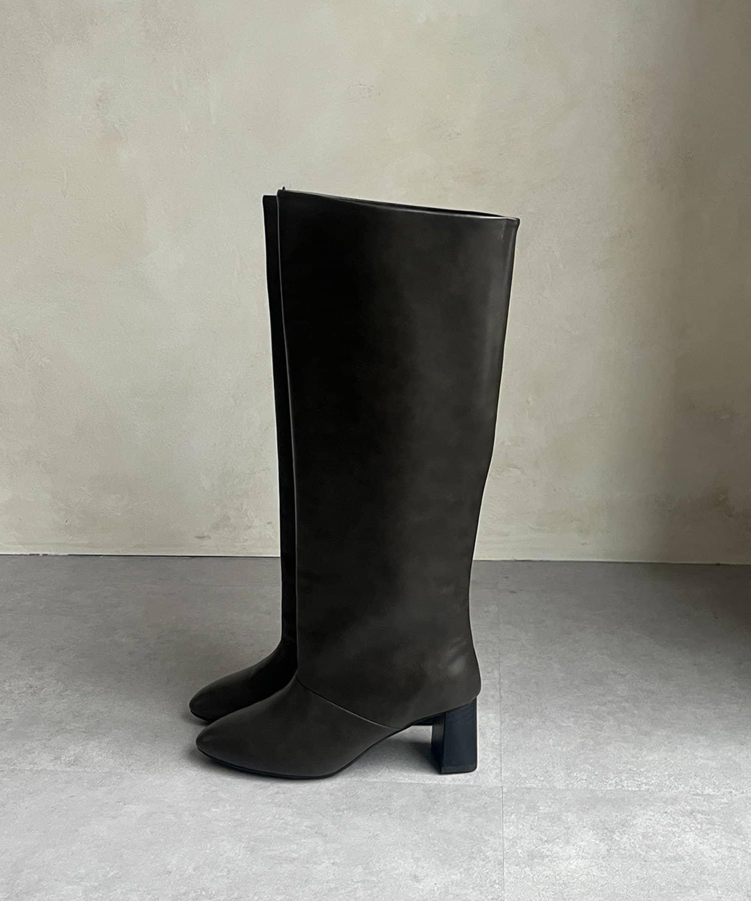 這款坡跟長靴採用了今年👍流行的粗筒設計。